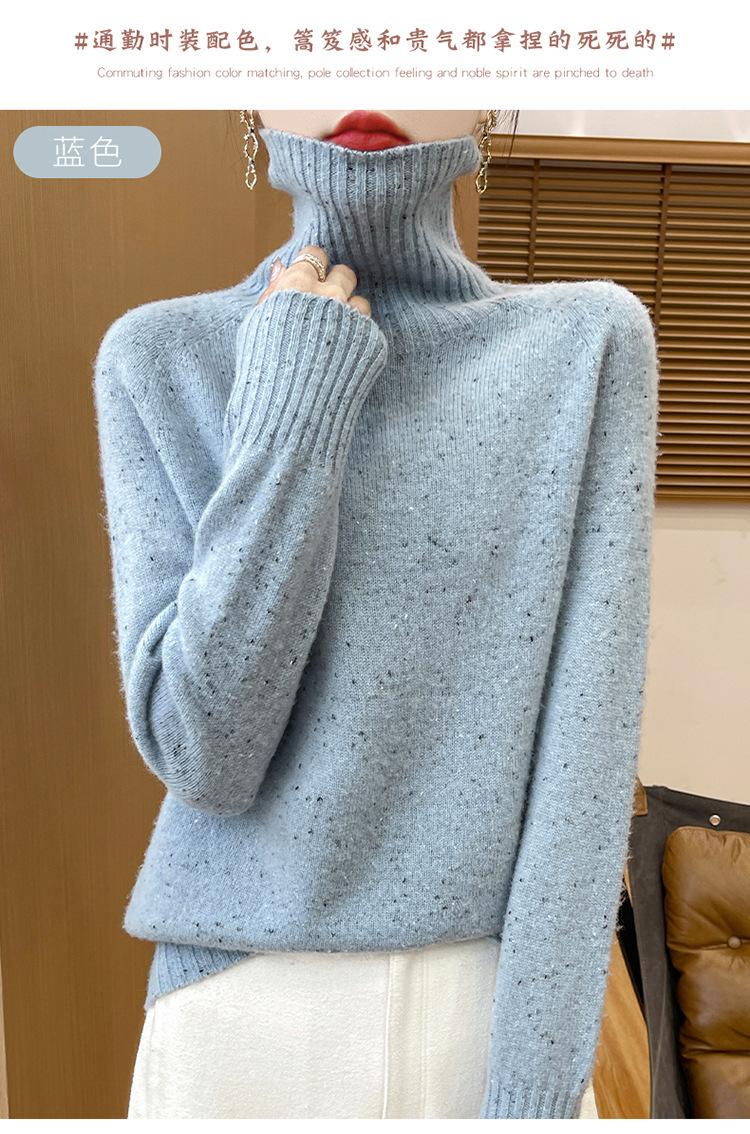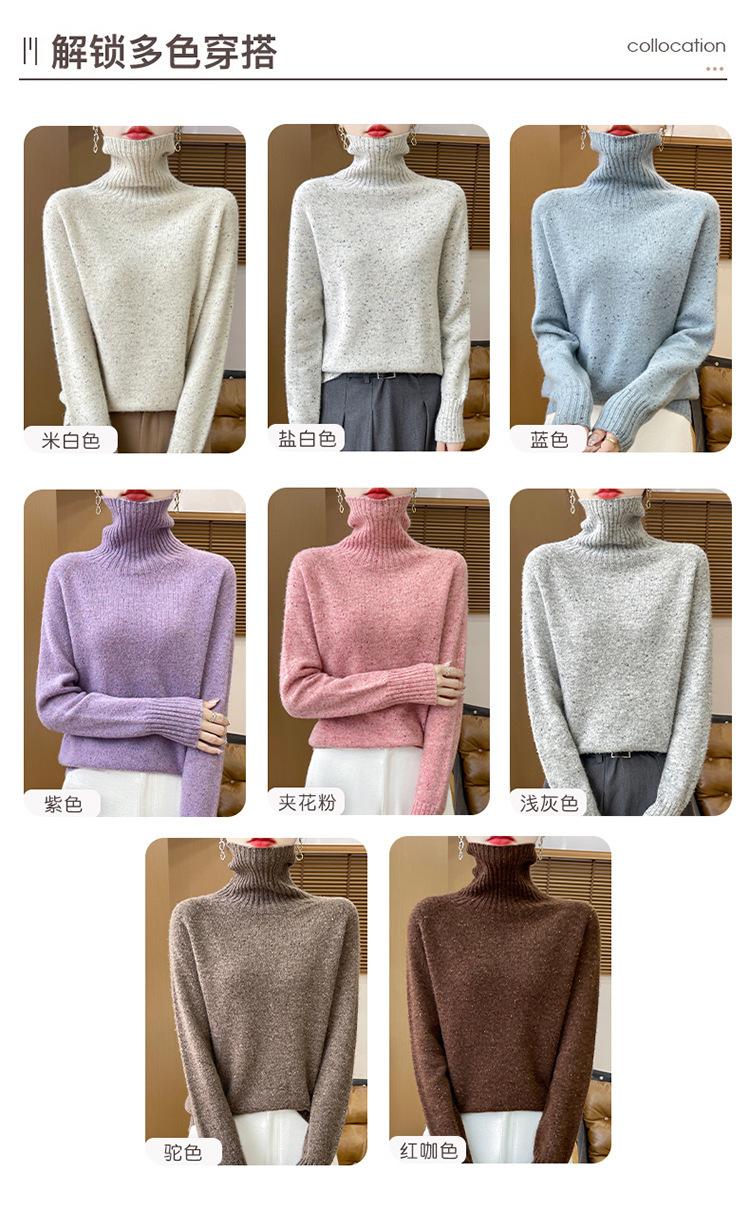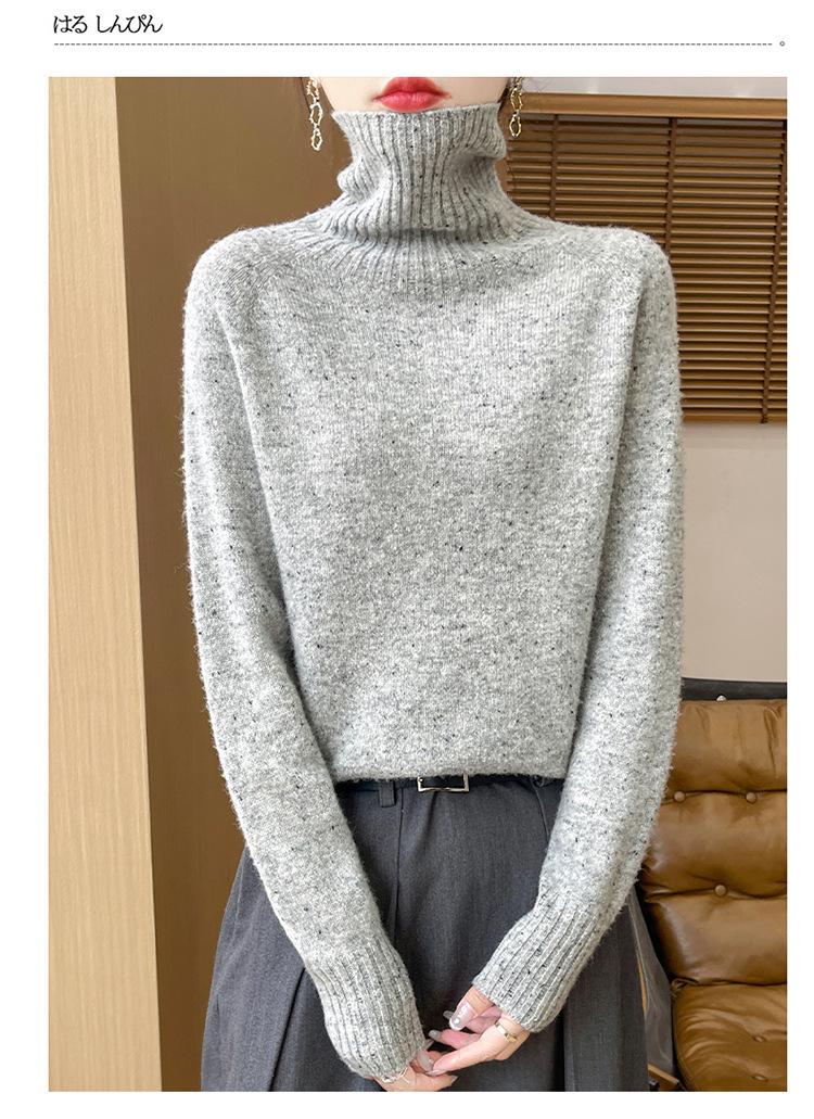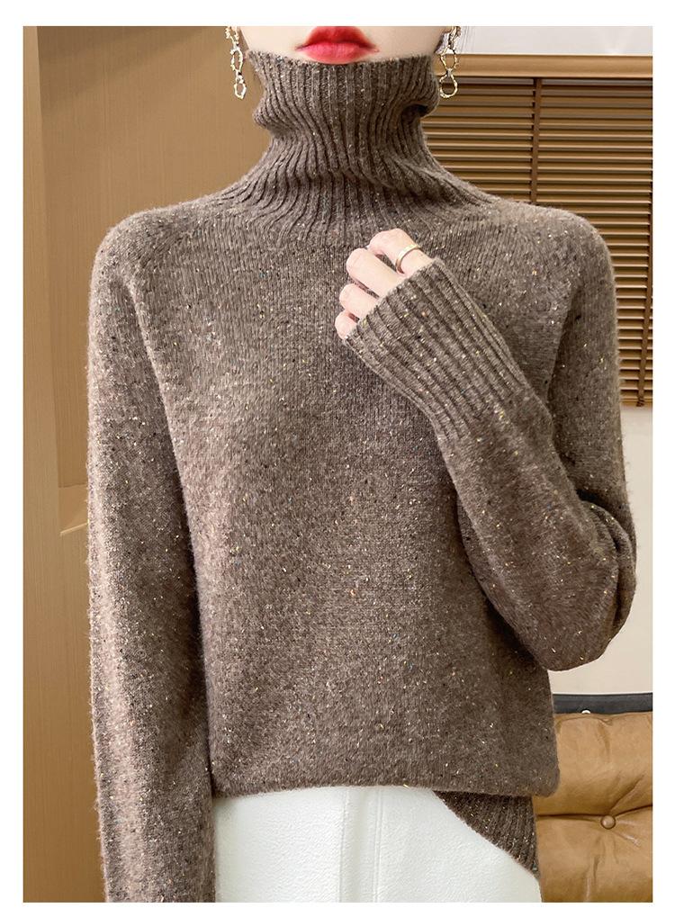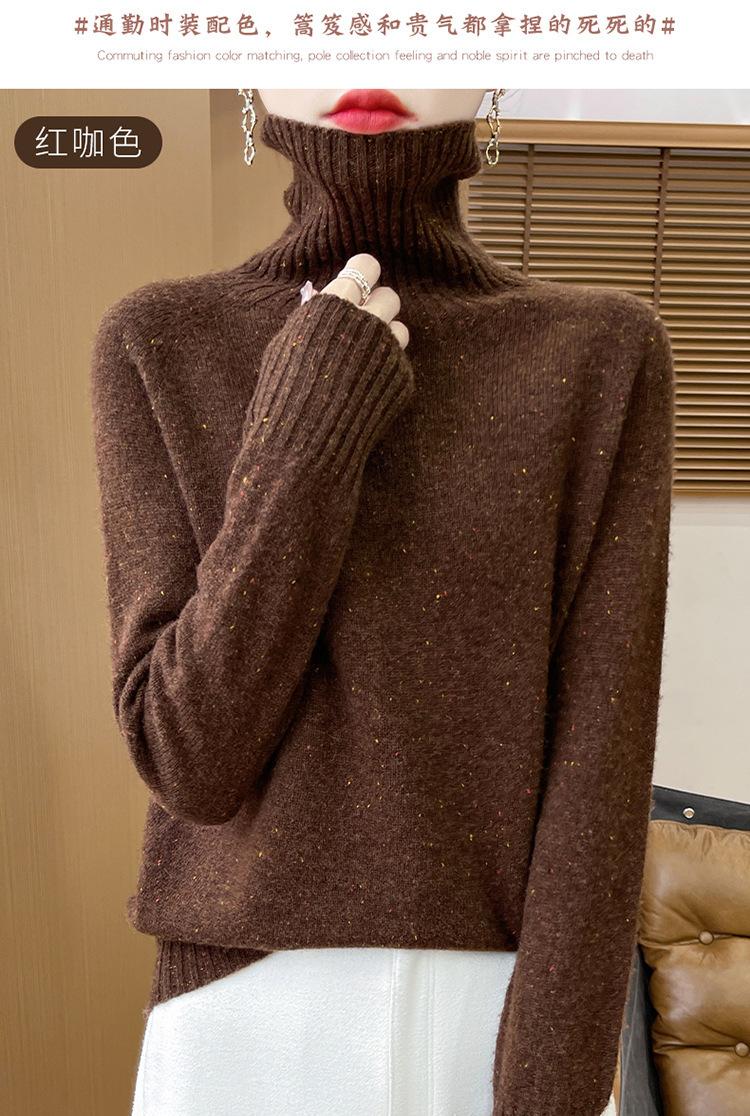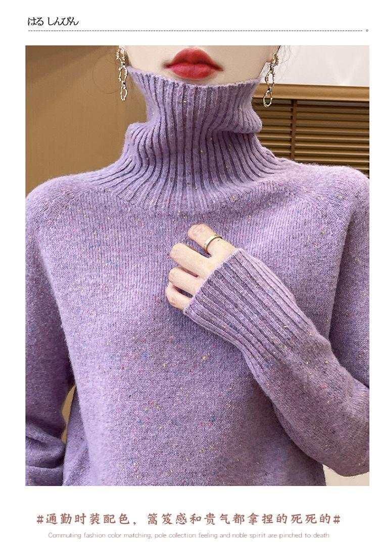 Prenda de Primera Línea Cuello Alto Cárdigan de Color Suéter Grueso para Mujer Jersey Holgado Cálido Interior Tejido Camiseta Base Moderna