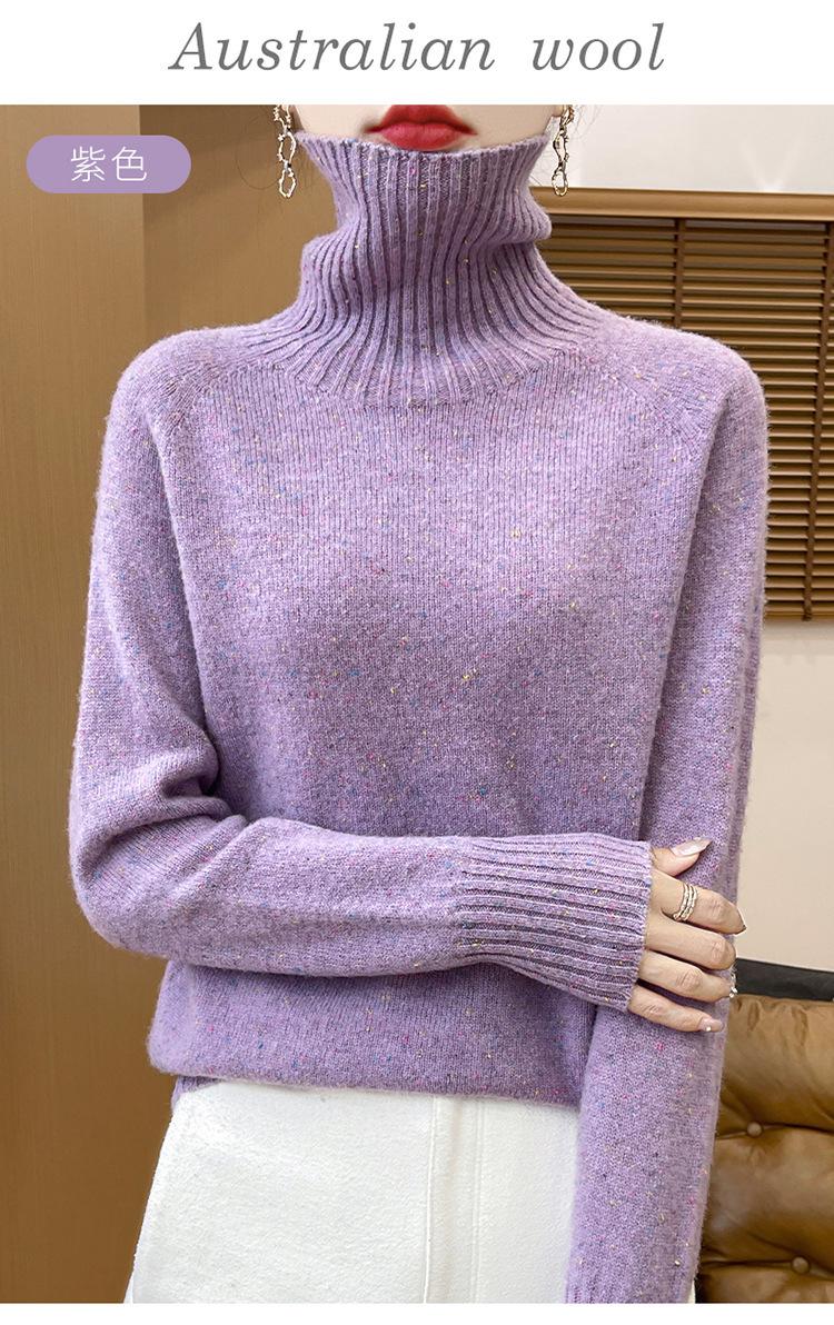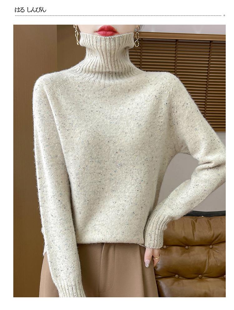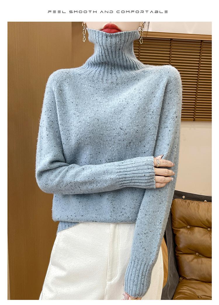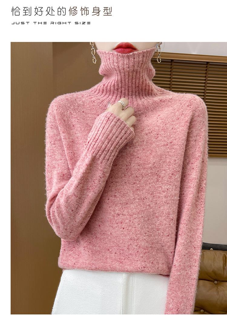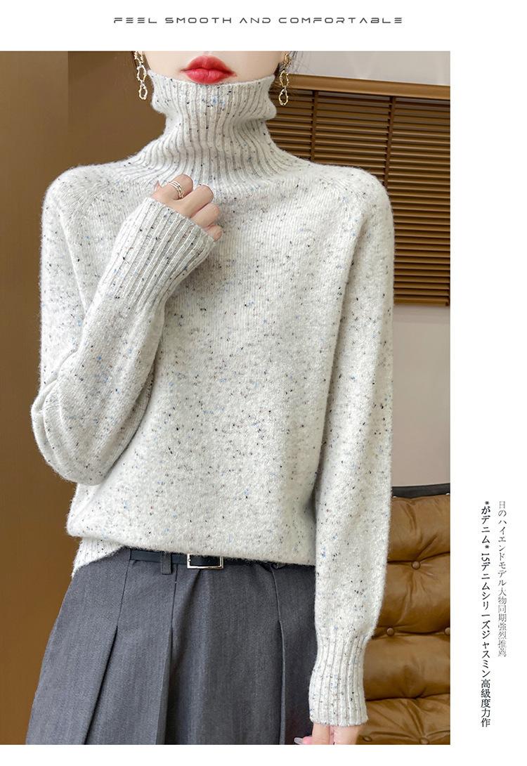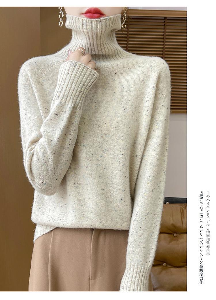 Prenda de Primera Línea Cuello Alto Cárdigan de Color Suéter Grueso para Mujer Jersey Holgado Cálido Interior Tejido Camiseta Base Moderna