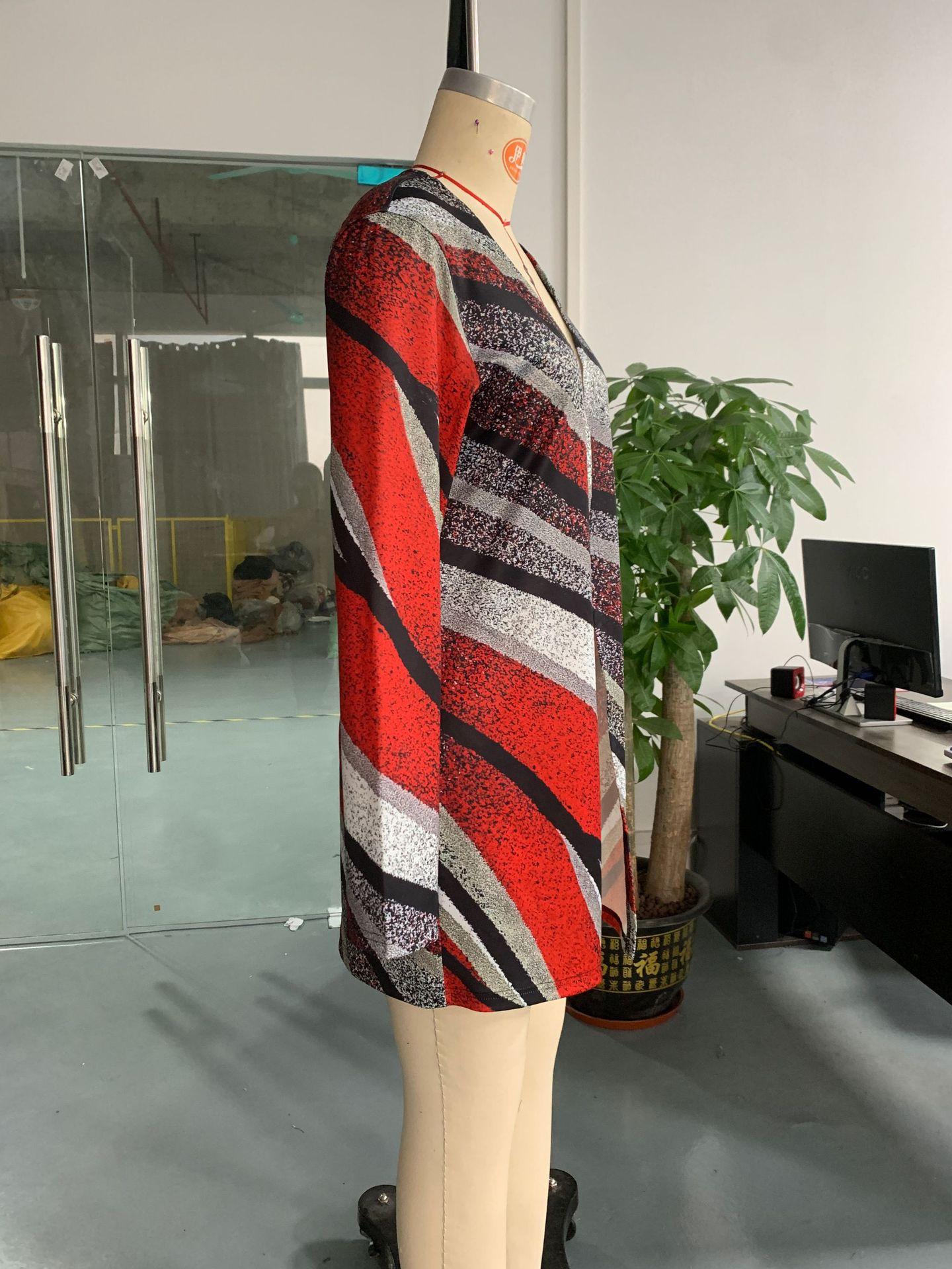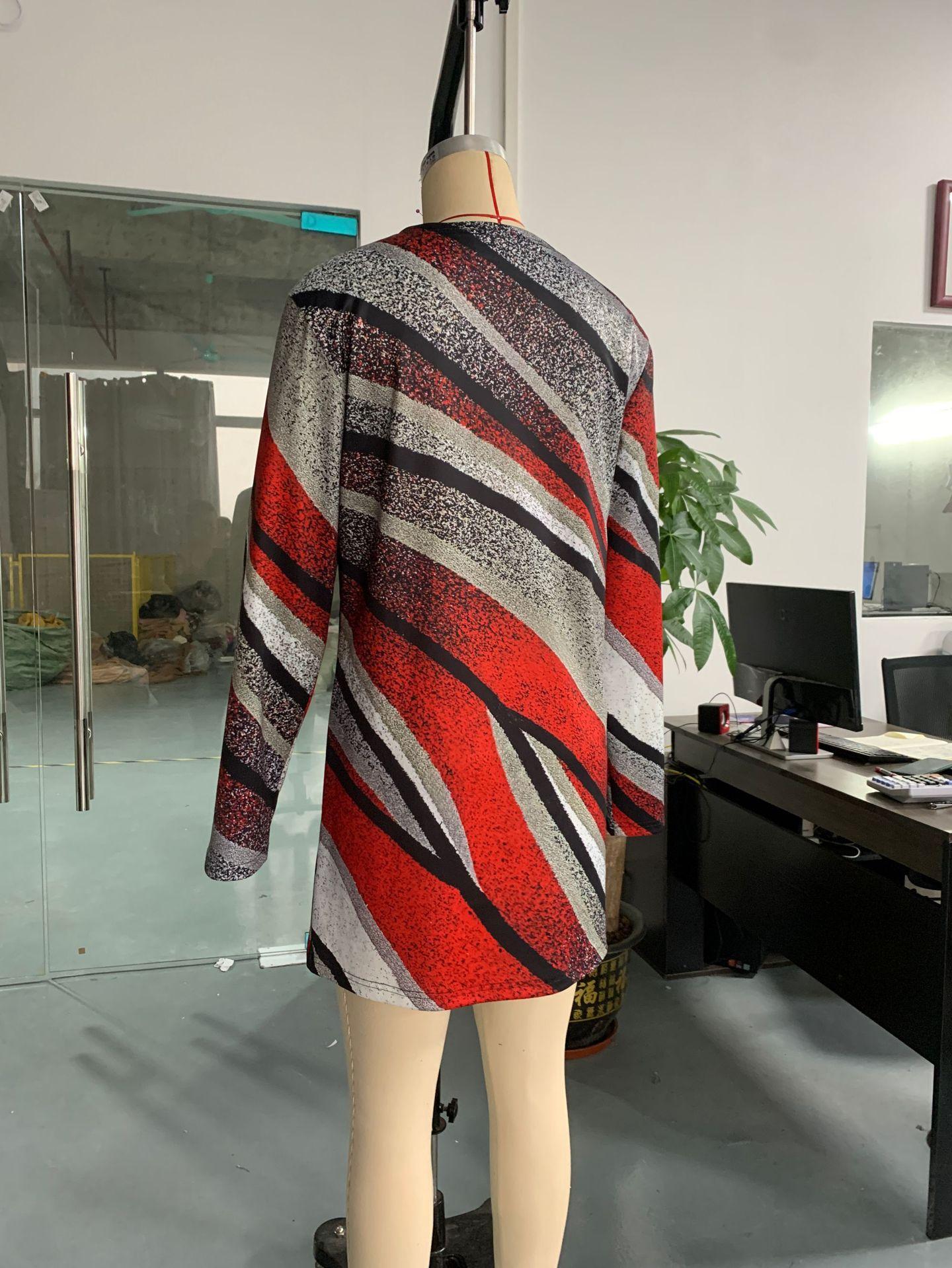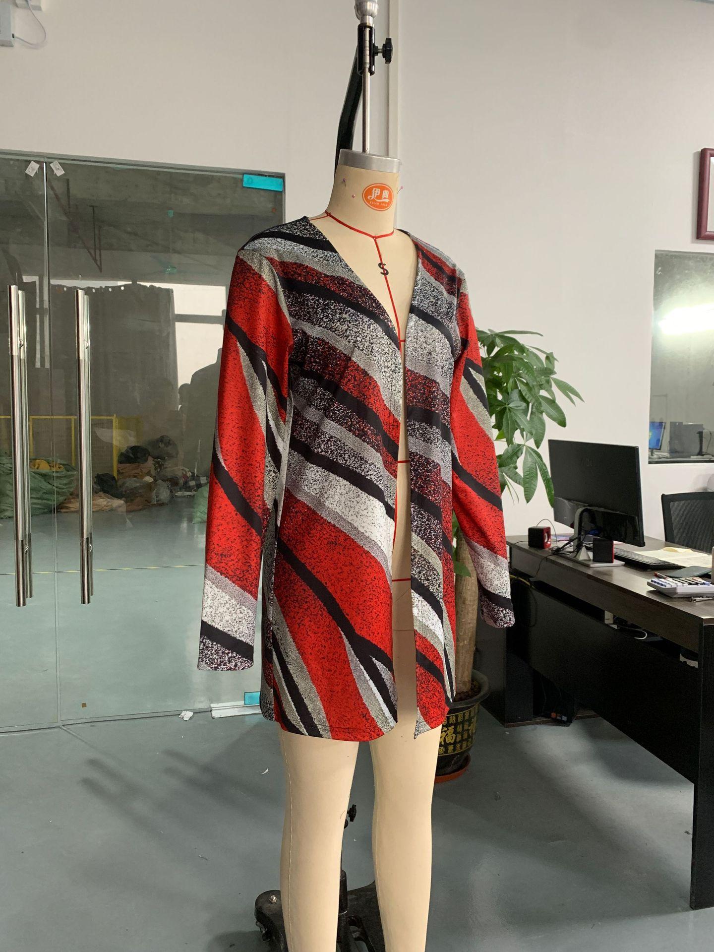 Abrigo de manga larga con cuello en V y estampado holgado para mujer, otoño e invierno, nuevo, Amazon Europa y Estados Unidos, ropa transfronteriza