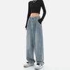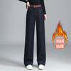 Pantalones vaqueros de cintura alta con forro polar y textura retro para mujer, otoño e invierno, nuevos, de talla grande, para chica gordita, sueltos, adelgazantes y rectos.