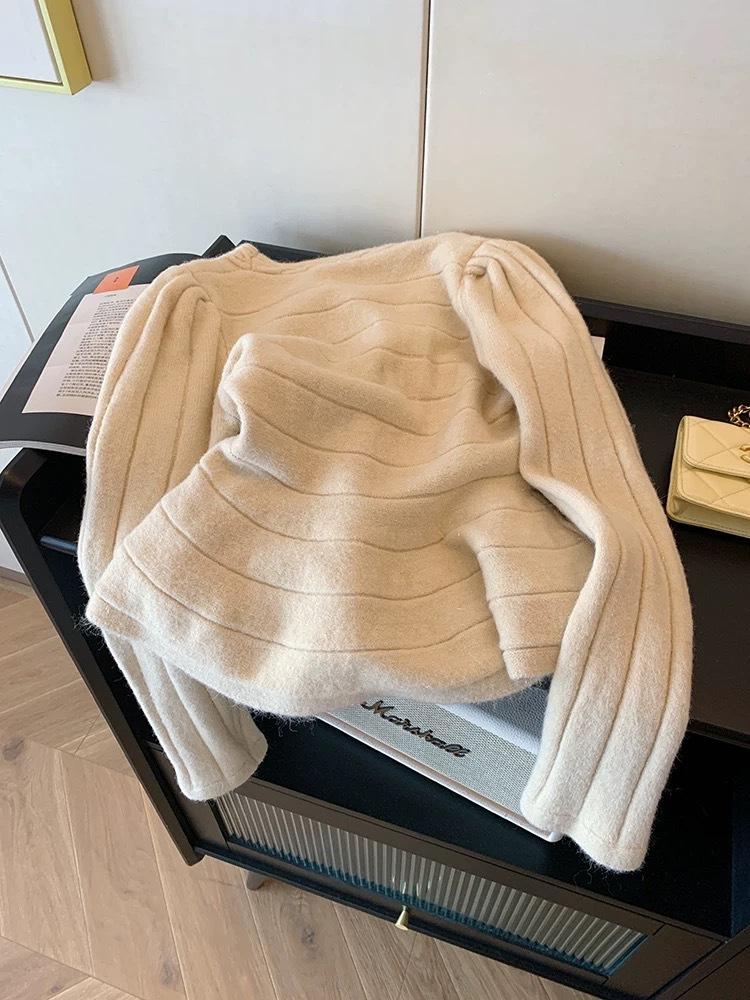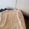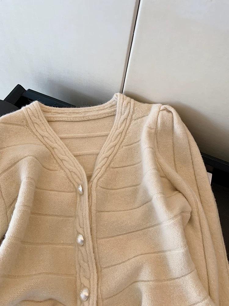 Suéter de Terciopelo Dorado de Cuello en V Estilo Xiao Xiang para Mujer Otoño e Invierno 2024 Nuevo Elegante Suave Ceroso Suéter Básico de Celebridad