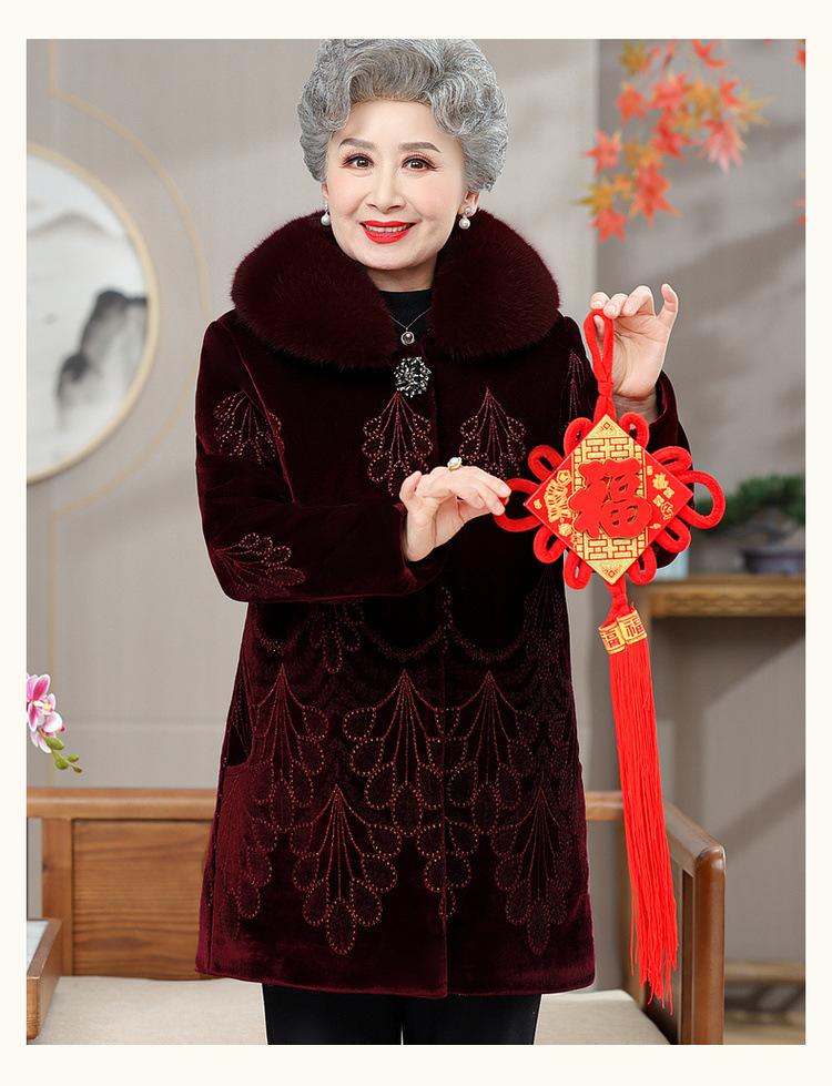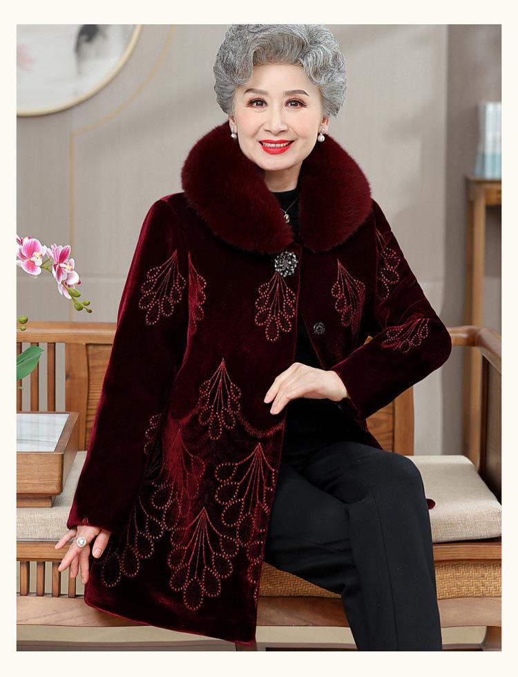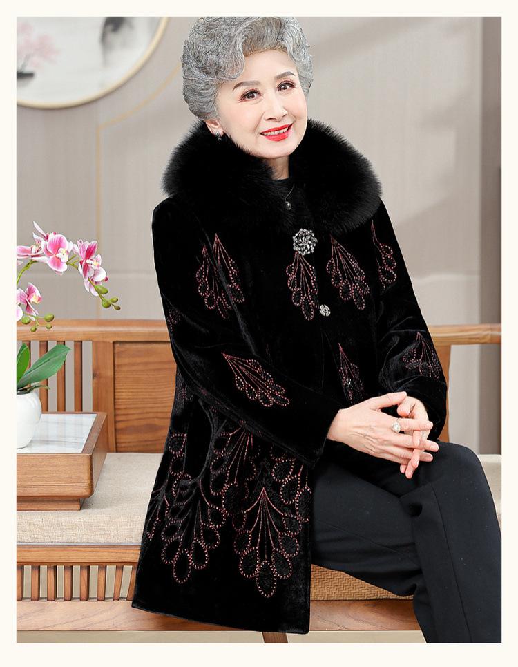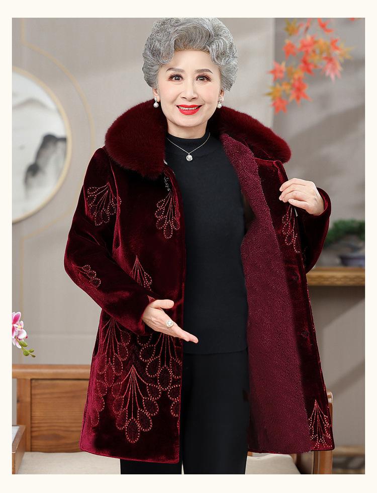 Abrigo de invierno para mujeres de mediana edad y mayores, ropa de invierno gruesa con forro polar, ropa acolchada de algodón para abuelas, abrigo de terciopelo dorado, ropa para personas mayores