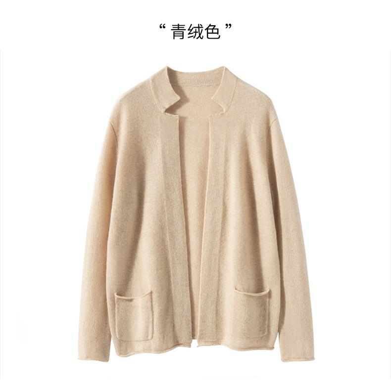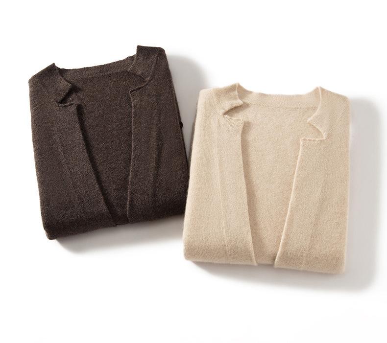 Suéter 100% Cachemira Ligera Cárdigan de Punto para Mujer Manga Larga Sin Botones Cuello Redondo Abrigo