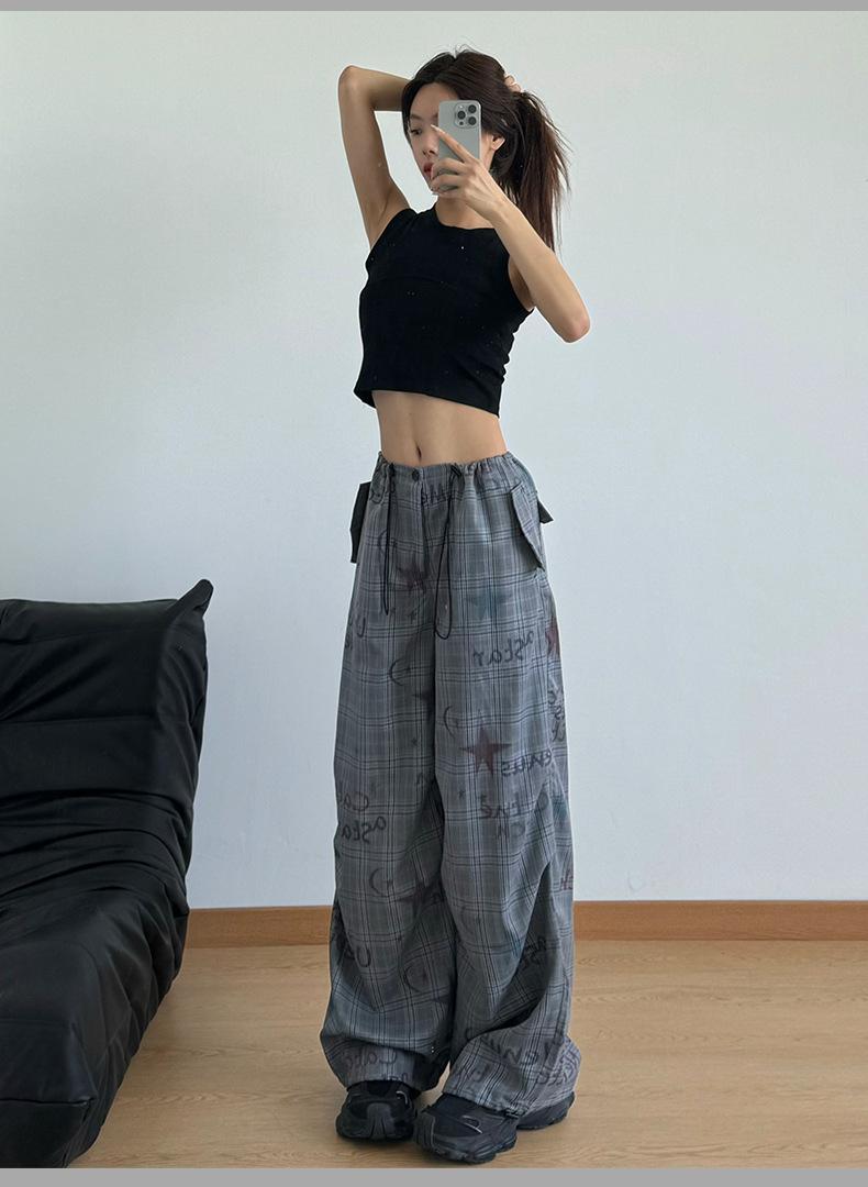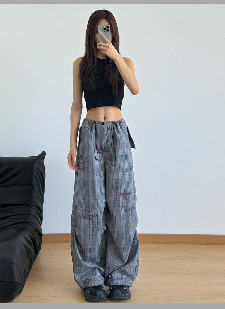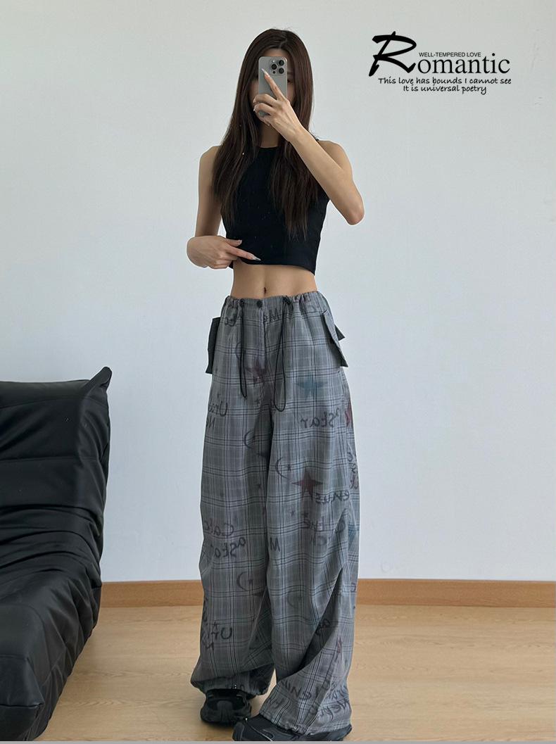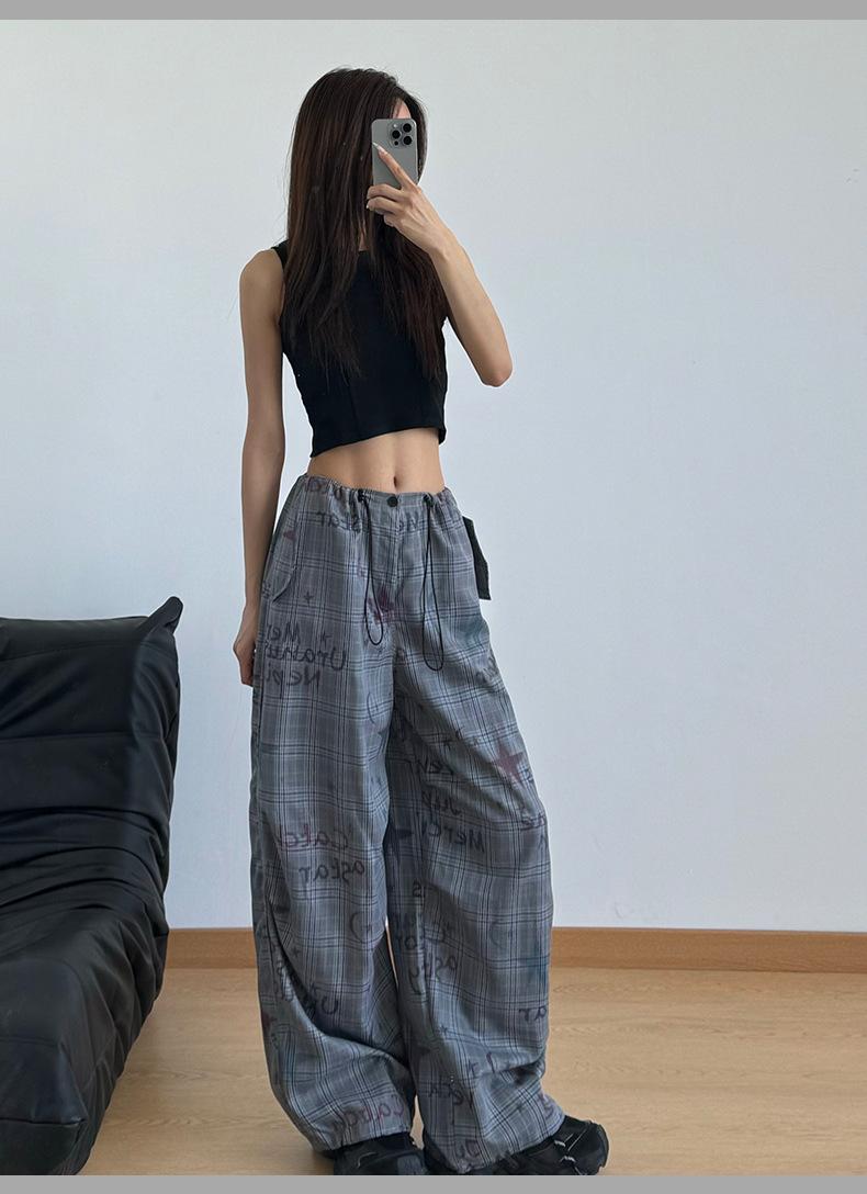 Pantalones de Traje Graffiti Retro de Moda para Mujer 2024 Nuevo Pantalón Casual Recto Adelgazante de Cintura Alta Pantalón de Pierna Ancha Suelto Trendy