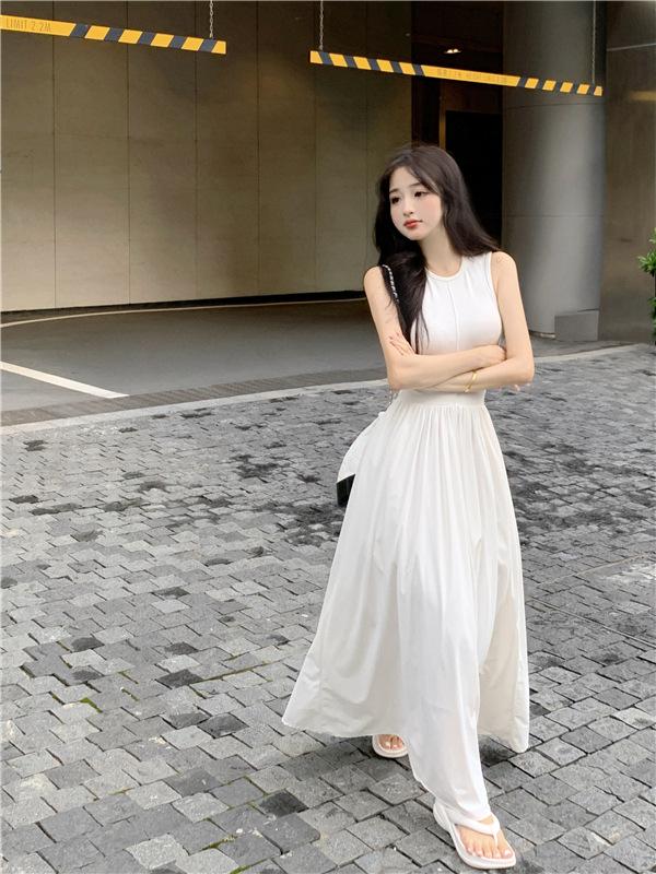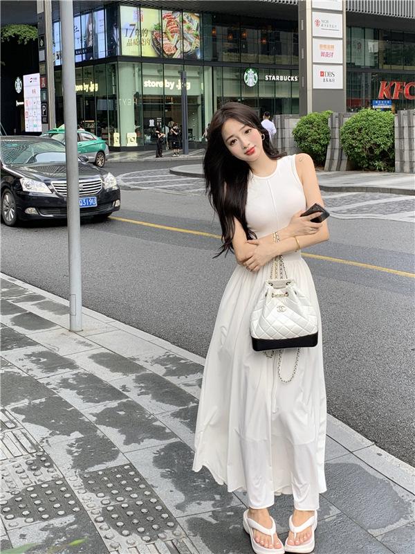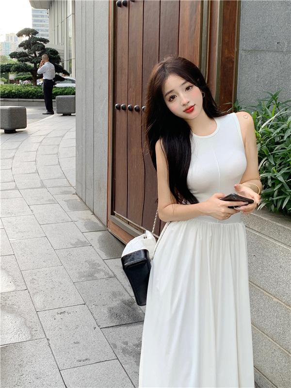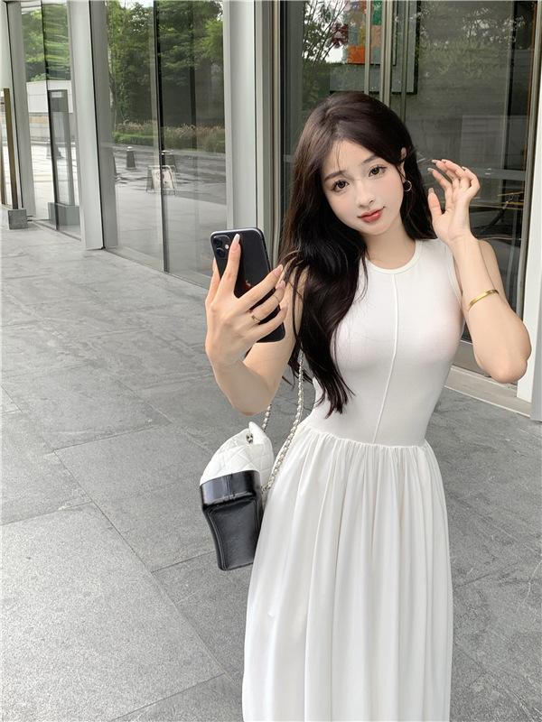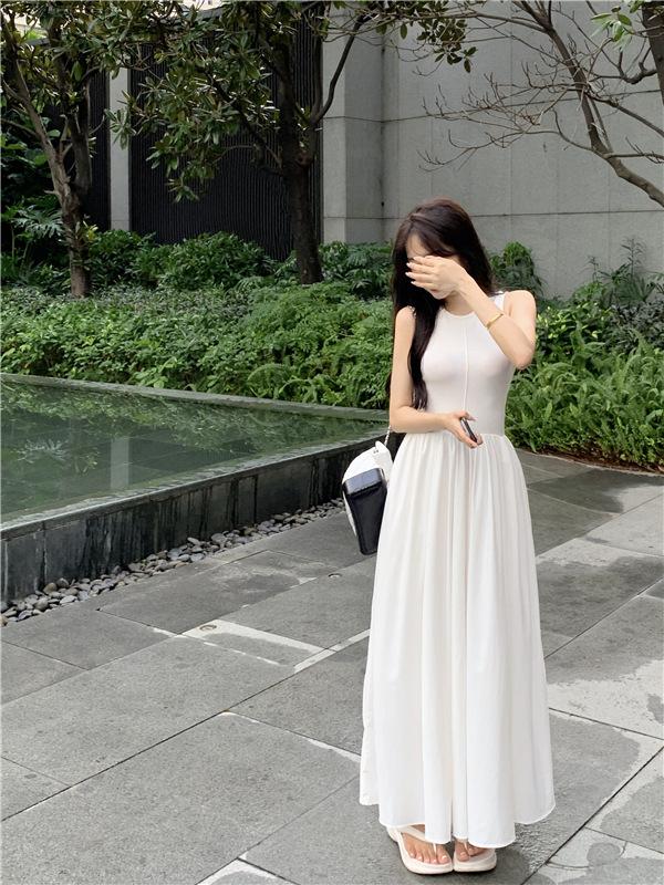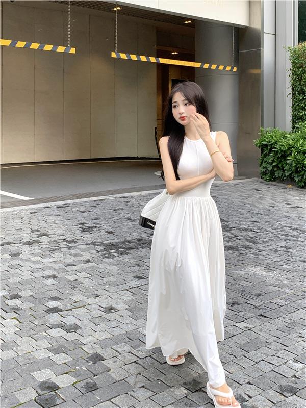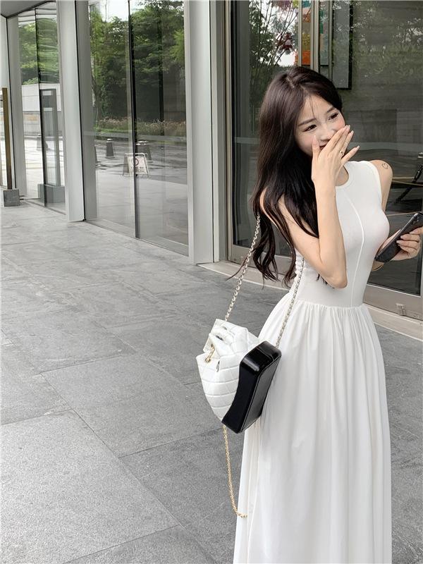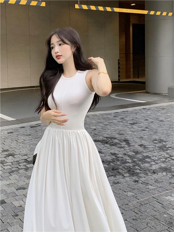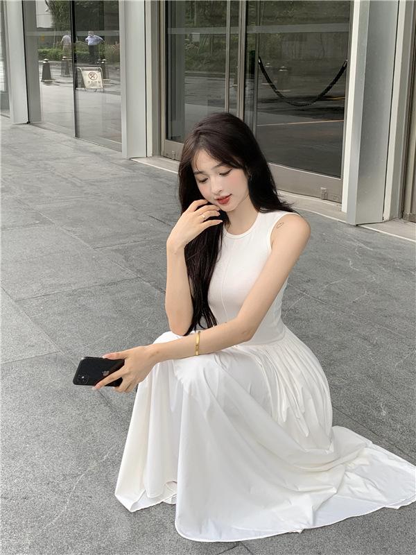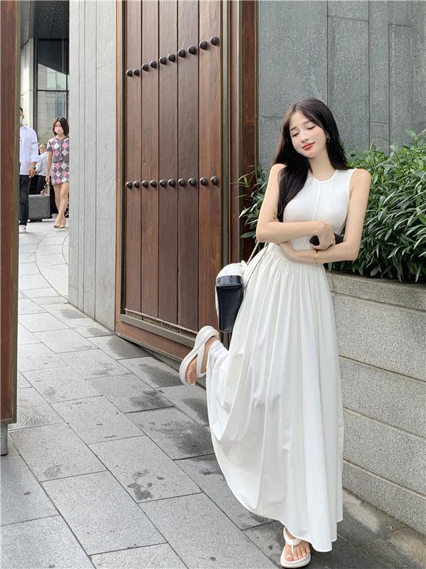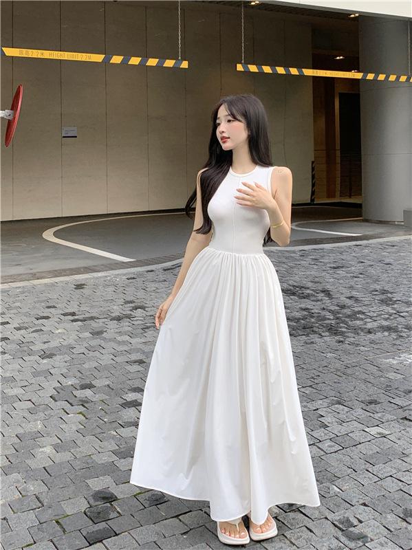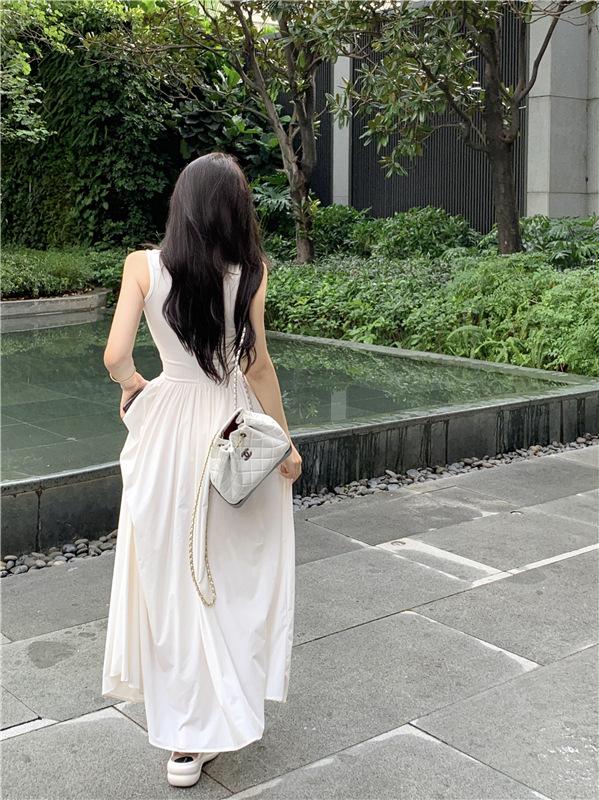 Vestido de Verano para Mujer 2025 Nuevo Estilo Hora del Té Diseño Francés Blanco Sin Mangas Vestido Tank Elegante Vestido Largo