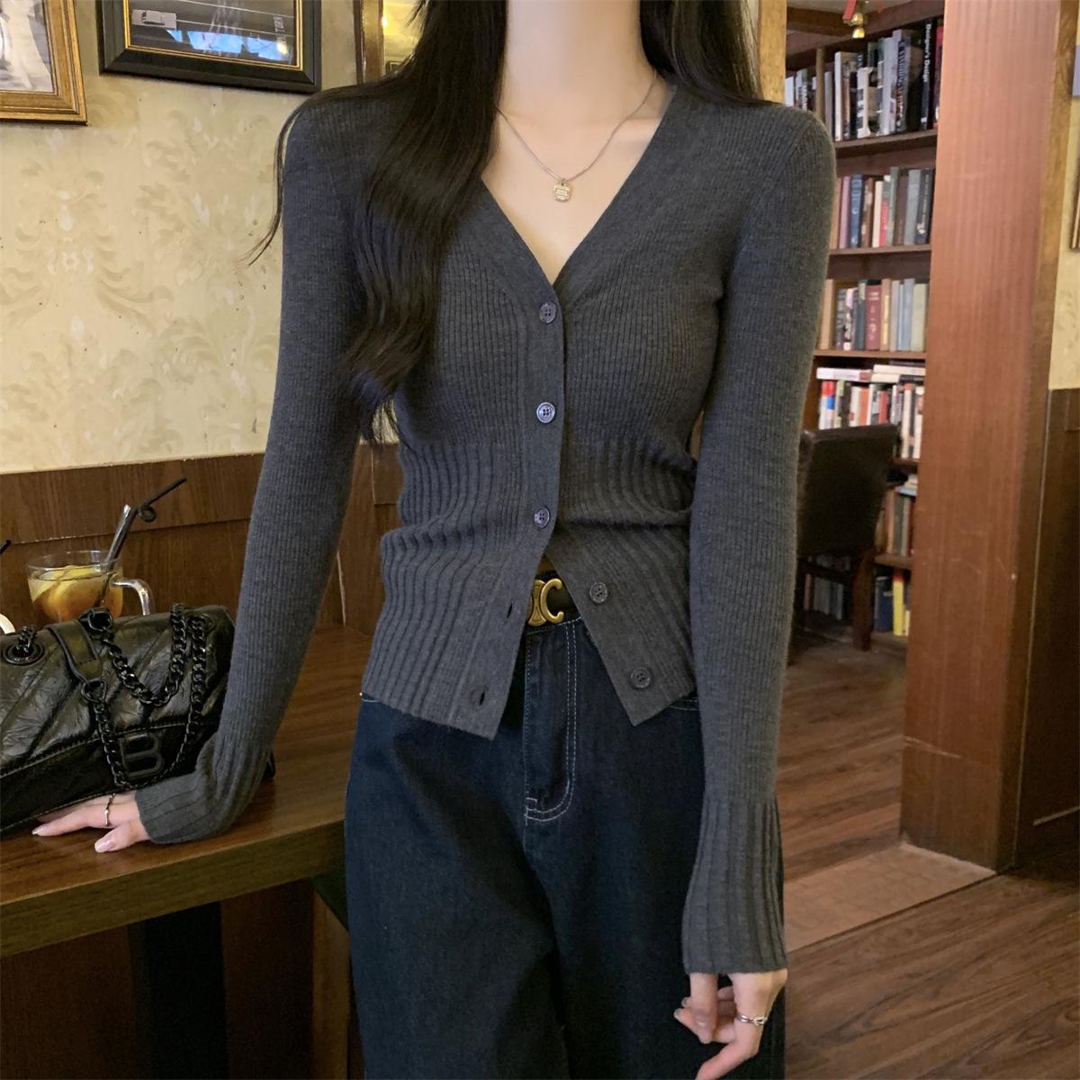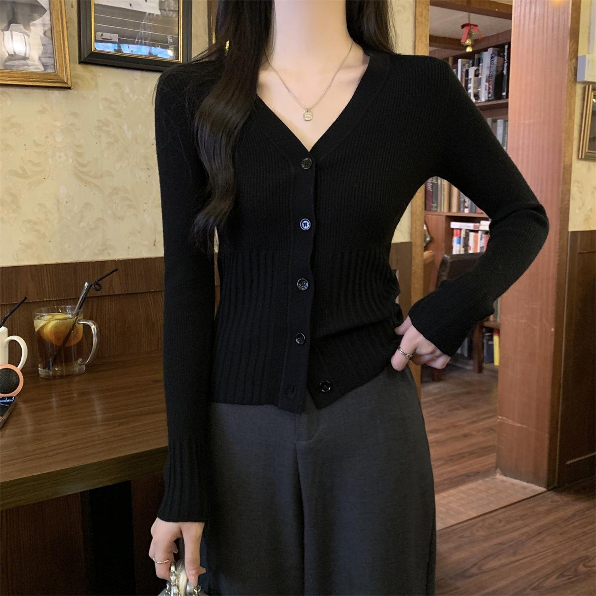 Cárdigan de punto para mujer, nuevo estilo de otoño, estilo coreano, bajo alto, cuello en V, suéter, chaqueta básica, top