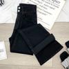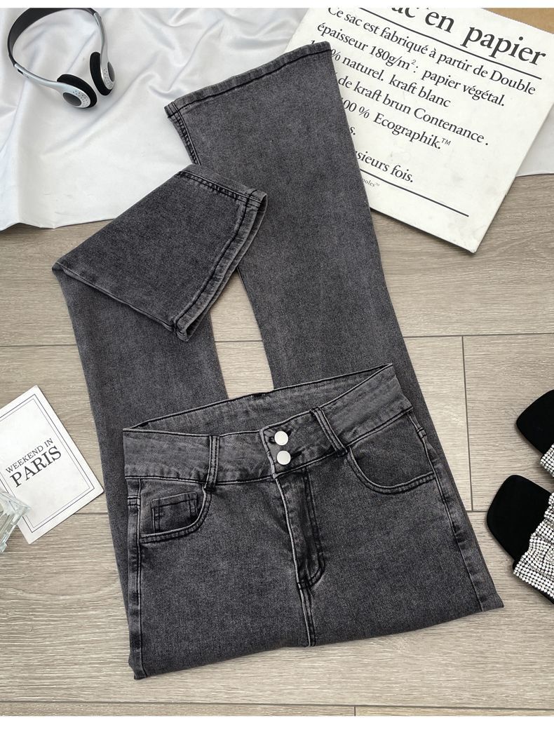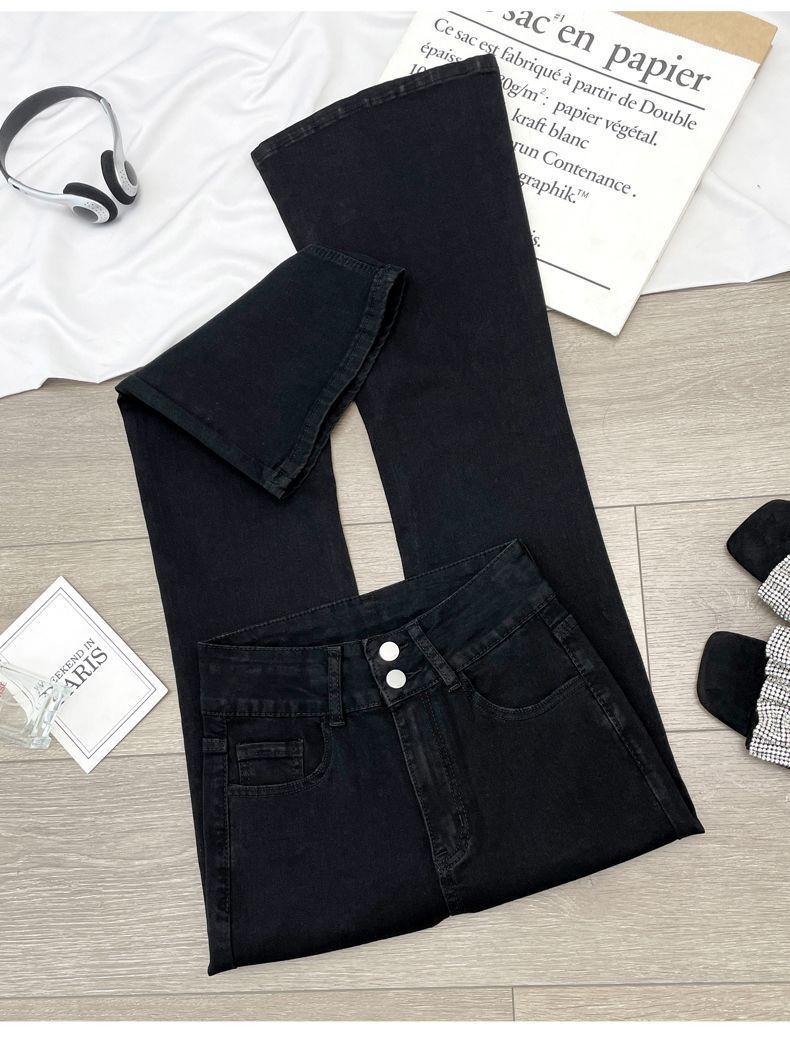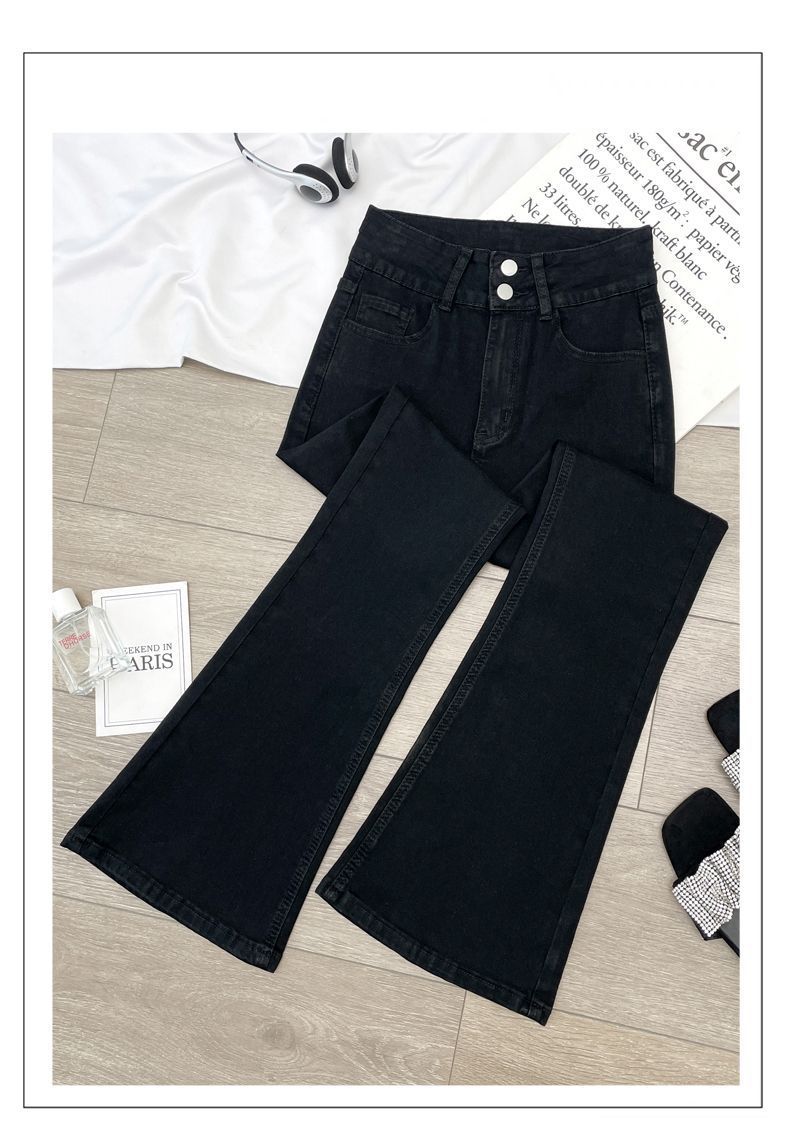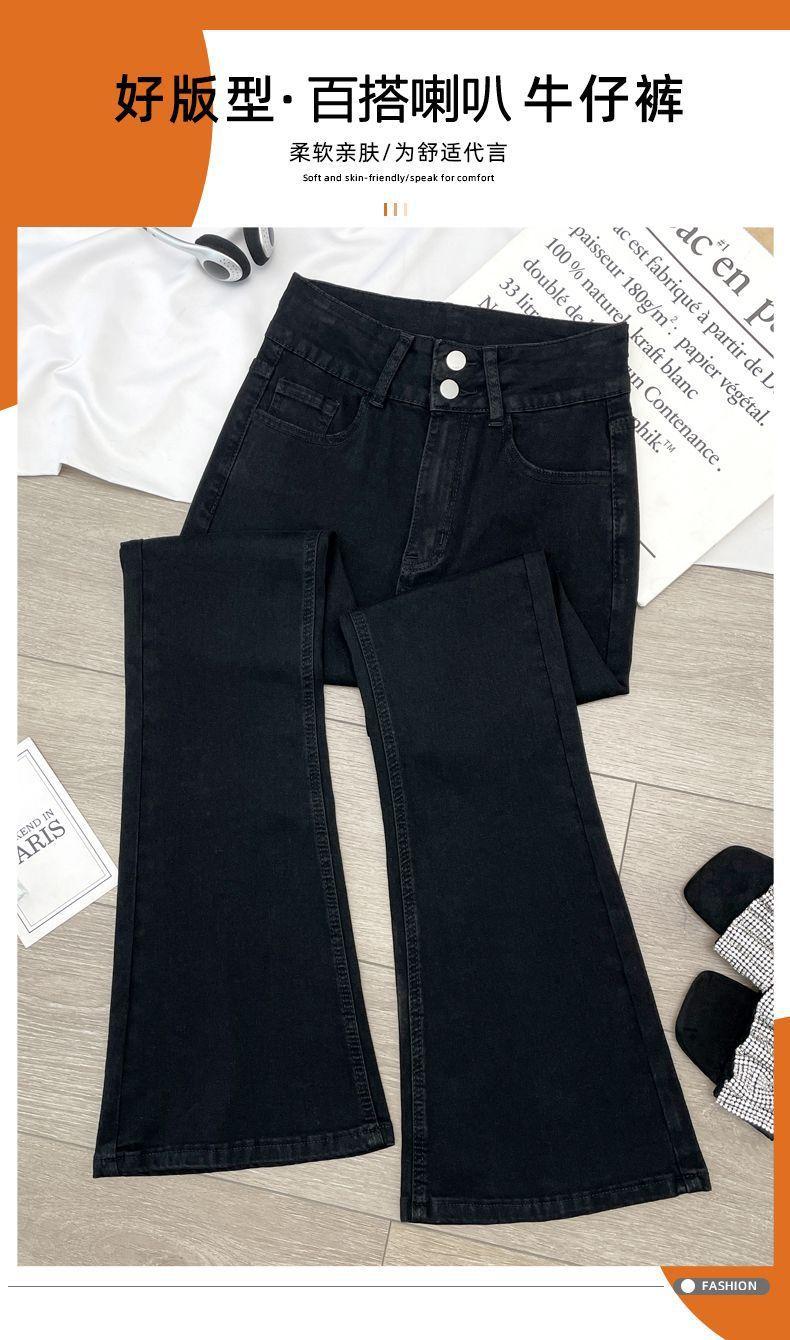 Pantalones vaqueros negros de cintura alta y micro acampanados para mujer, otoño 2025, nuevos pantalones ajustados y elásticos con diseño de herradura.