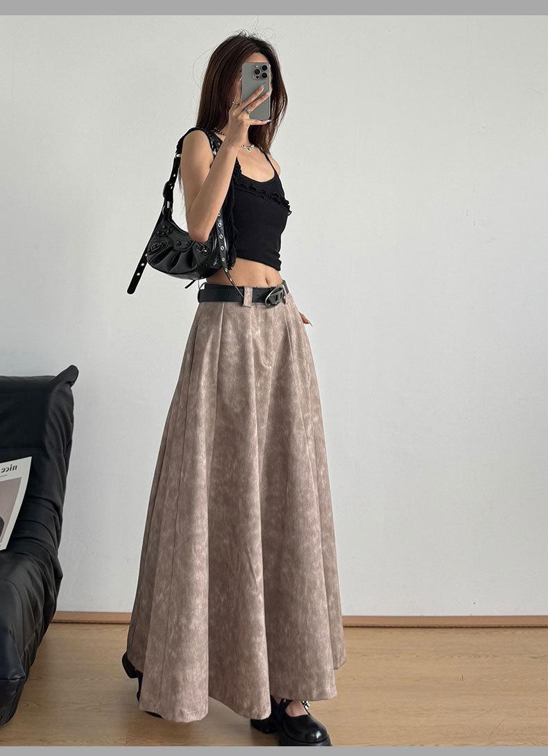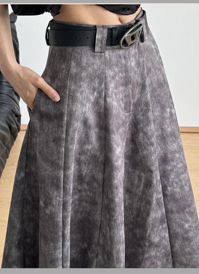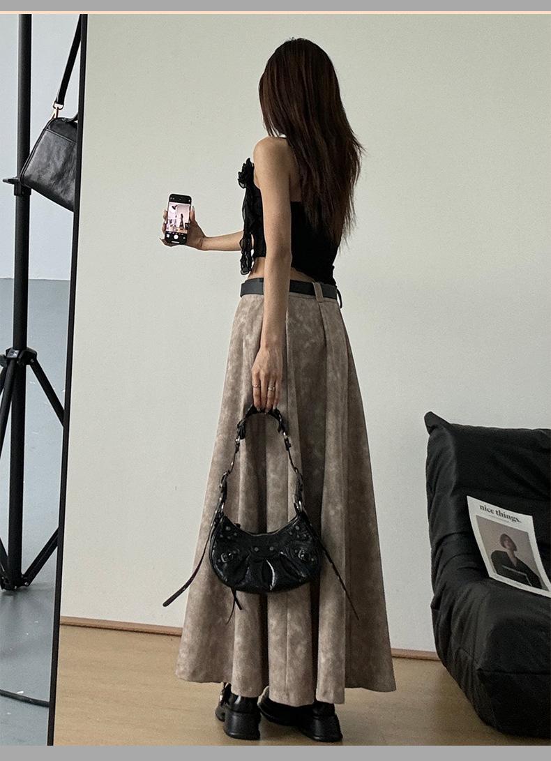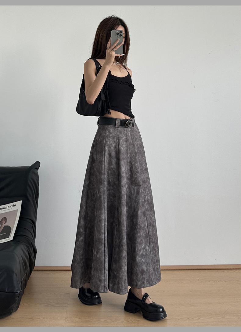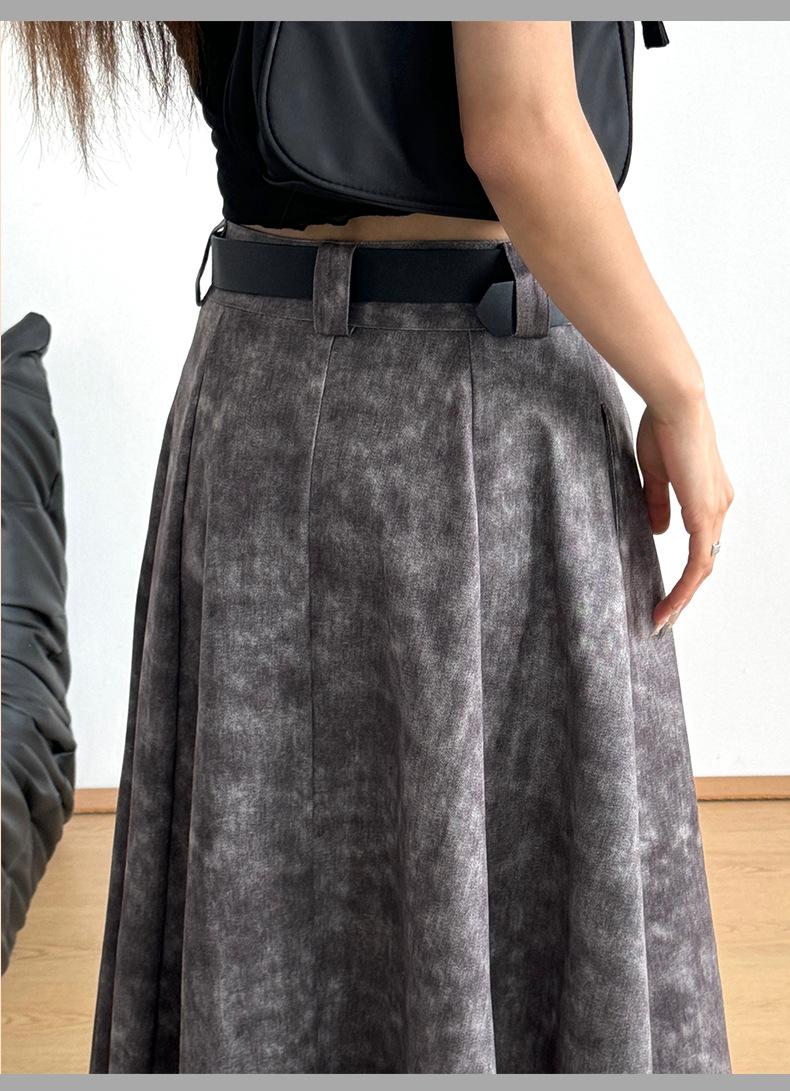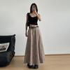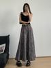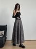 Falda Romántica Francesa Nicho Gris para Mujer Verano Cintura Alta Línea A Look Adelgazante Retro Versátil Casual Falda Midi