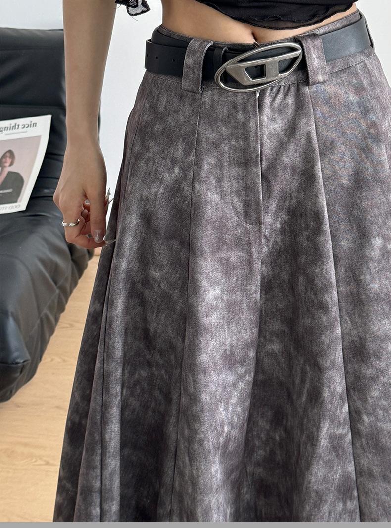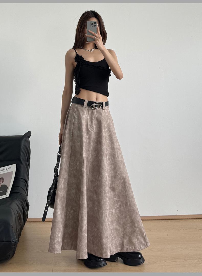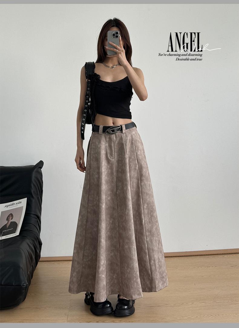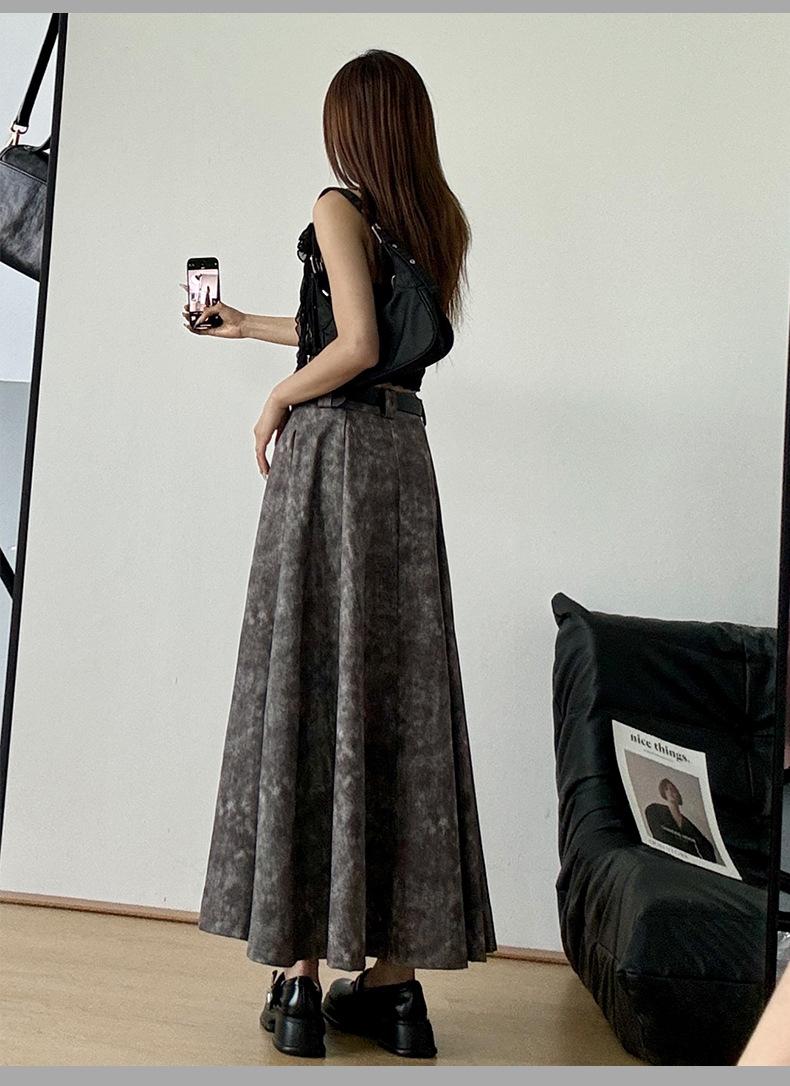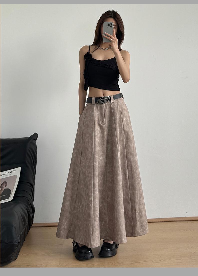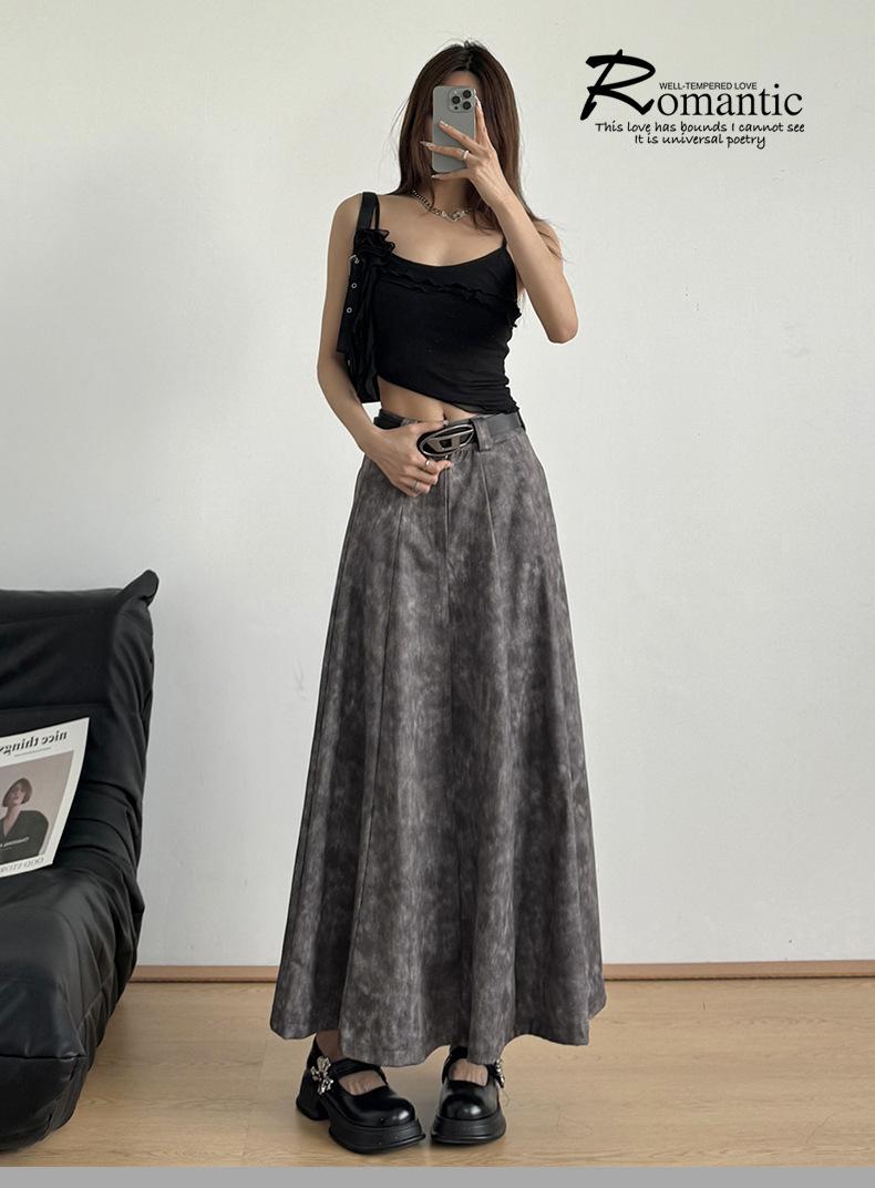 Falda Romántica Francesa Nicho Gris para Mujer Verano Cintura Alta Línea A Look Adelgazante Retro Versátil Casual Falda Midi