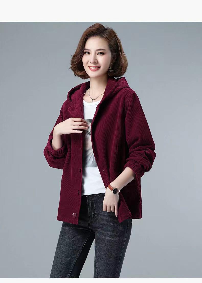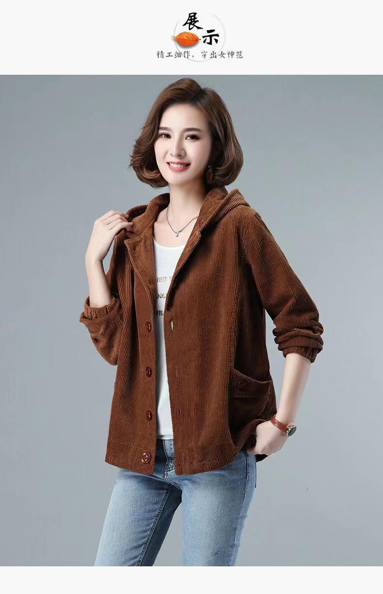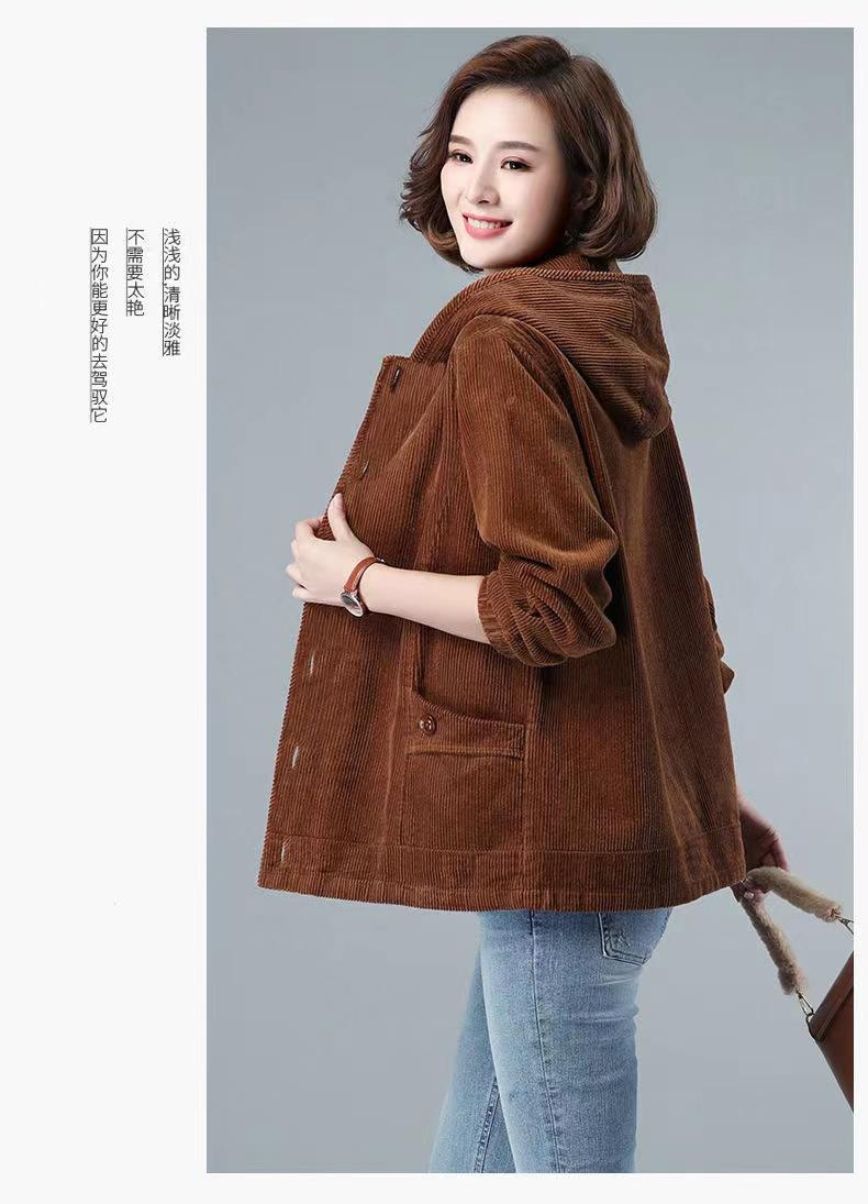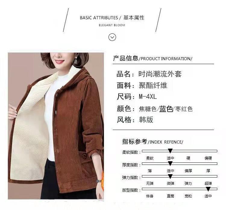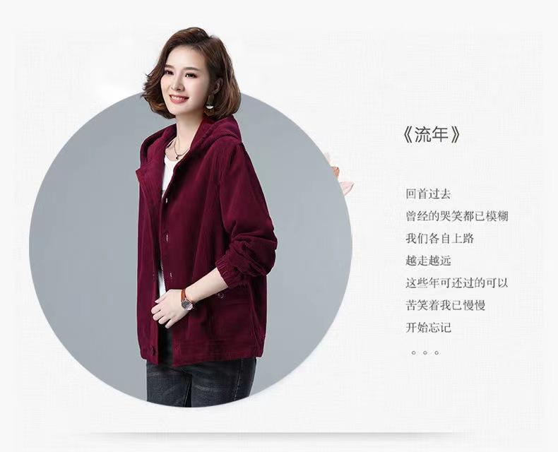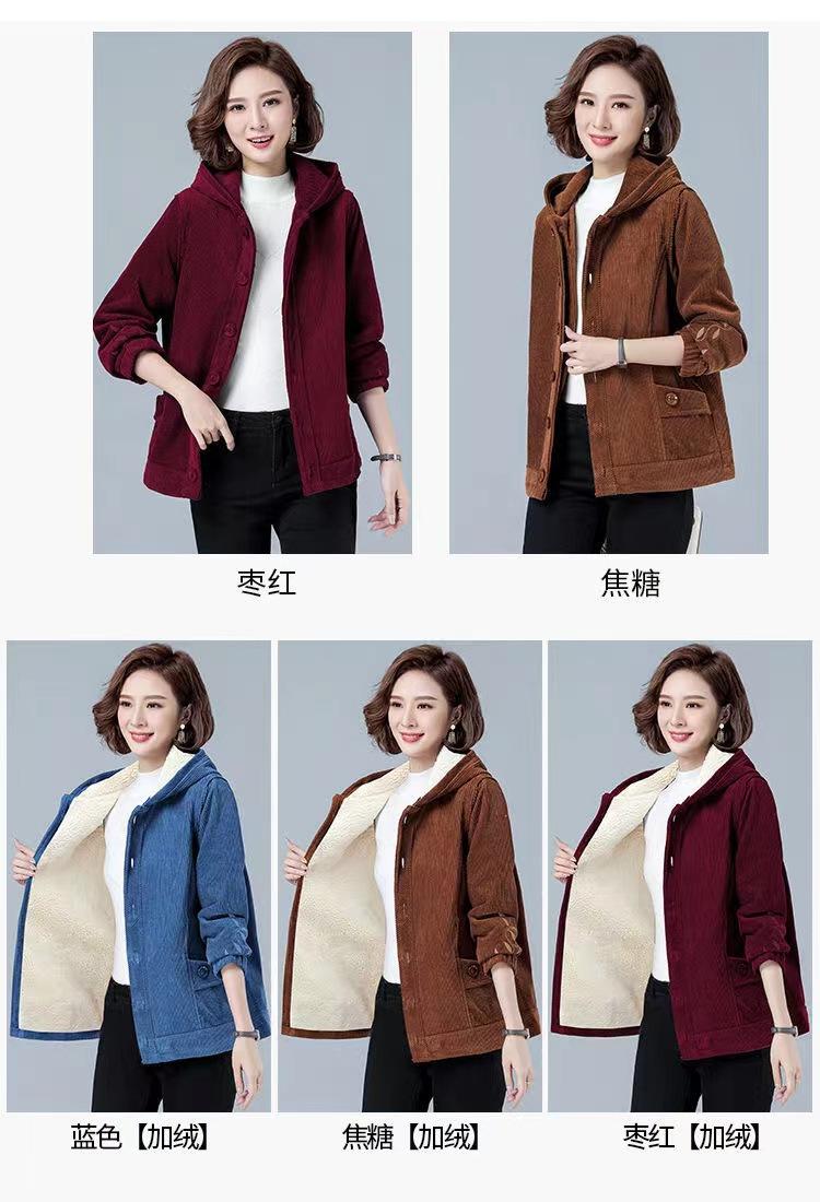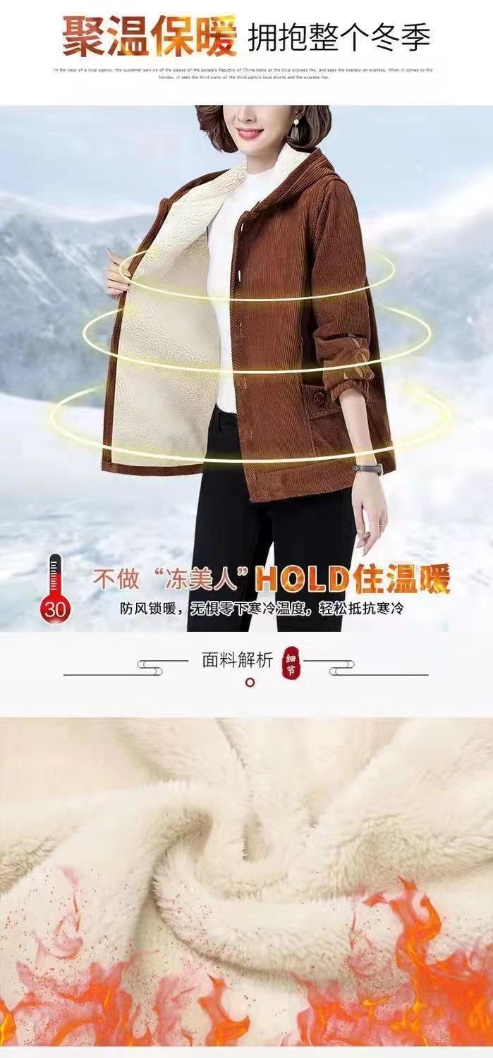 Otoño e Invierno Nuevo Abrigo de pana para mujer con forro polar Engrosado Terciopelo Ártico Casual Suelto Adelgazante para Madres de Mediana Edad y Ancianas