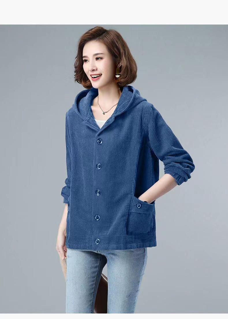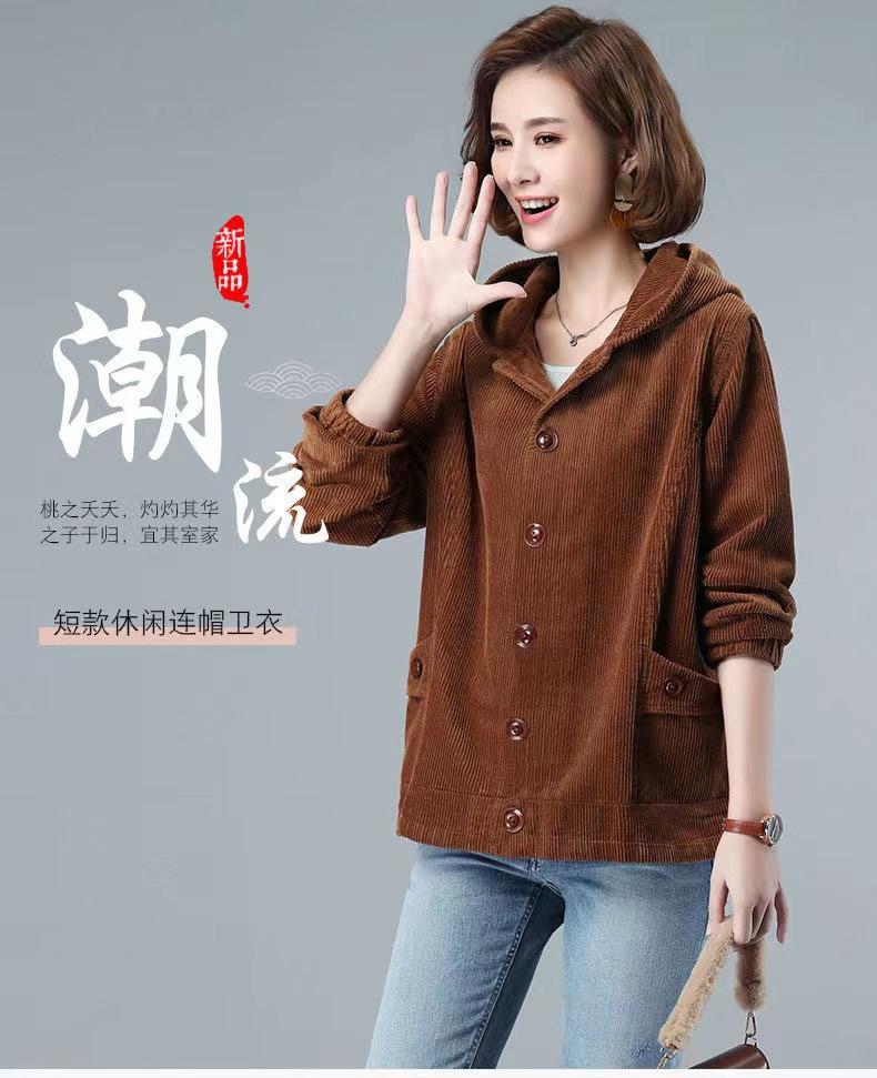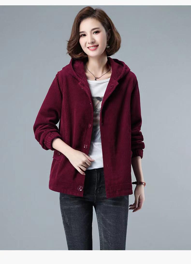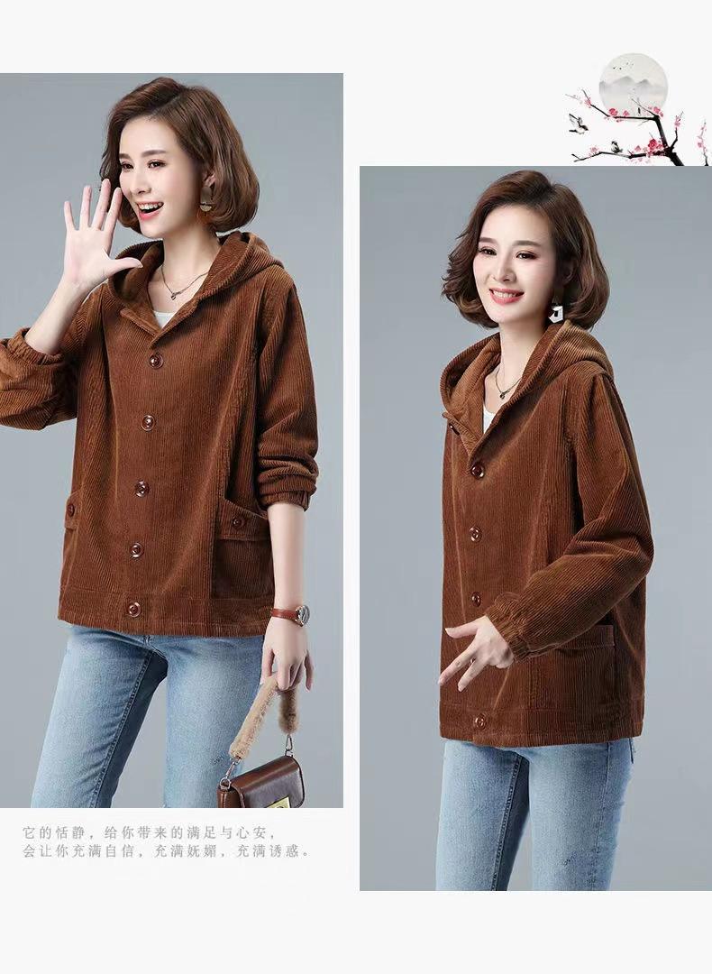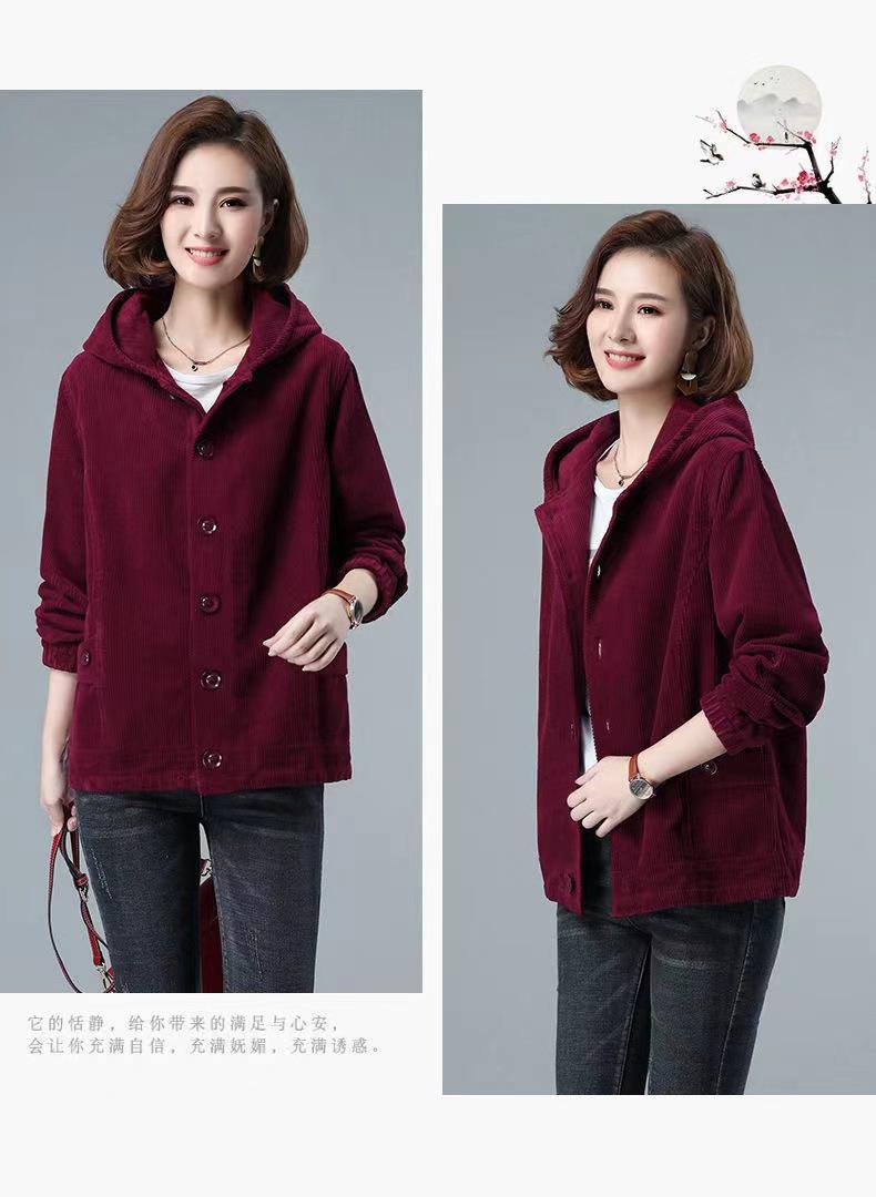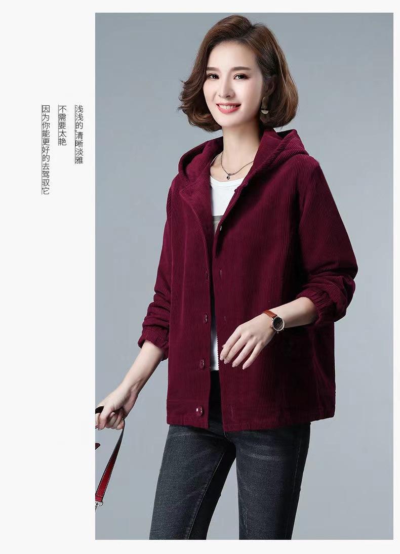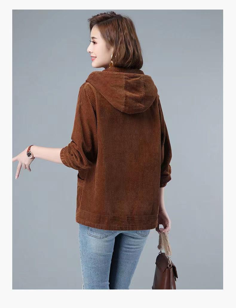 Otoño e Invierno Nuevo Abrigo de pana para mujer con forro polar Engrosado Terciopelo Ártico Casual Suelto Adelgazante para Madres de Mediana Edad y Ancianas