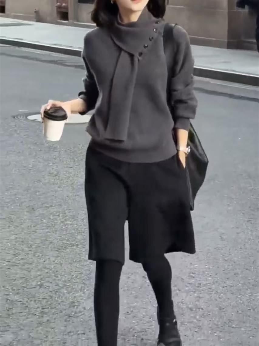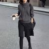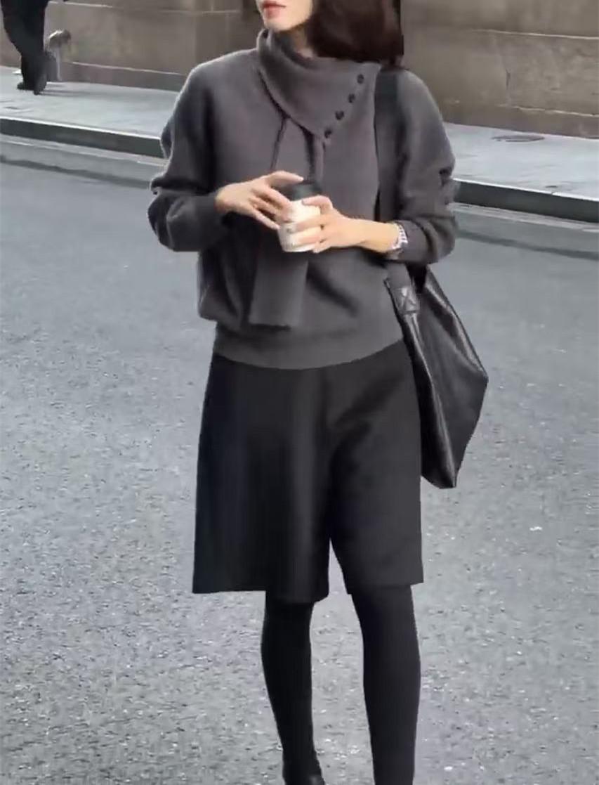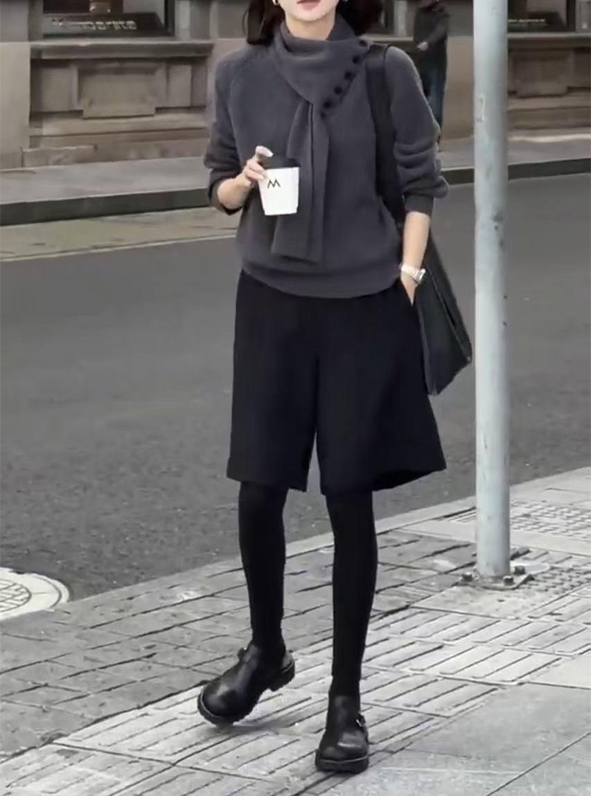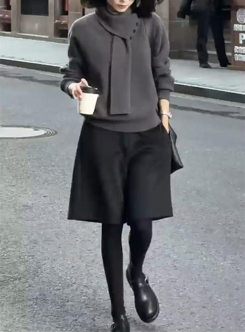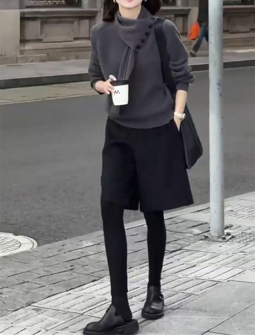 241171 Big Love Meiyuan 2025 Otoño e Invierno Nuevo Estilo Top Sencillo de Moda de Gama Alta Pantalones Anchos Cinco Cuartos con Estilo Occidental