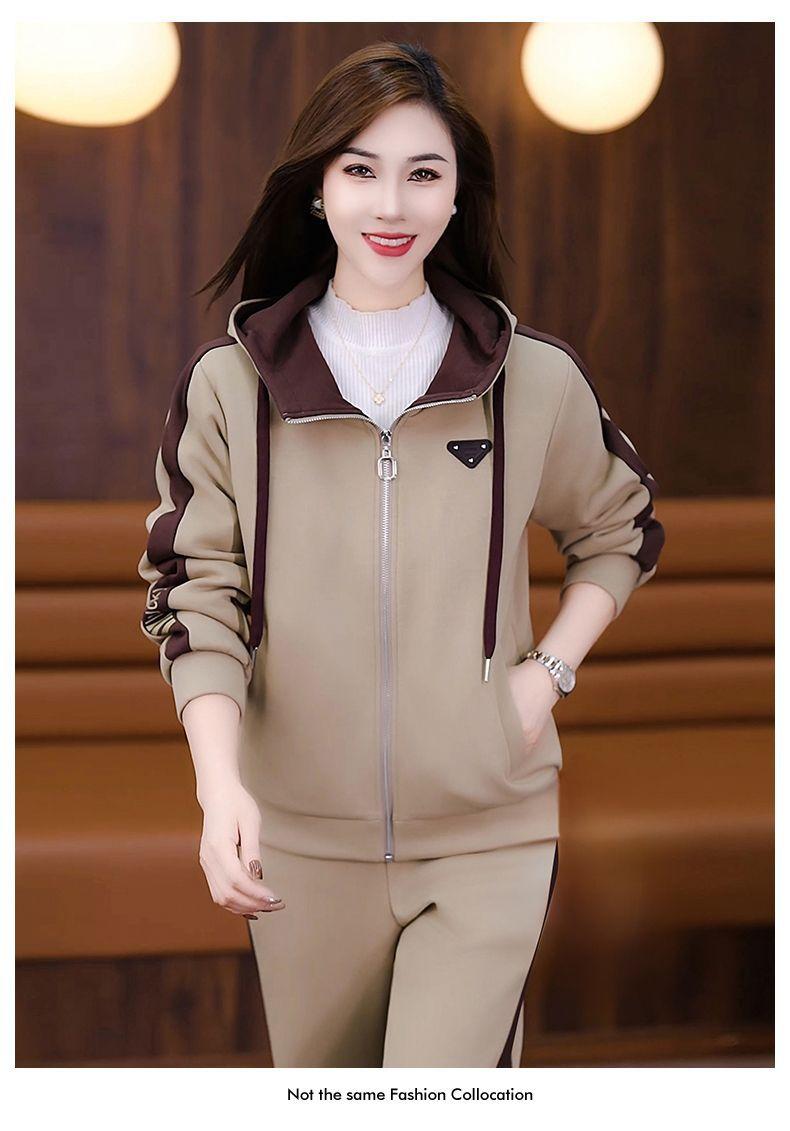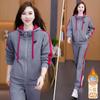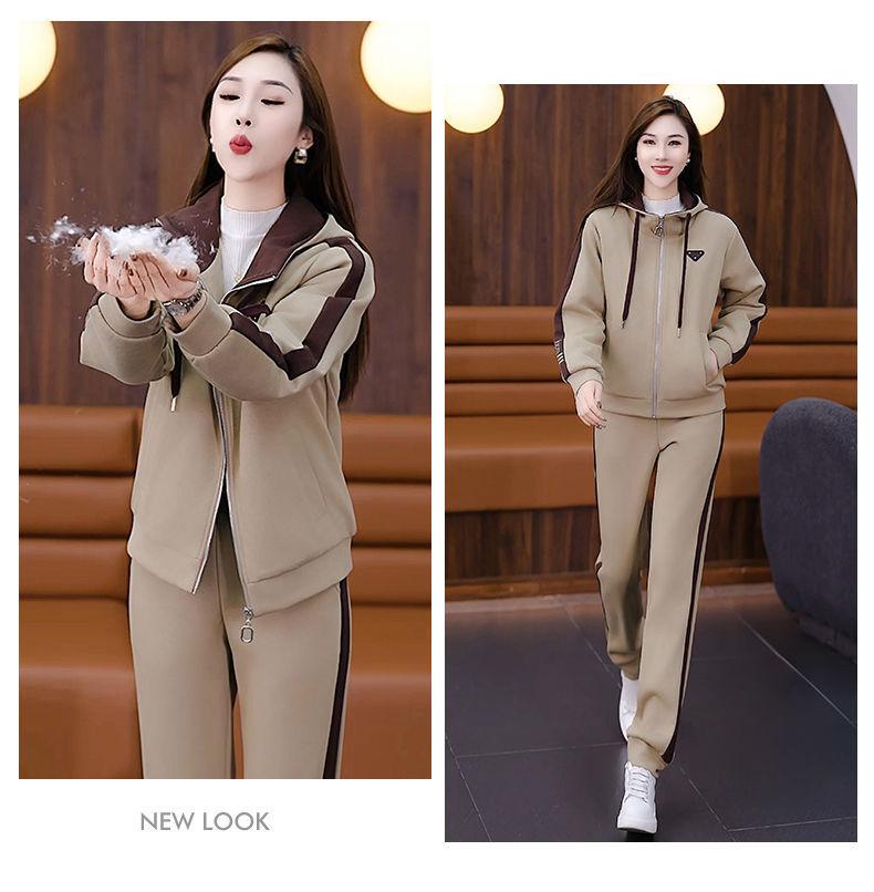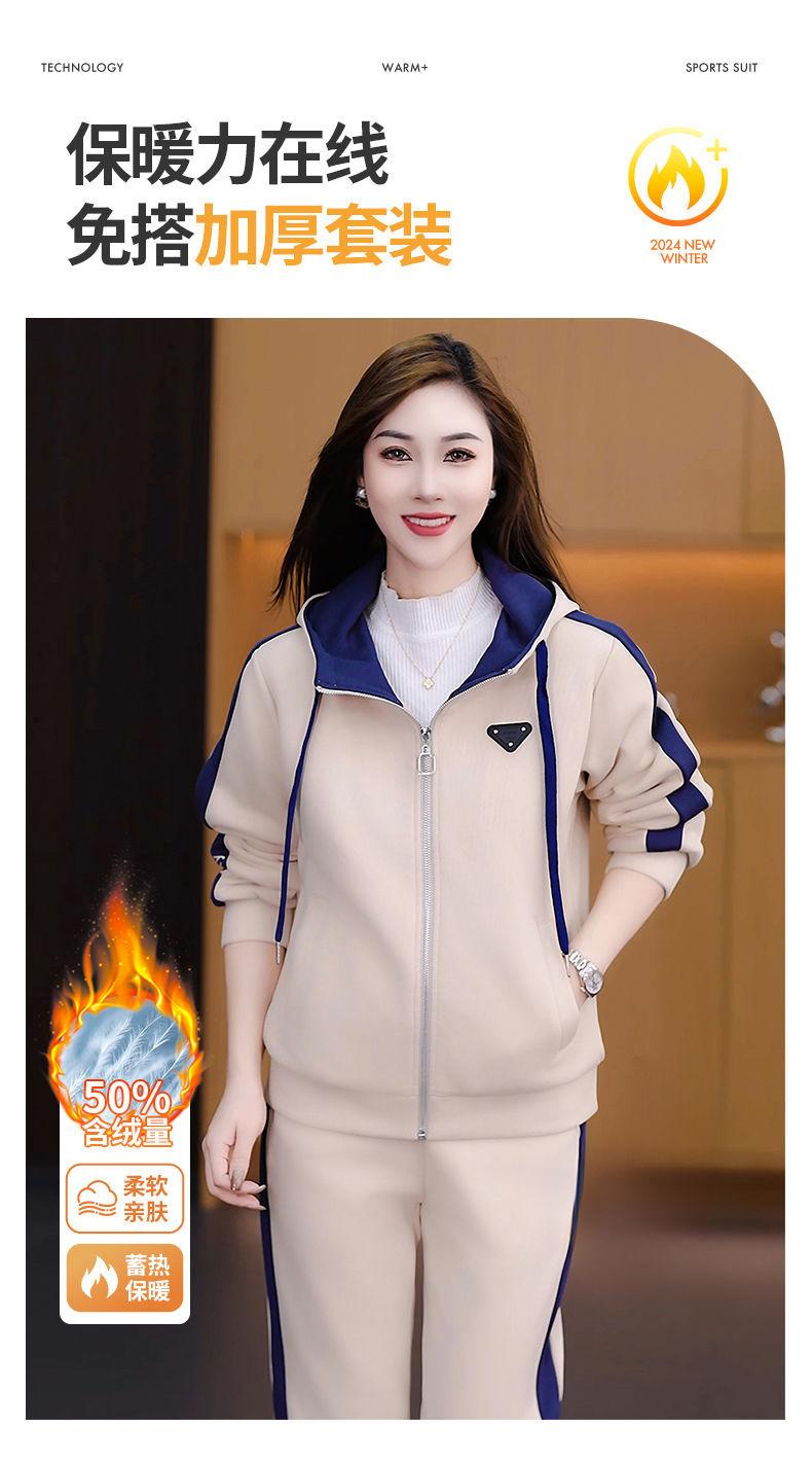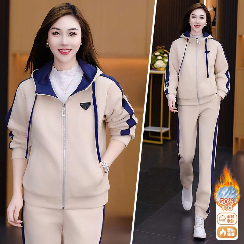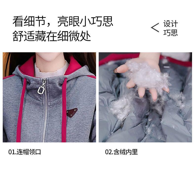 Chaqueta de plumas, traje deportivo para mujer, otoño e invierno, dos piezas, cárdigan de estilo occidental a la moda, con capucha y forro polar, suéter grueso y cálido para mujer.