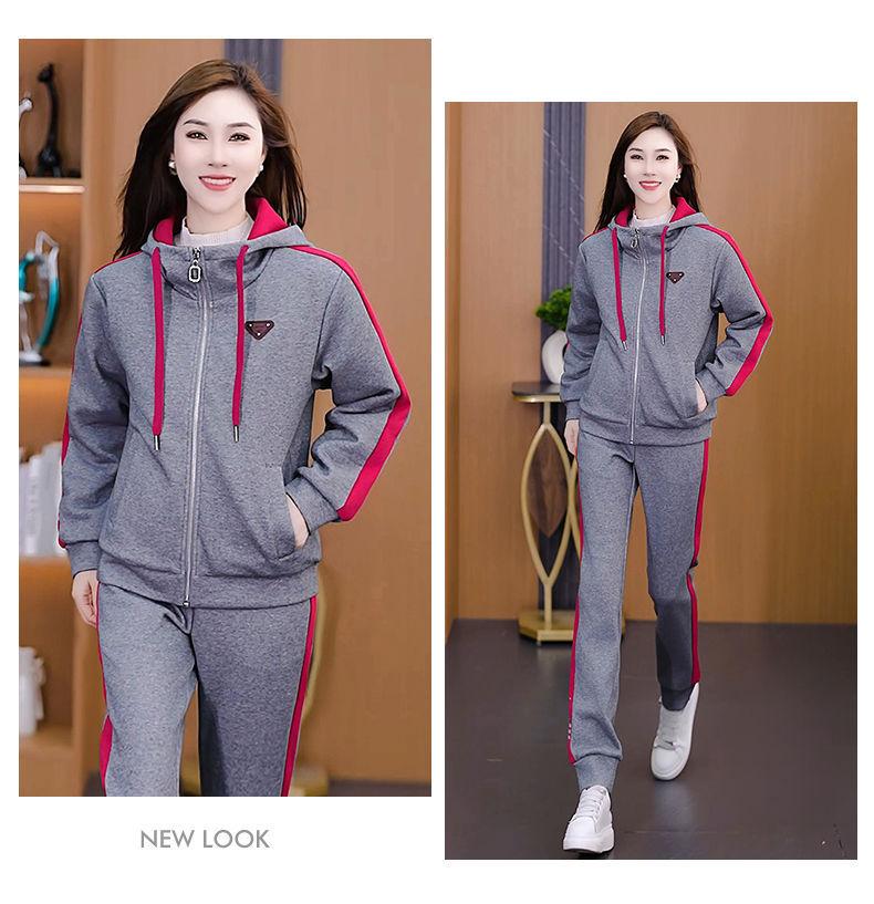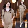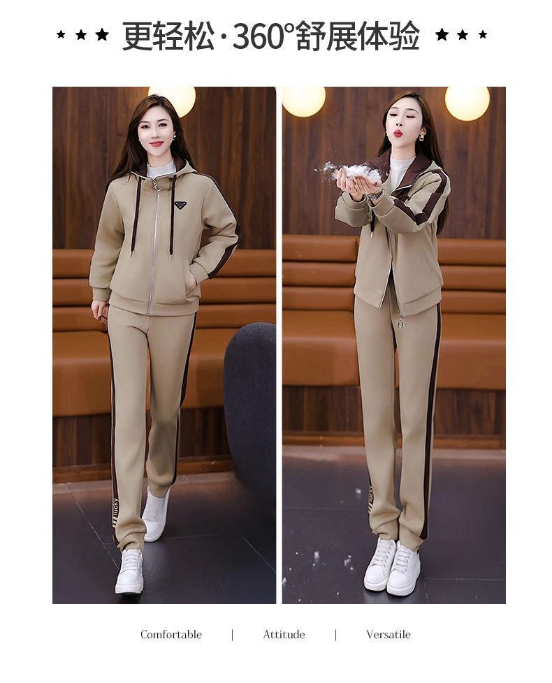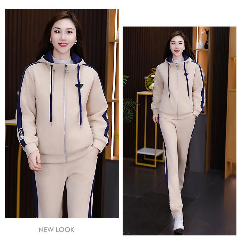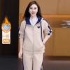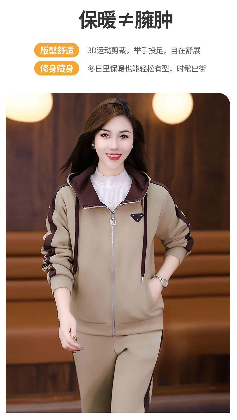 Chaqueta de plumas, traje deportivo para mujer, otoño e invierno, dos piezas, cárdigan de estilo occidental a la moda, con capucha y forro polar, suéter grueso y cálido para mujer.