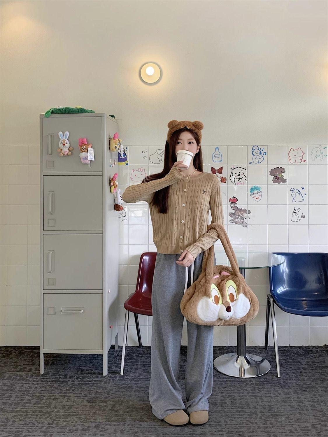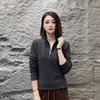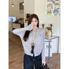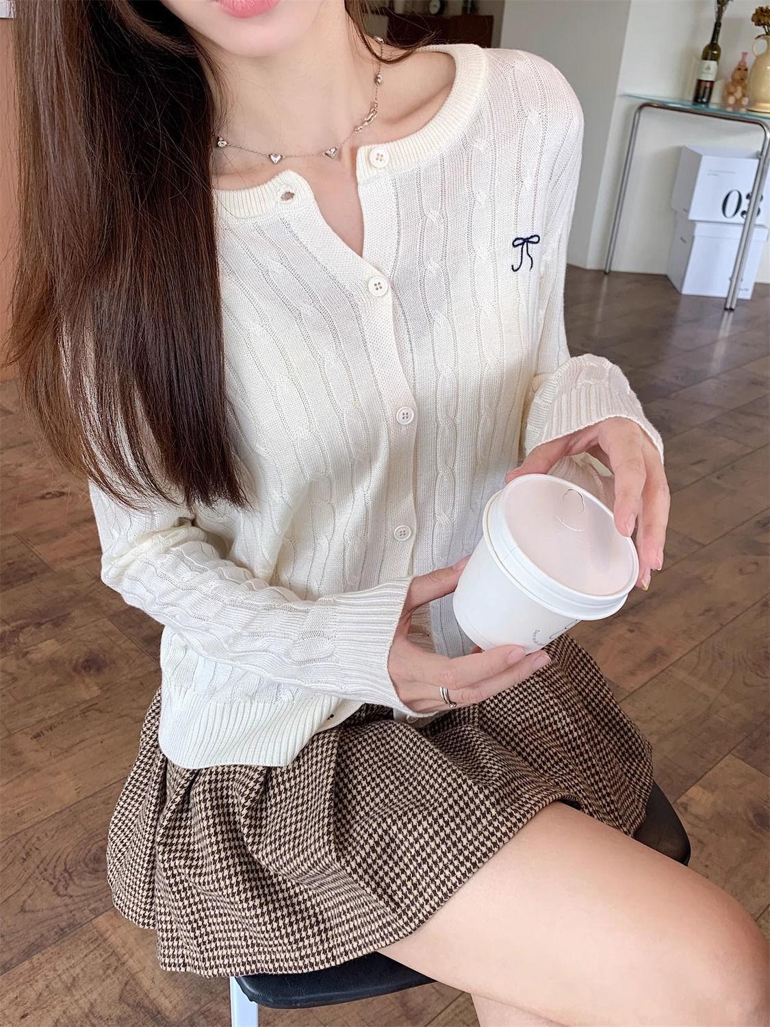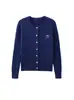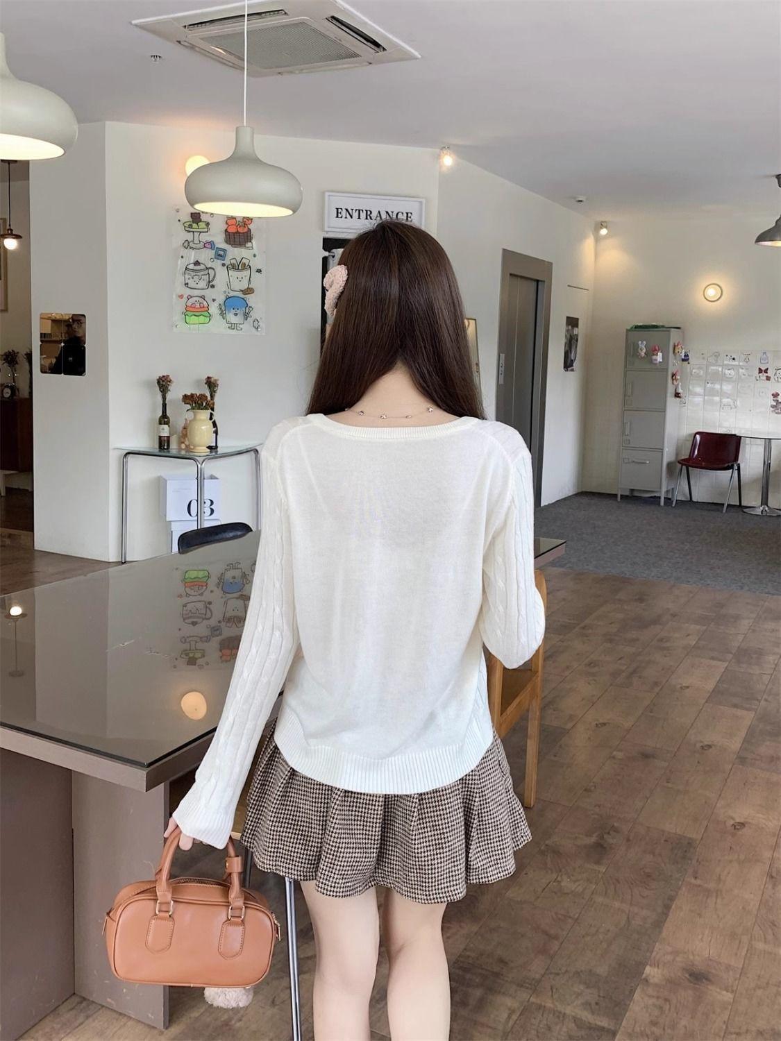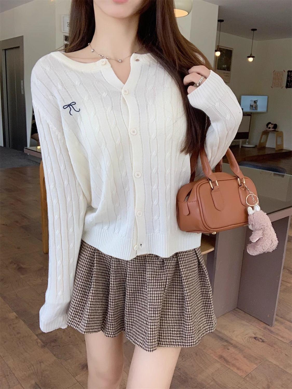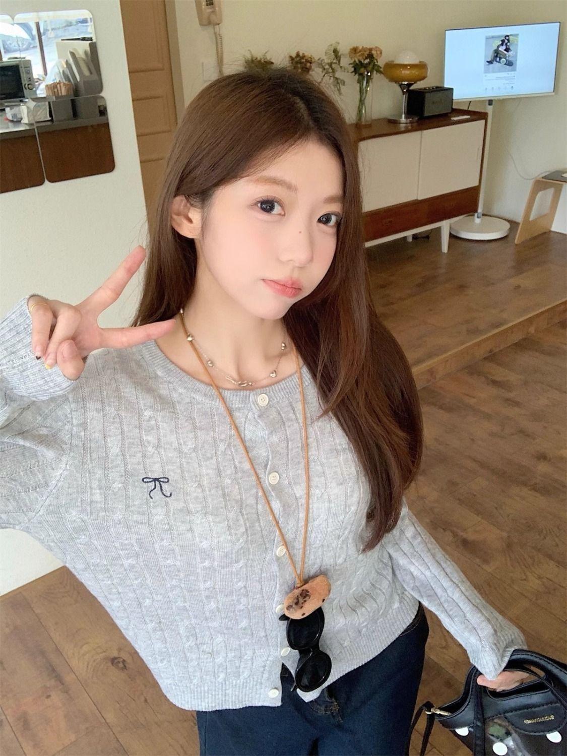 Suéter de manga larga para mujer, otoño e invierno 2024, nuevo diseño de botones, cuello redondo, color liso, suéter corto y cálido