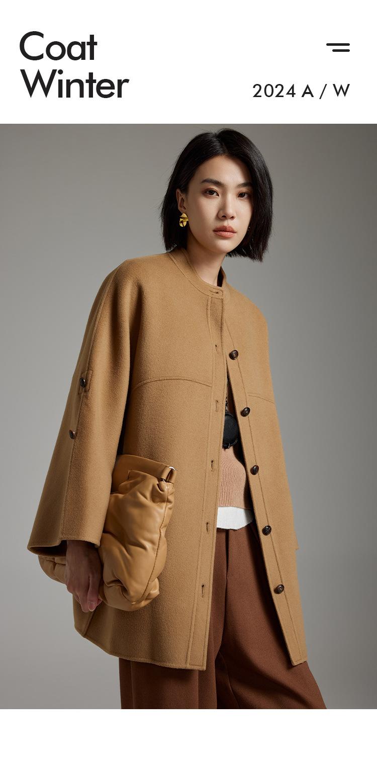 Abrigo de cachemira de doble cara para mujer, abrigo de lana holgado de un solo pecho, largo hasta la rodilla, abrigo de lana de invierno, ropa de mujer