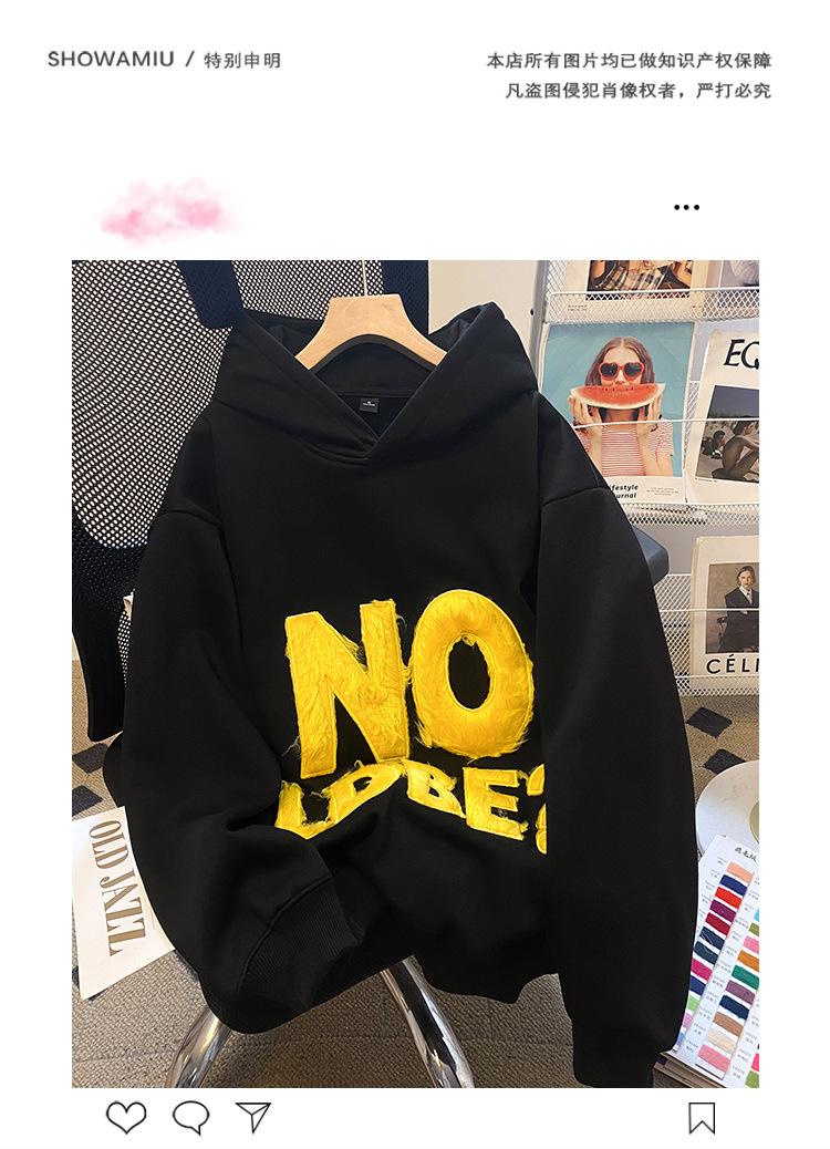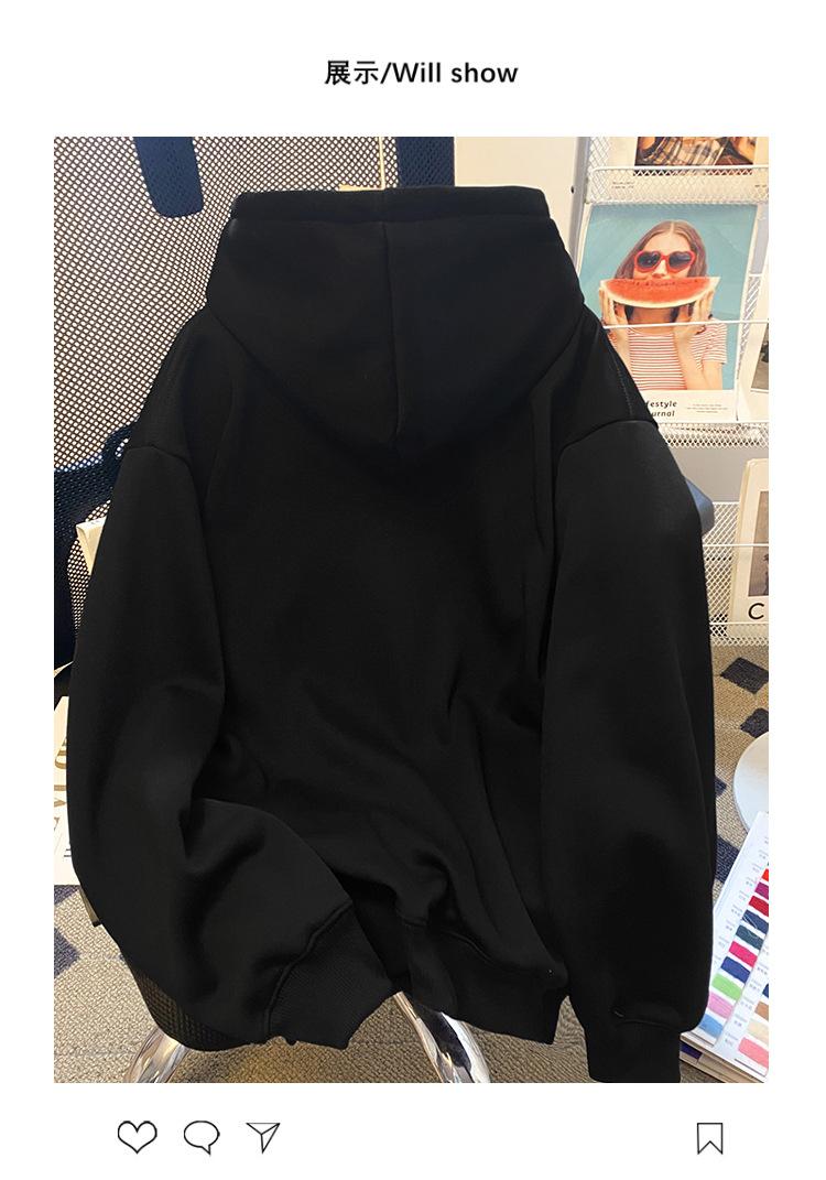 Talla grande Sudadera con capucha estilo americano vintage de alta calle con bordado de letras 3D para mujer, chaqueta gruesa y cálida con forro polar para otoño e invierno