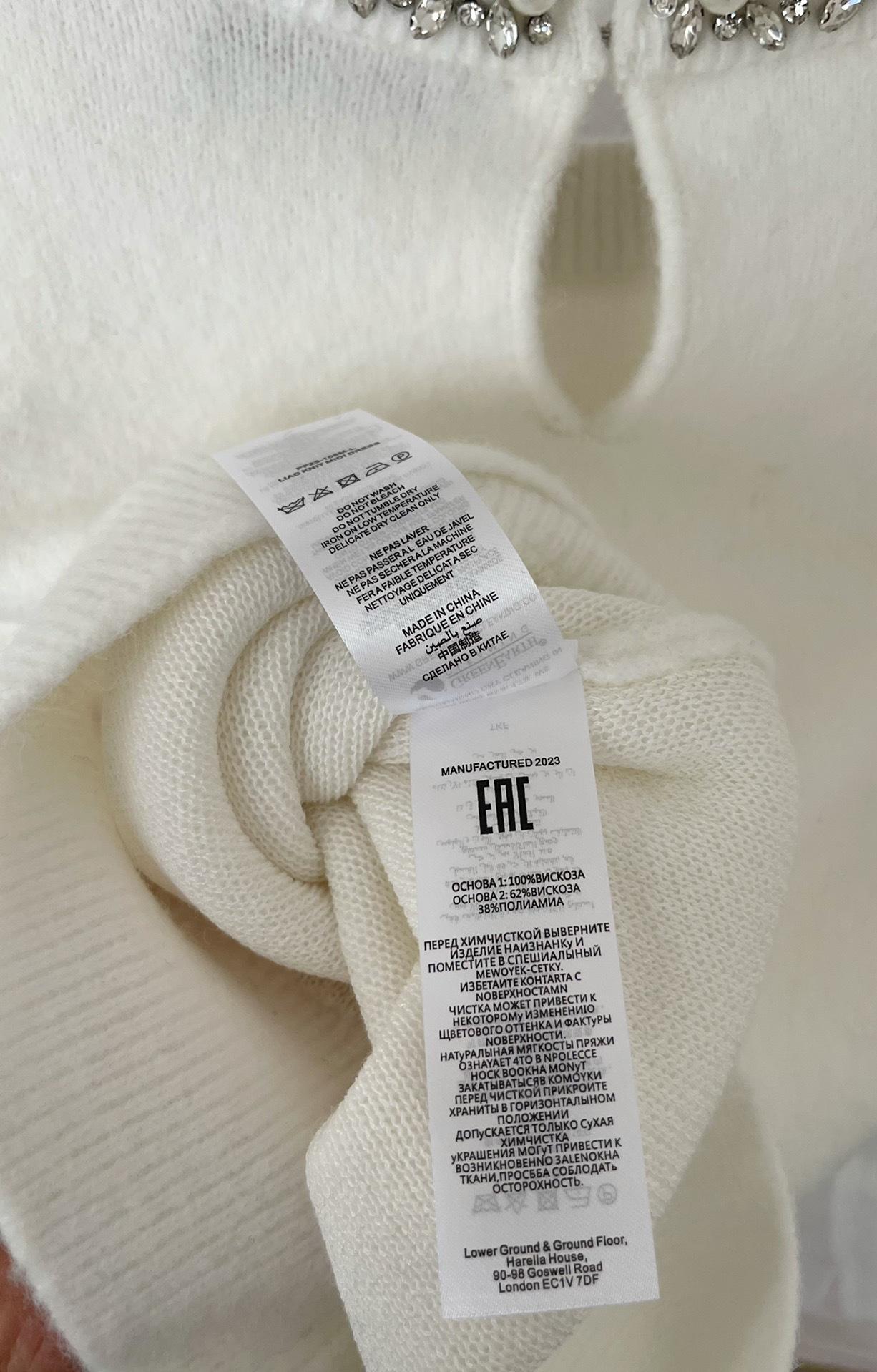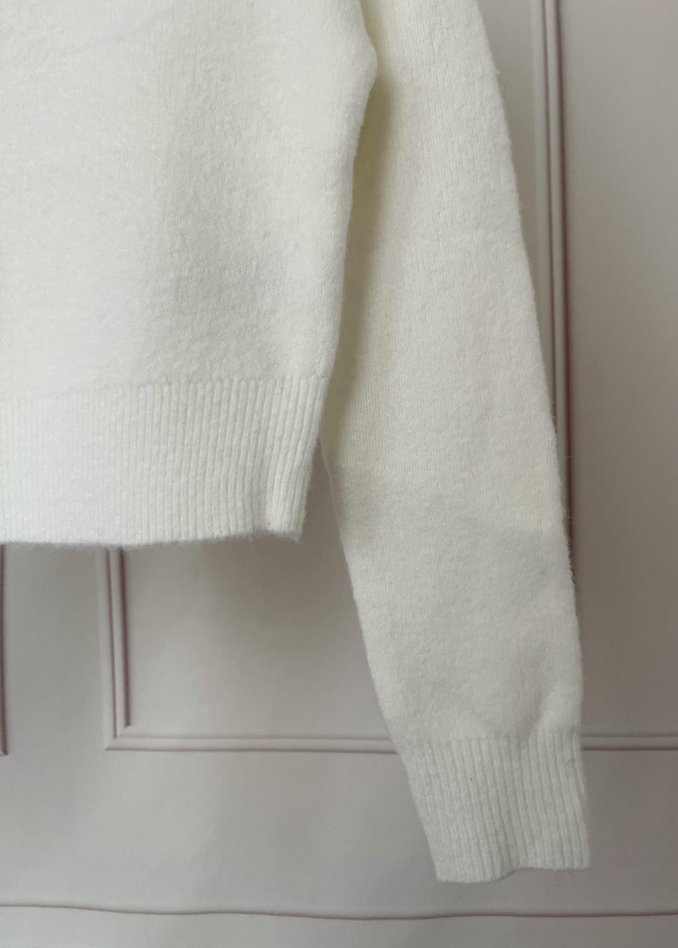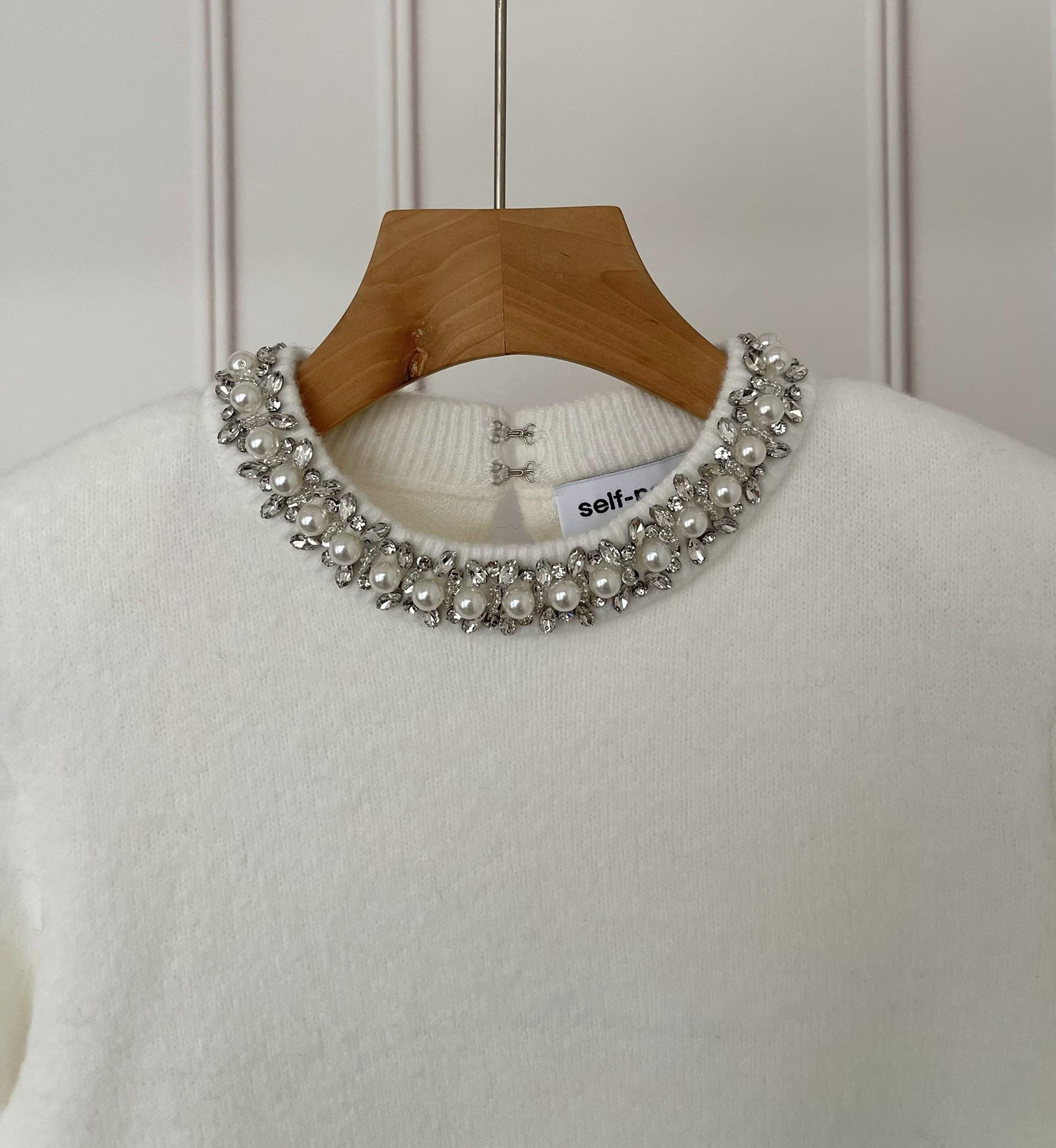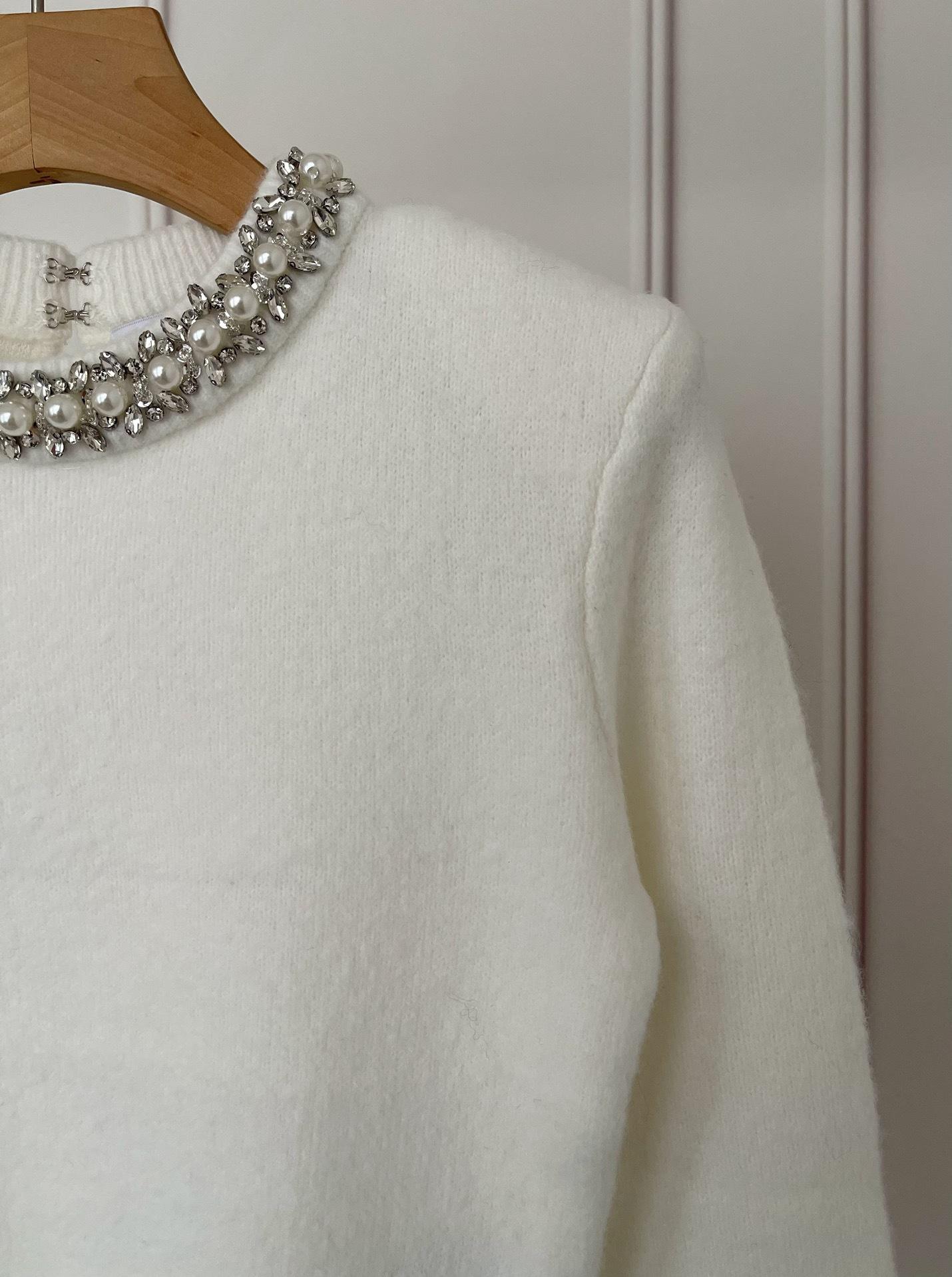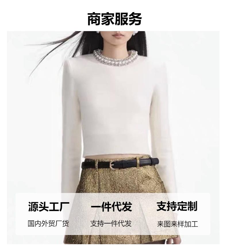 Suéter de Punto de Manga Larga con Cuello Redondo Blanco Dulce Versátil a la Moda con Decoración de Diamantes Estilo Francés 2025 Principios de Primavera Nuevo para Mujer
