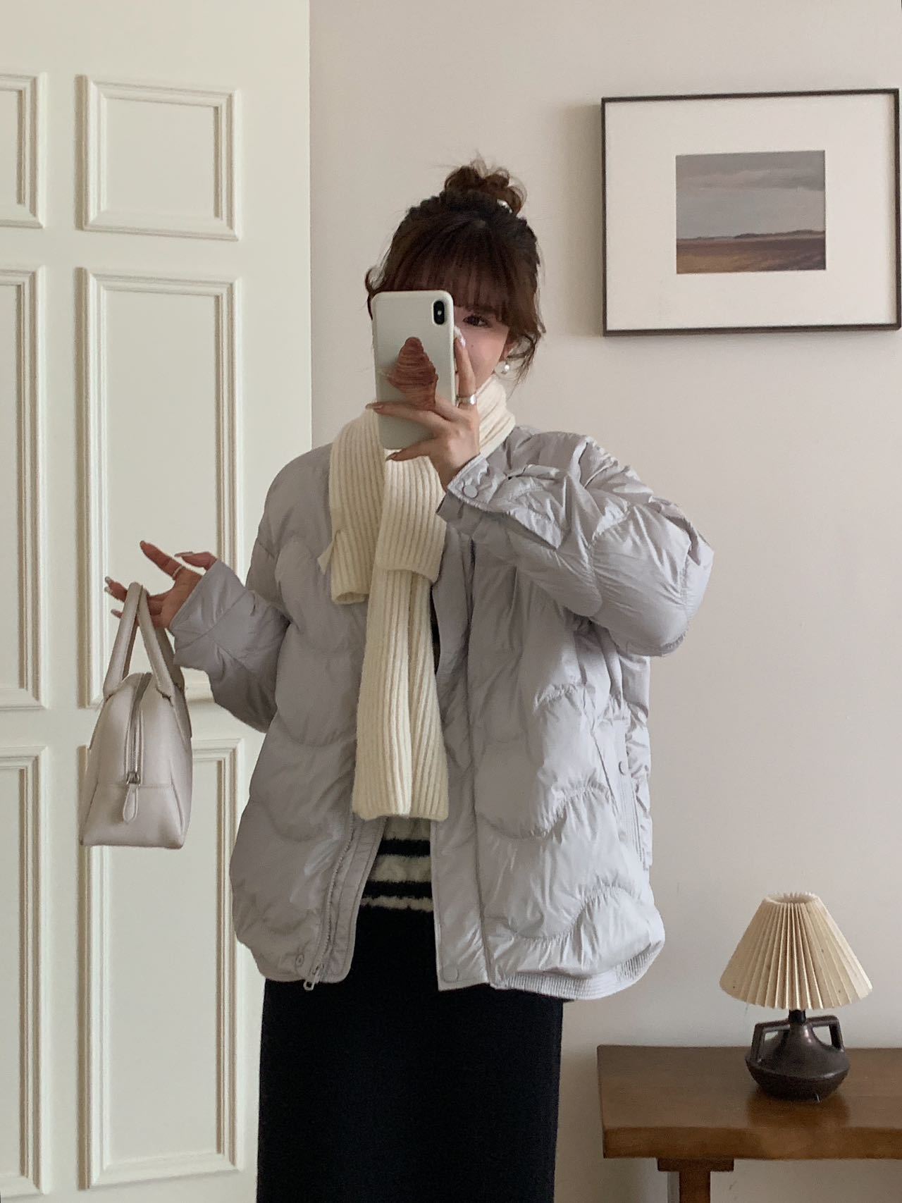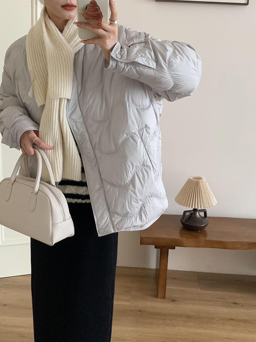 Chamarra ligera de plumón para mujer con cuello beisbolero de alto volumen, estilo corto, moda nueva de invierno 2025, plumón de pato blanco, top cálido para petite