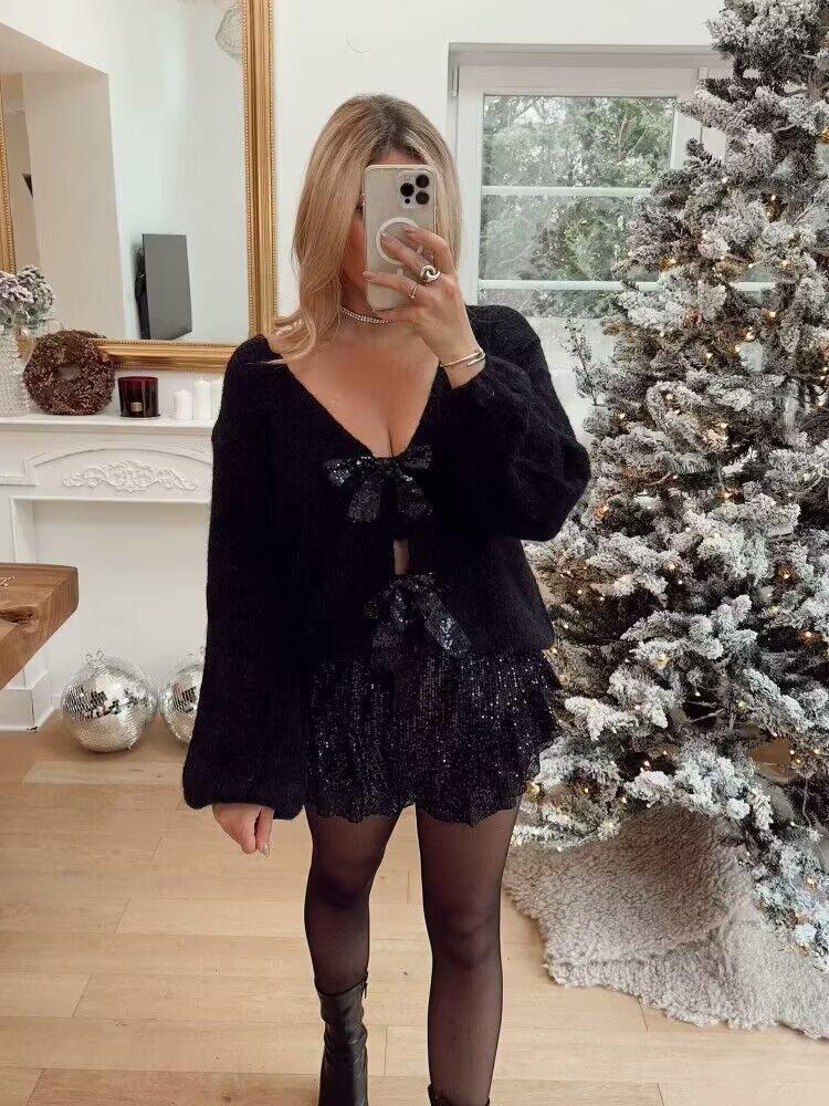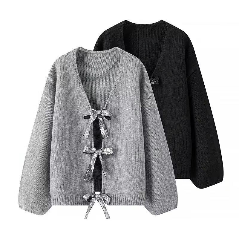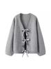 Suéter cárdigan de punto suelto con decoración de lazo a juego de nueva moda de primavera 2024 para comercio exterior transfronterizo entre Europa y Estados Unidos