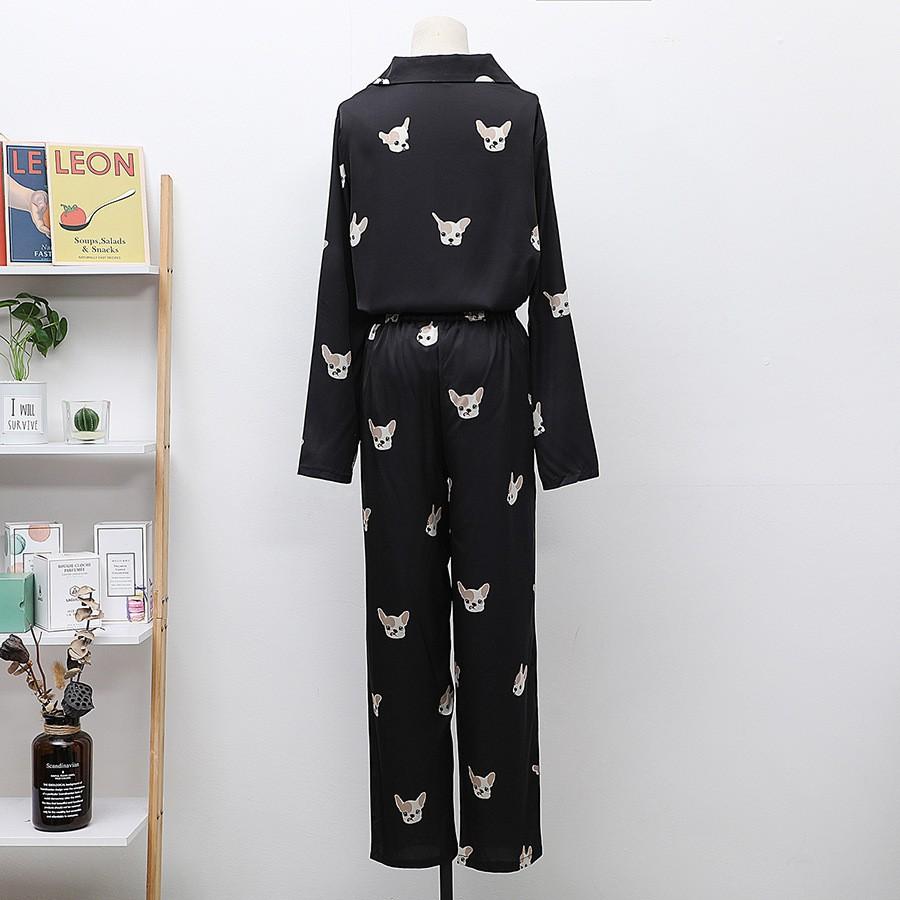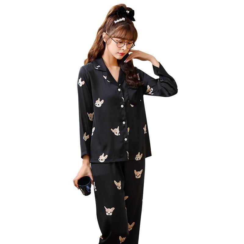 Pijamas para mujer, estilo coreano, de seda fina, con manga larga y pantalón, con dibujos animados, para el hogar. Procesamiento y personalización.