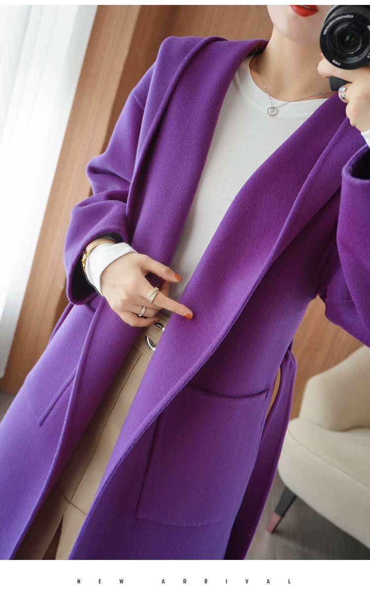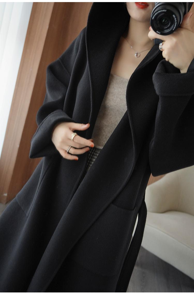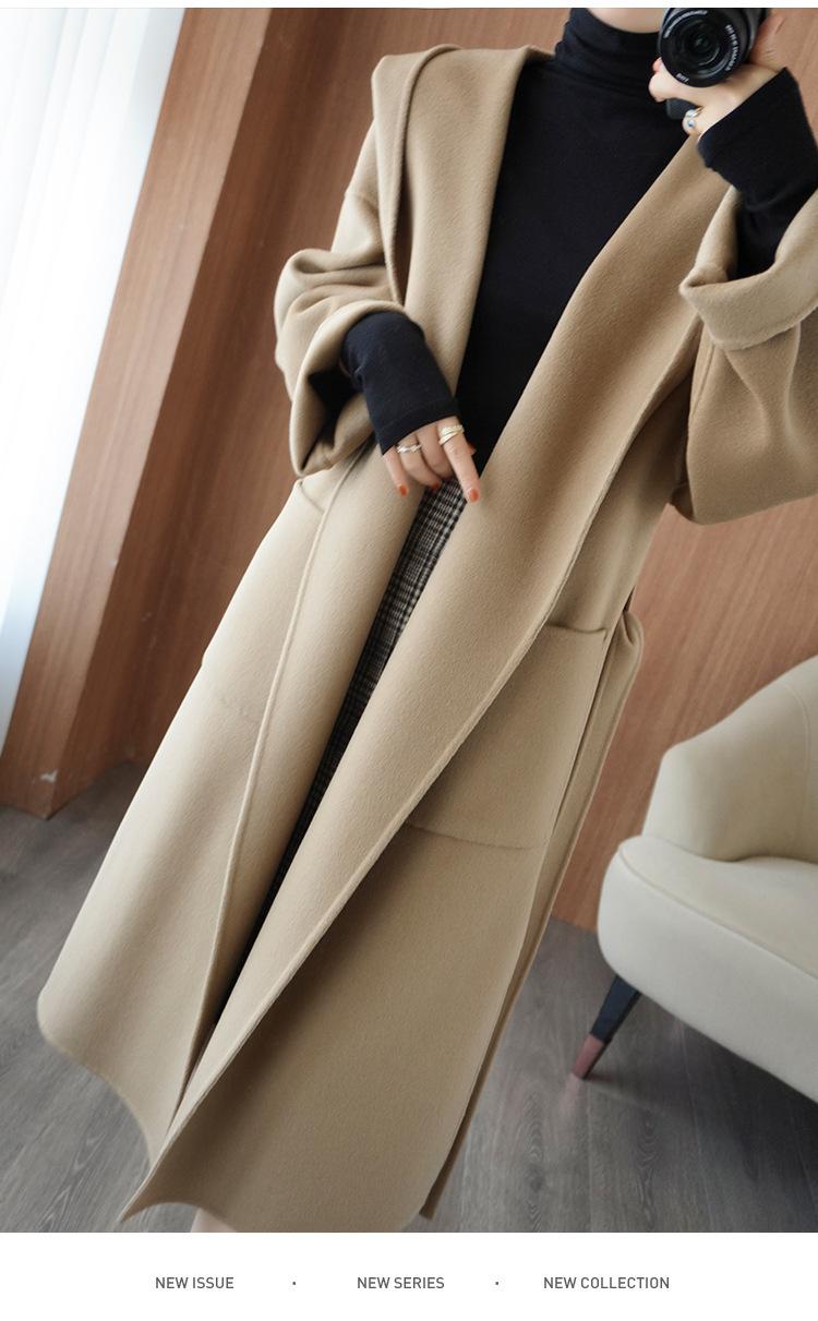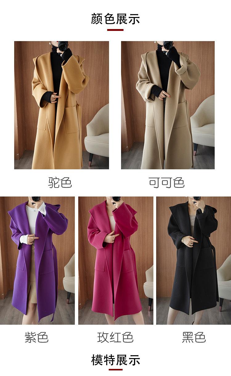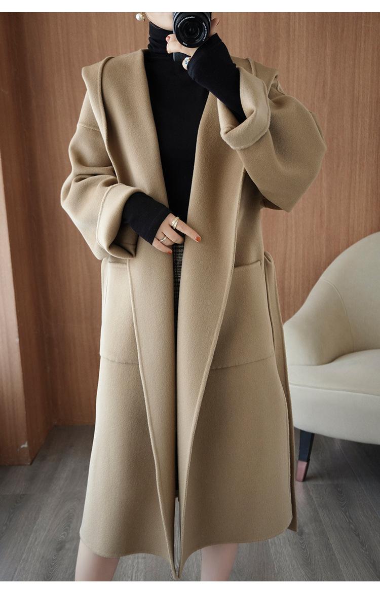 Abrigo de Lana de Doble Vista con Capucha para Mujer con Bolsillo Suelto Casual Elegante Sencillo Moda Combinable Chaqueta con Cordones