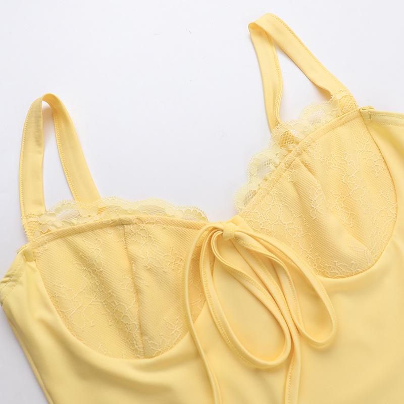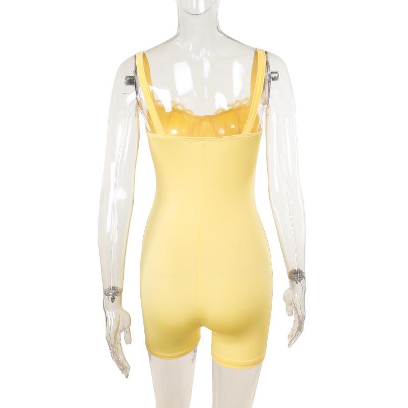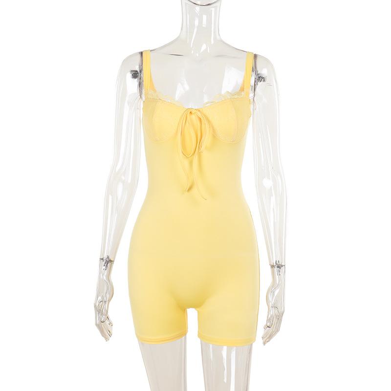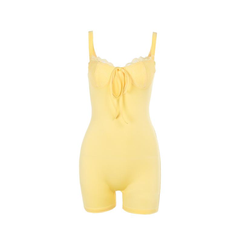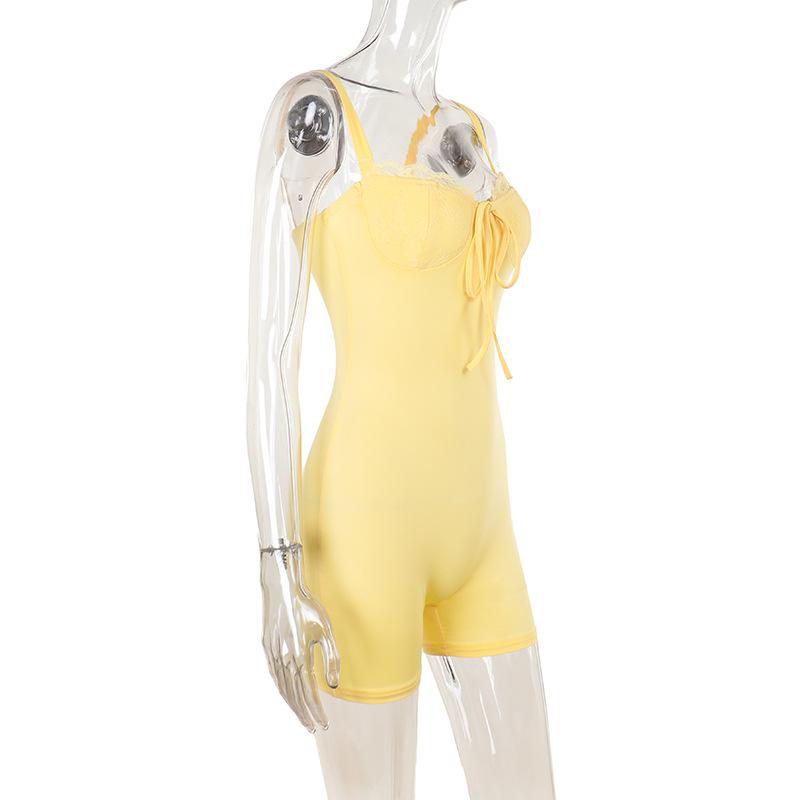 Estación independiente Otoño 2024 Nuevo estilo europeo y americano Elegante Chaleco ajustado sexy Copa de pecho de encaje Pantalones cortos de una pieza para mujeres