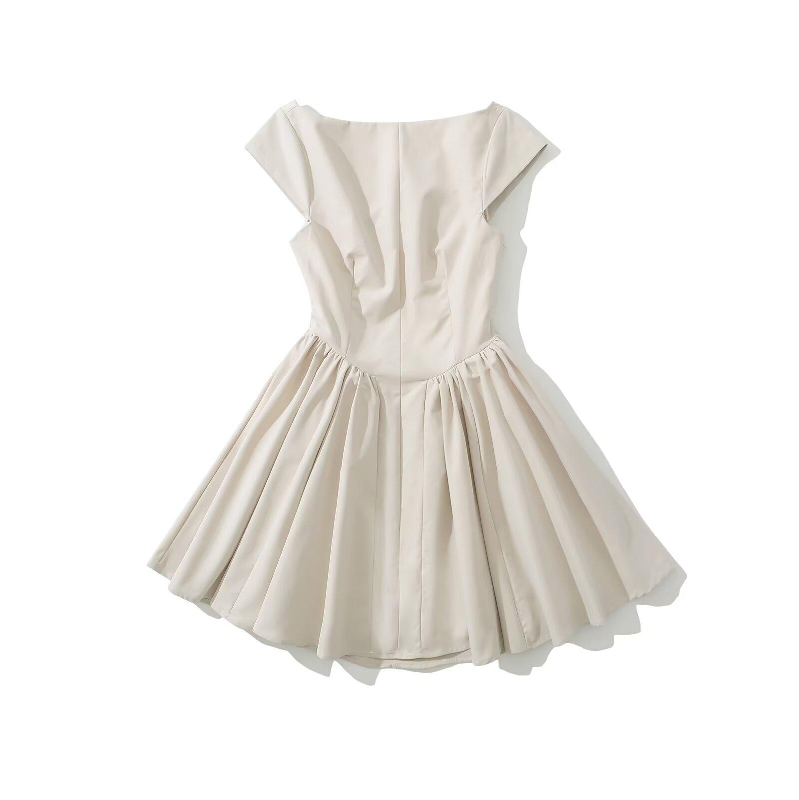 24102-Vestido sexy de manga corta para chicas calientes de estilo europeo y americano, otoño 2024, nueva falda plisada ajustada a la cadera