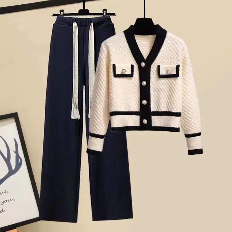 Vestido de otoño Un conjunto de traje estilo Pure Desire Ropa de mujer nueva de moda Suéter estilo fragante Pantalones anchos de cintura alta Conjunto de dos piezas