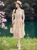Vestido de gasa de manga larga con estampado floral y cuello en V para mujer, primavera y otoño de 2024, elegante, estilo retro francés, con cintura adelgazante, corte A.