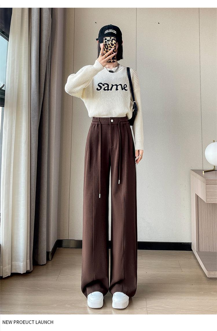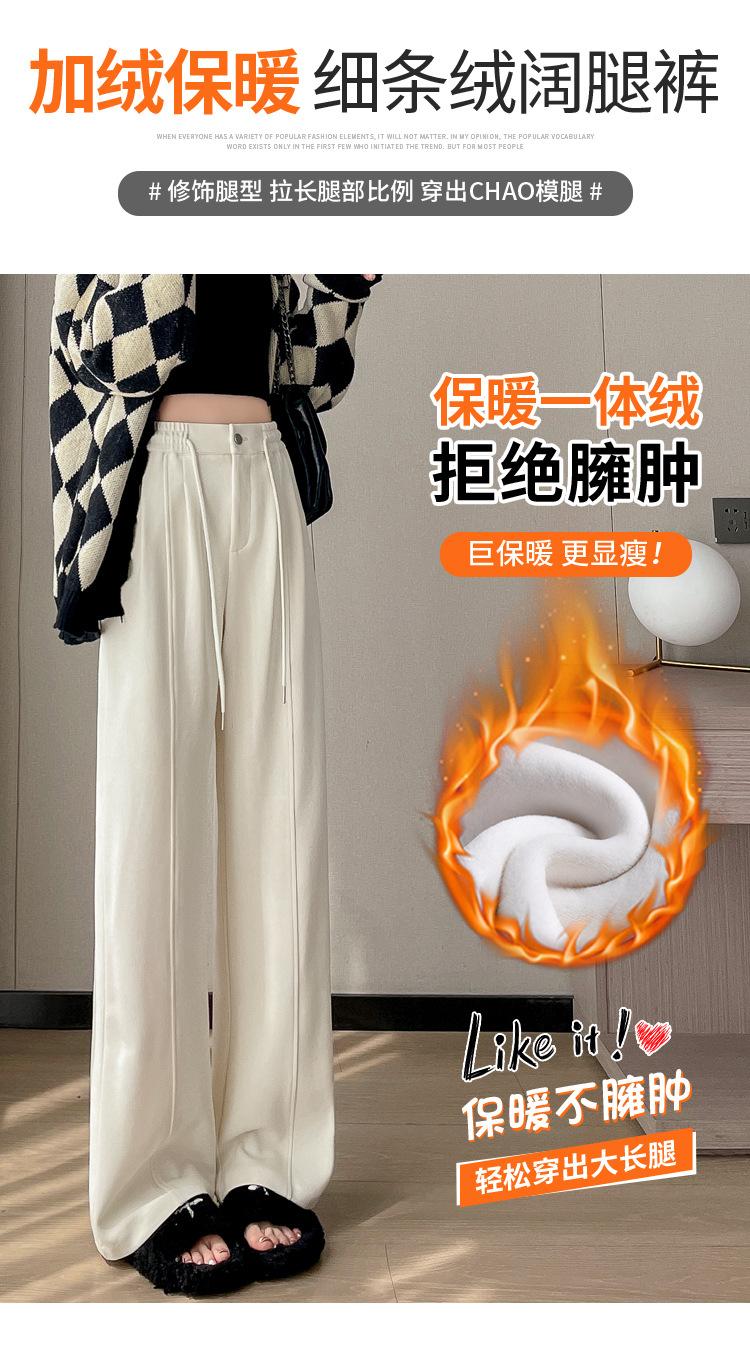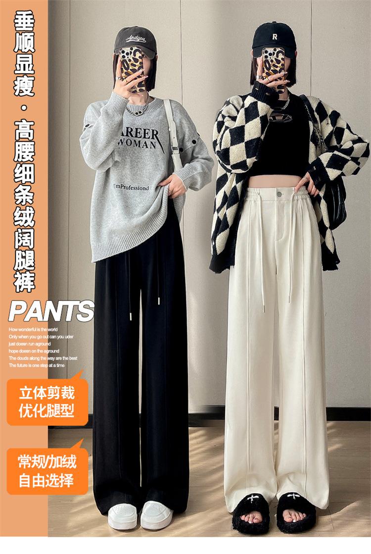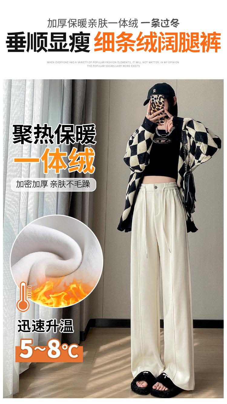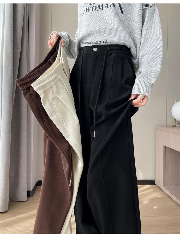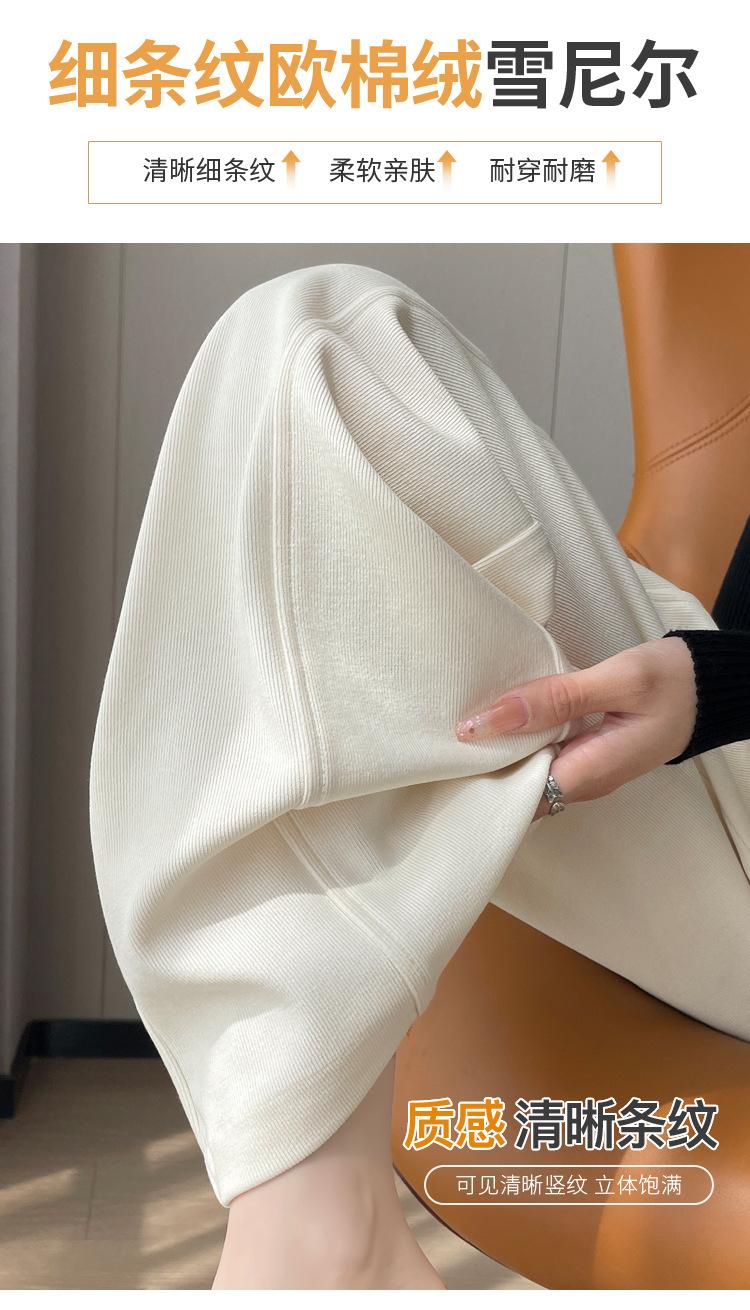 2024 Nuevo Estilo de Invierno Terciopelo Cálido Cintura Alta Ajustado Pierna Ancha Recto Pantalones Deportivos Versátiles Cubre Caderas Pantalones Casuales para Mujer a la Moda
