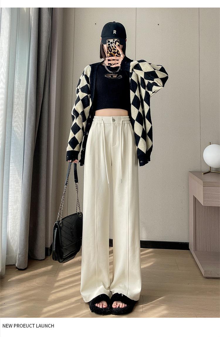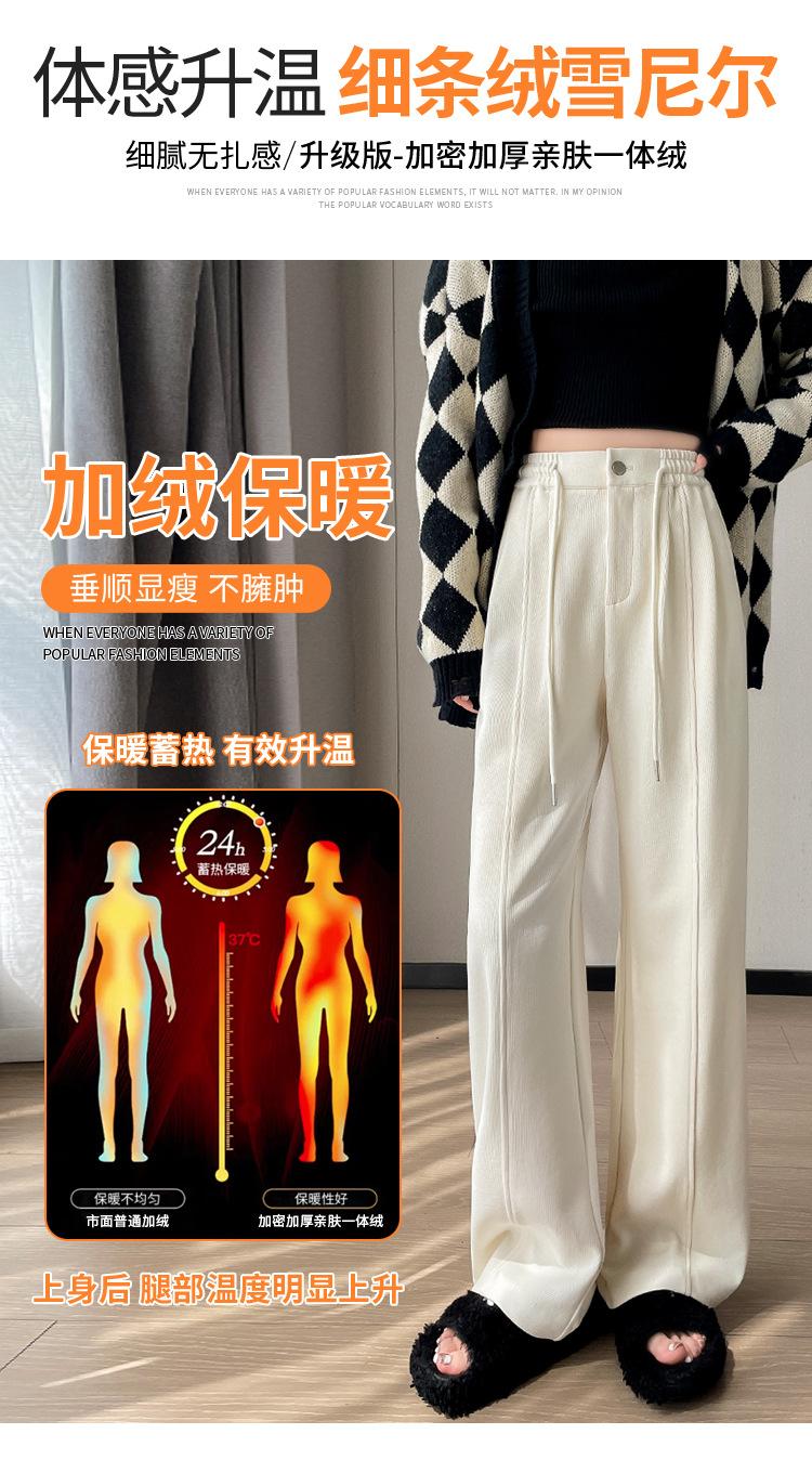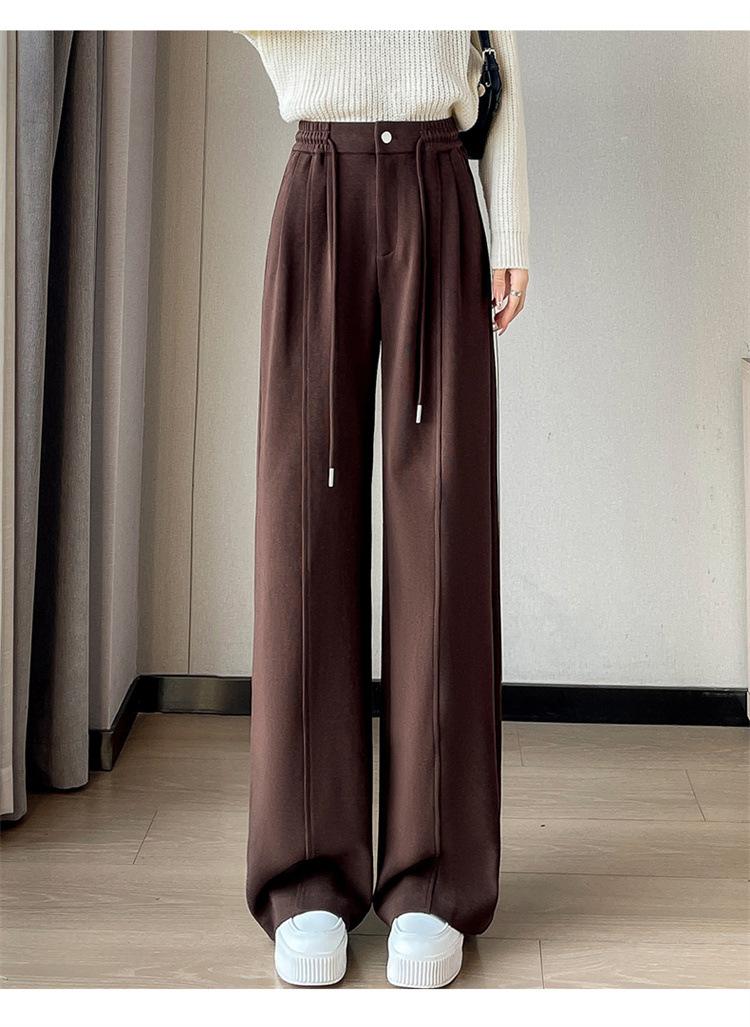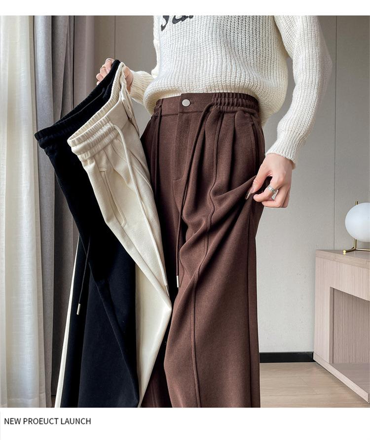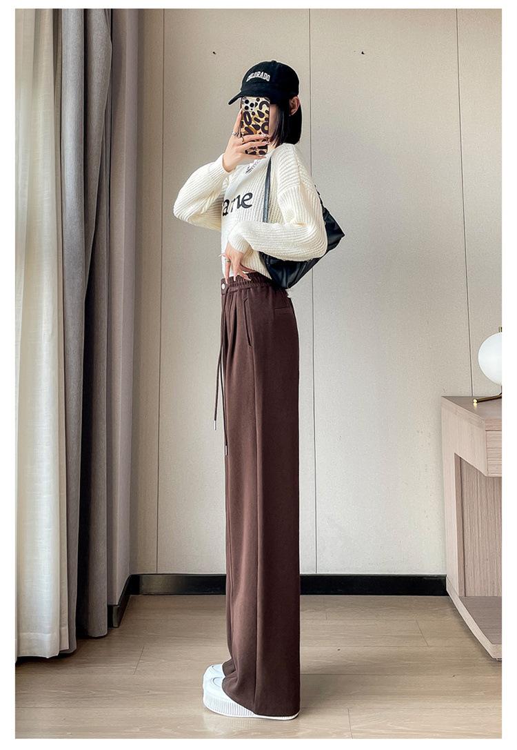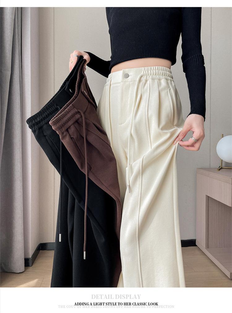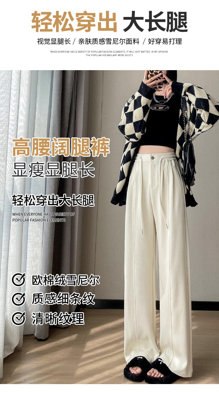 2024 Nuevo Estilo de Invierno Terciopelo Cálido Cintura Alta Ajustado Pierna Ancha Recto Pantalones Deportivos Versátiles Cubre Caderas Pantalones Casuales para Mujer a la Moda