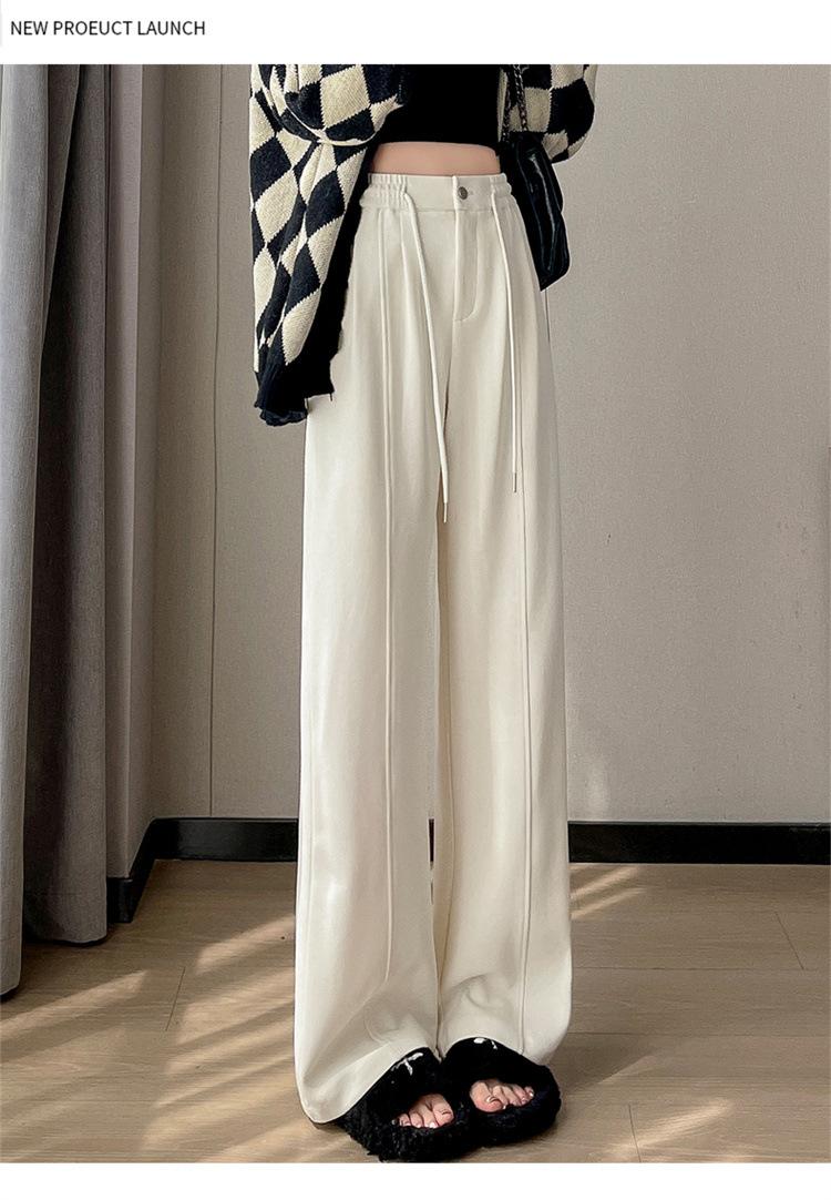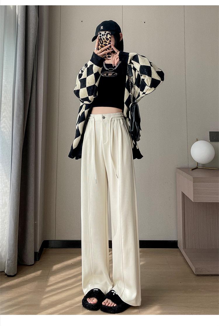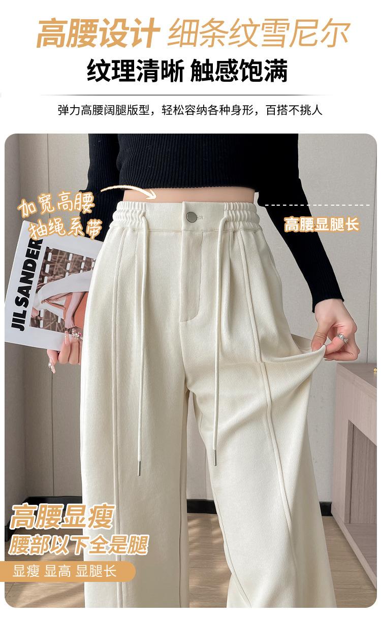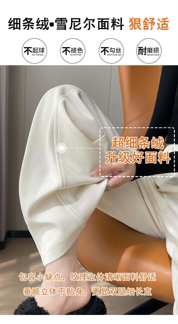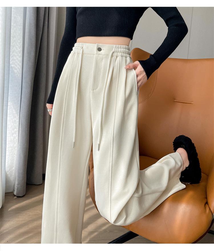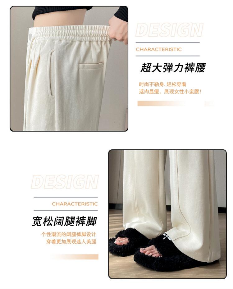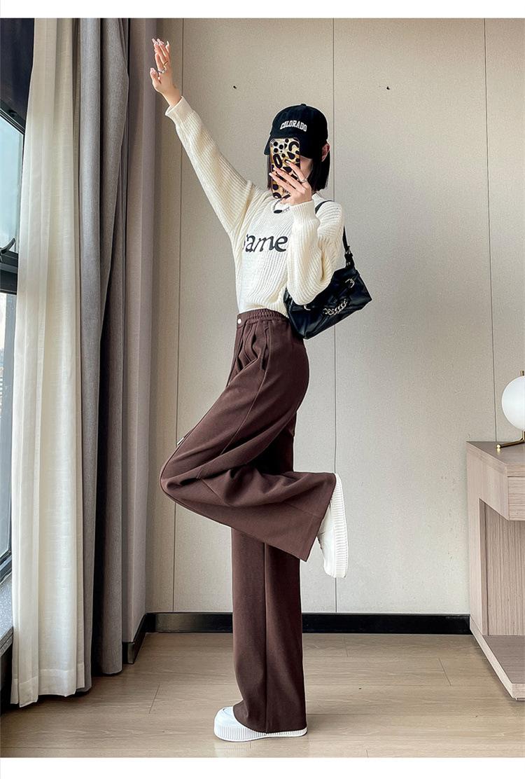 2024 Nuevo Estilo de Invierno Terciopelo Cálido Cintura Alta Ajustado Pierna Ancha Recto Pantalones Deportivos Versátiles Cubre Caderas Pantalones Casuales para Mujer a la Moda