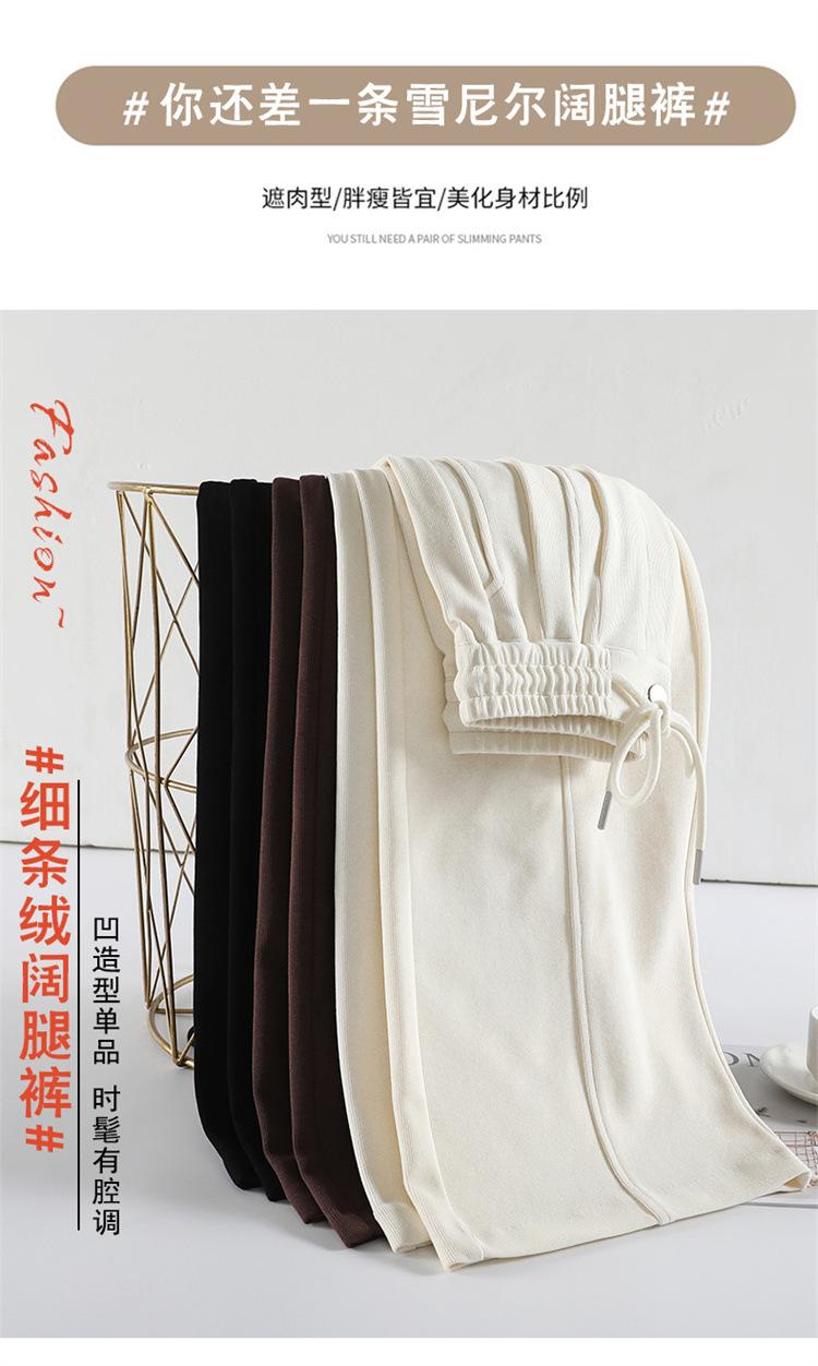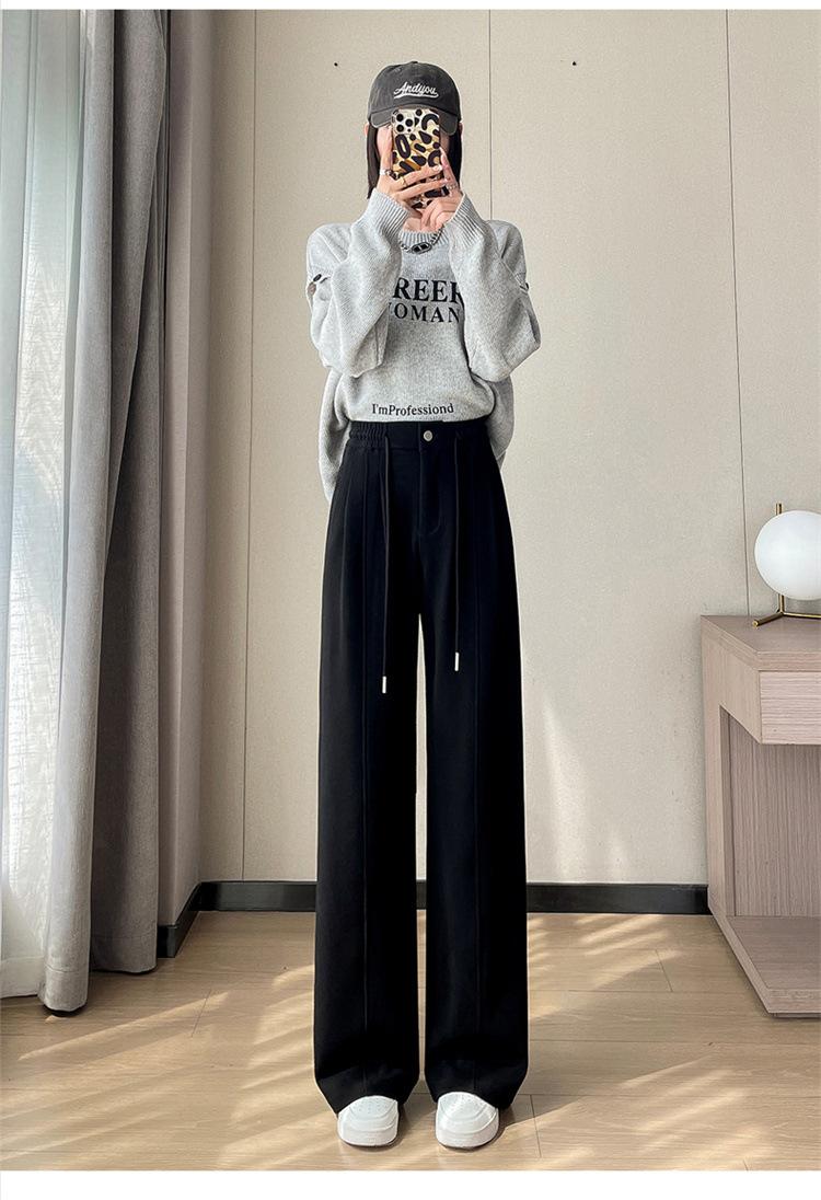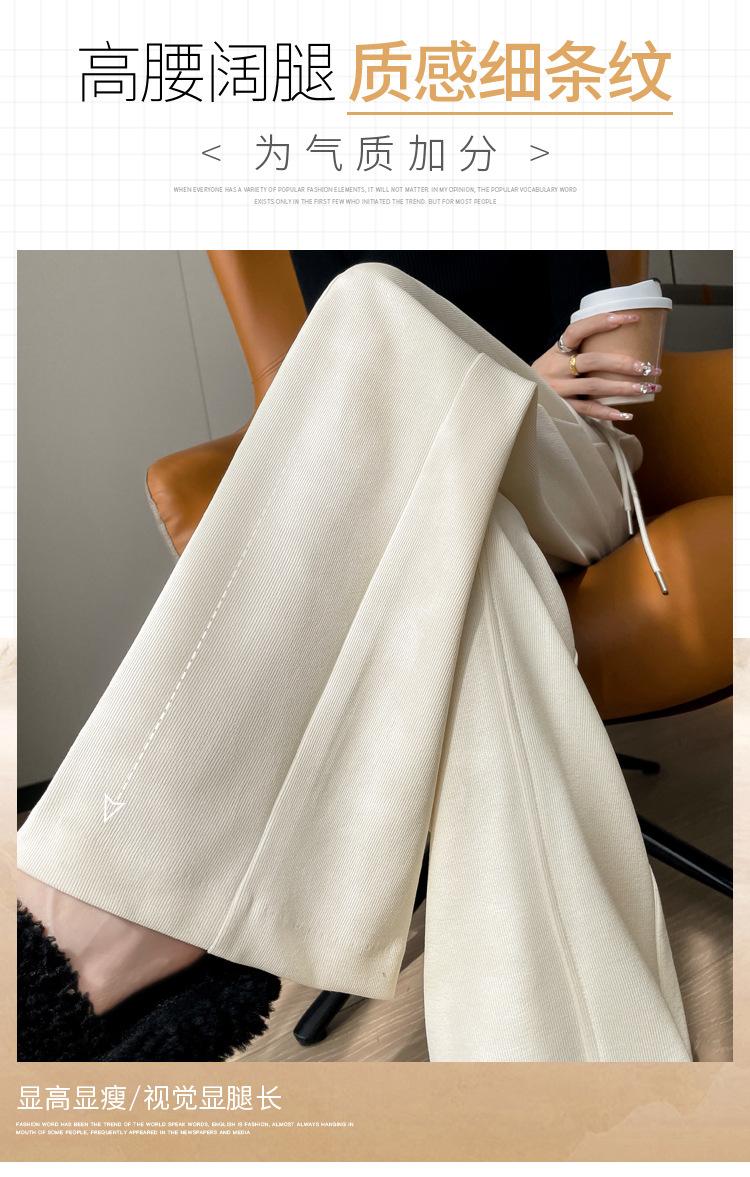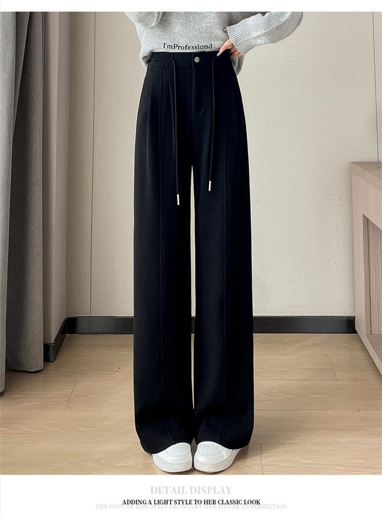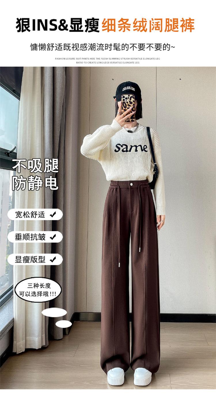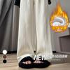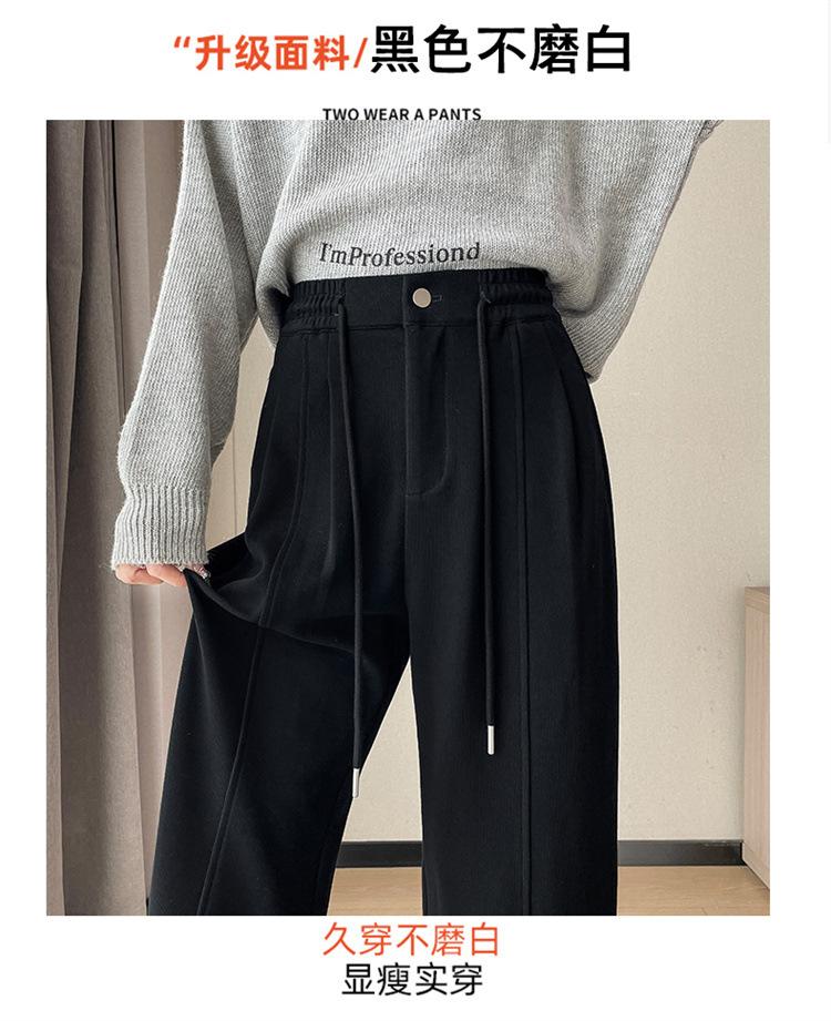 2024 Nuevo Estilo de Invierno Terciopelo Cálido Cintura Alta Ajustado Pierna Ancha Recto Pantalones Deportivos Versátiles Cubre Caderas Pantalones Casuales para Mujer a la Moda