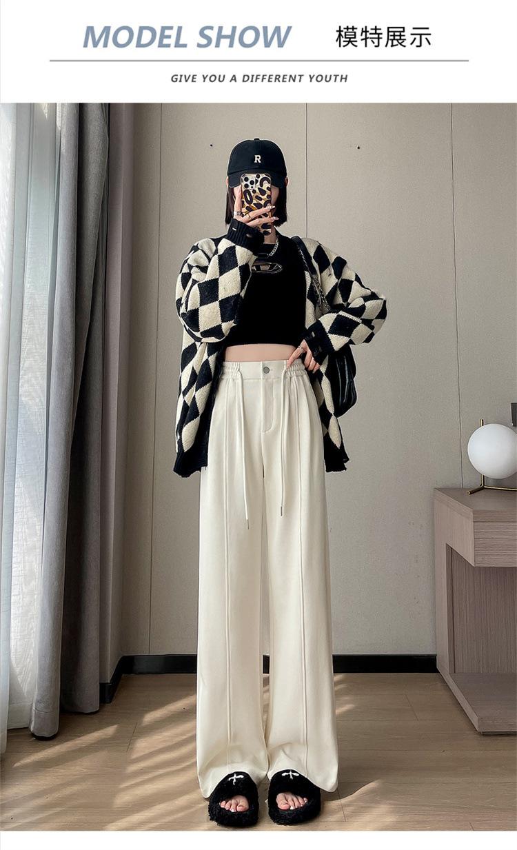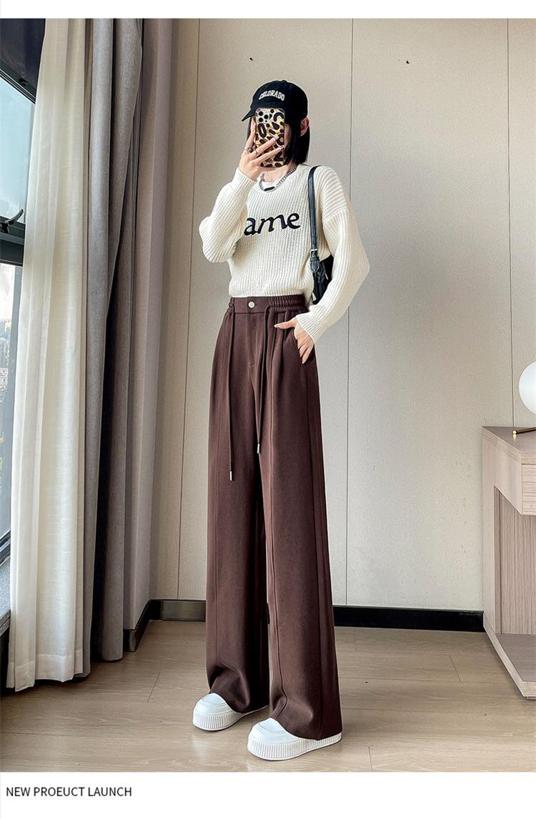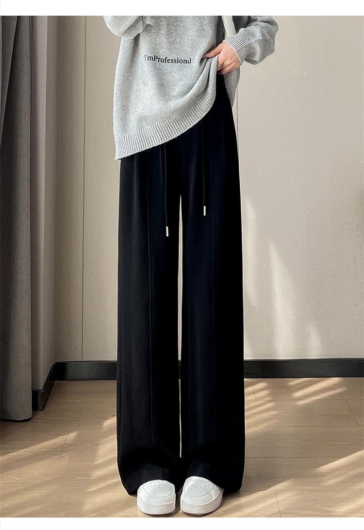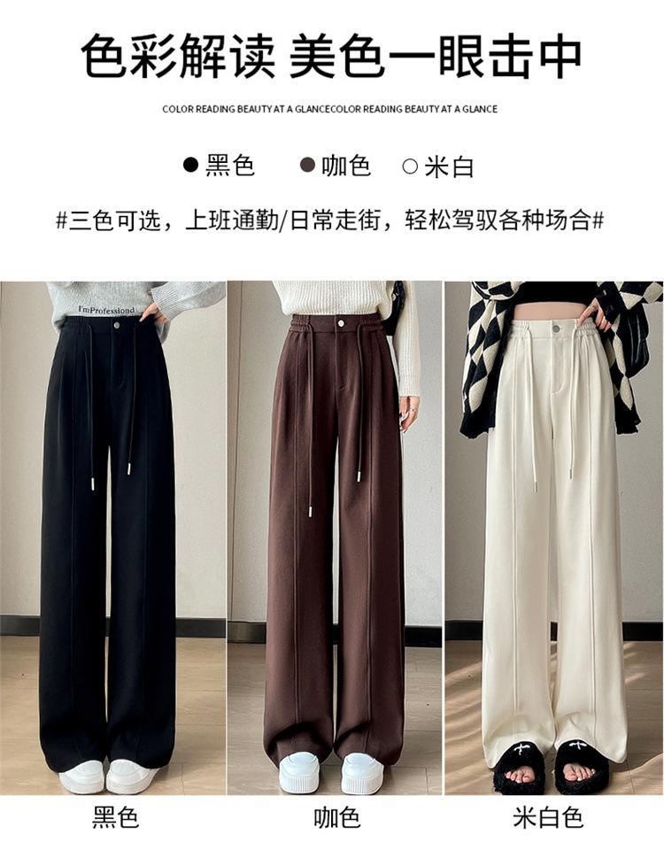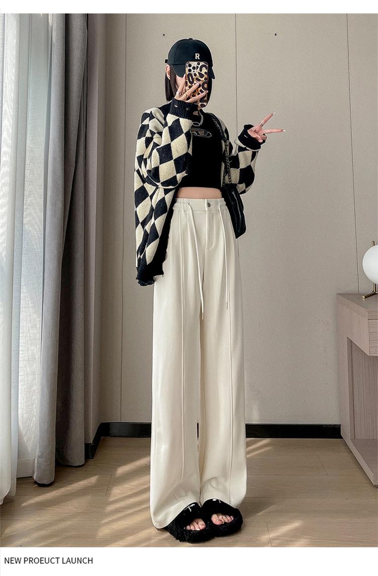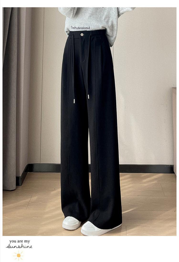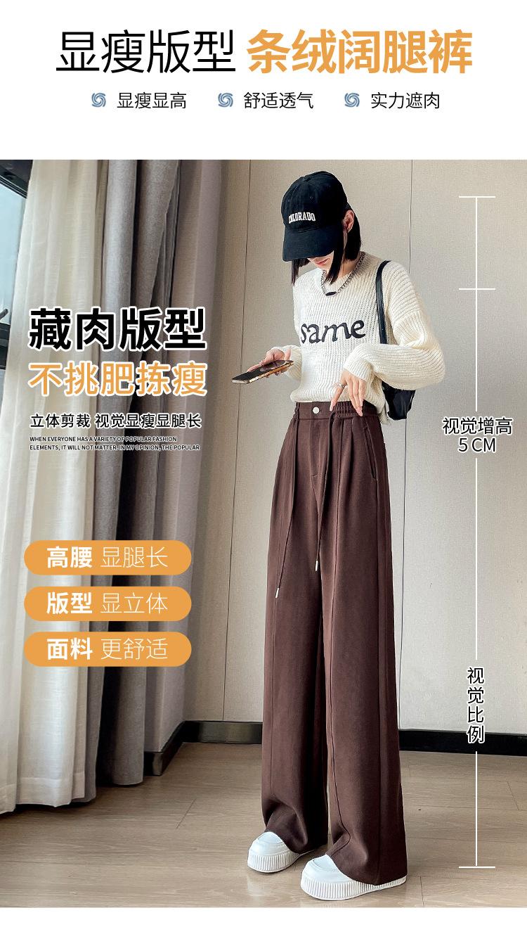 2024 Nuevo Estilo de Invierno Terciopelo Cálido Cintura Alta Ajustado Pierna Ancha Recto Pantalones Deportivos Versátiles Cubre Caderas Pantalones Casuales para Mujer a la Moda