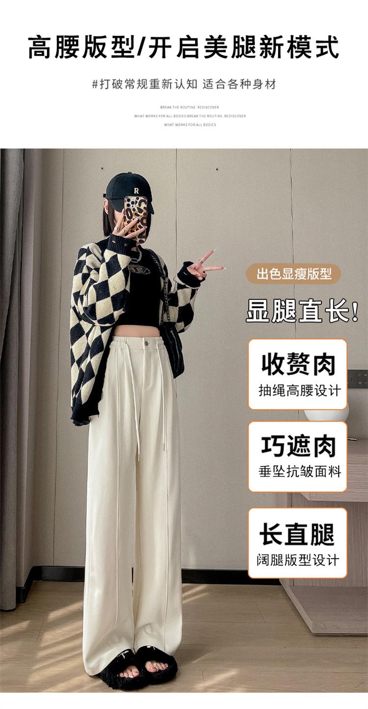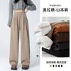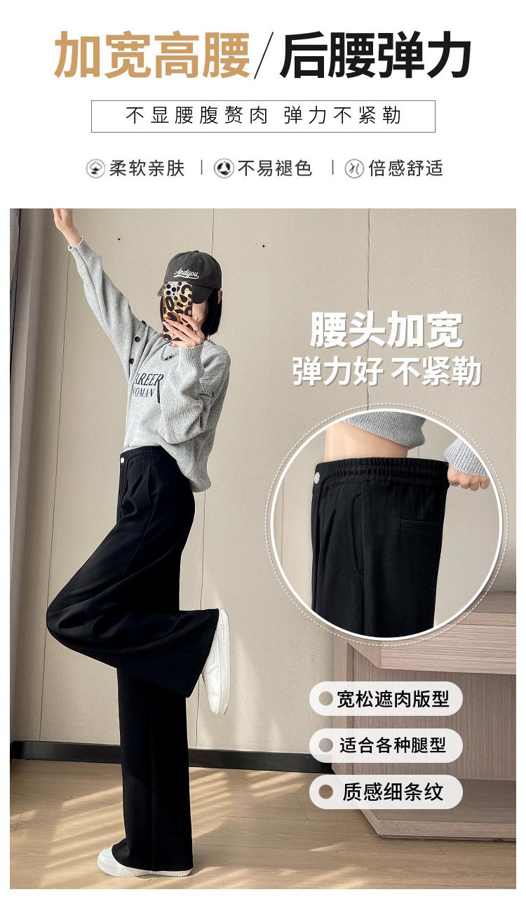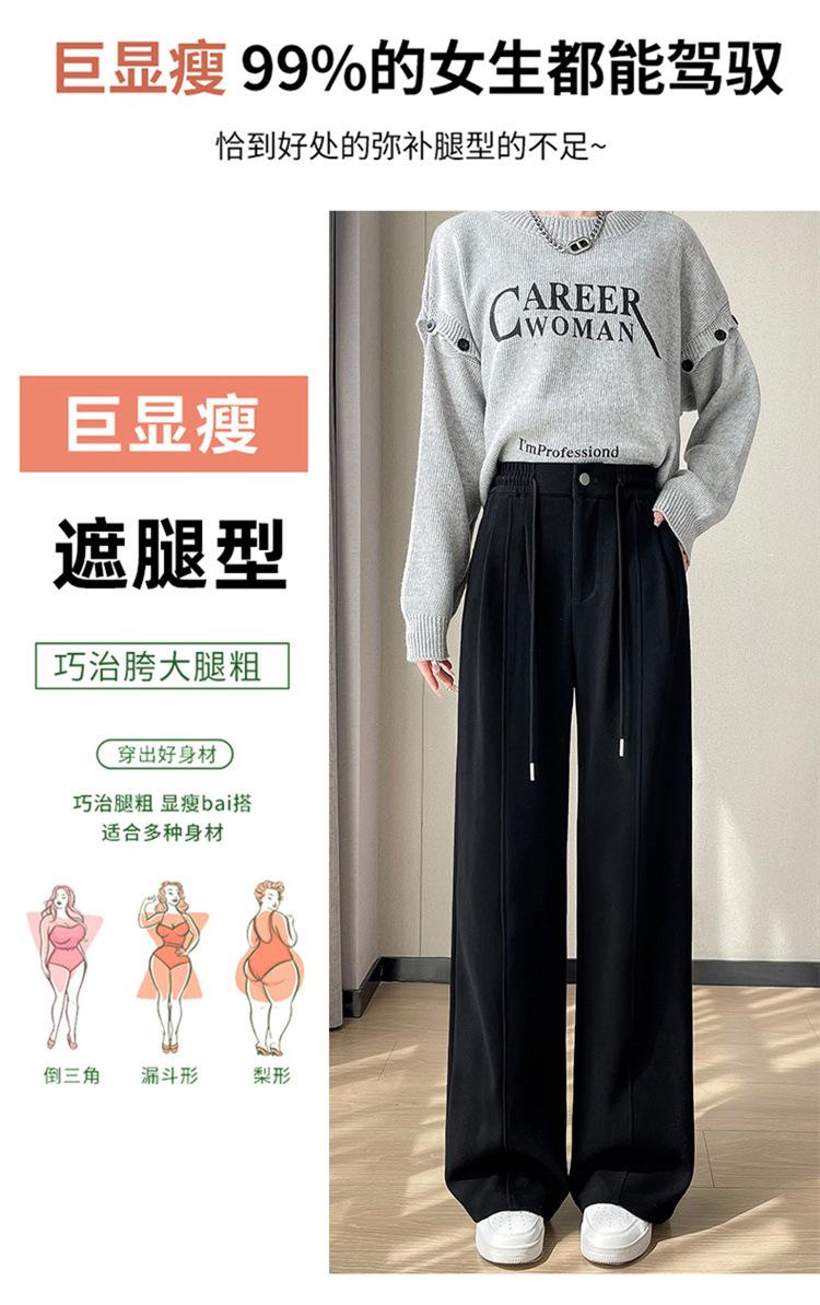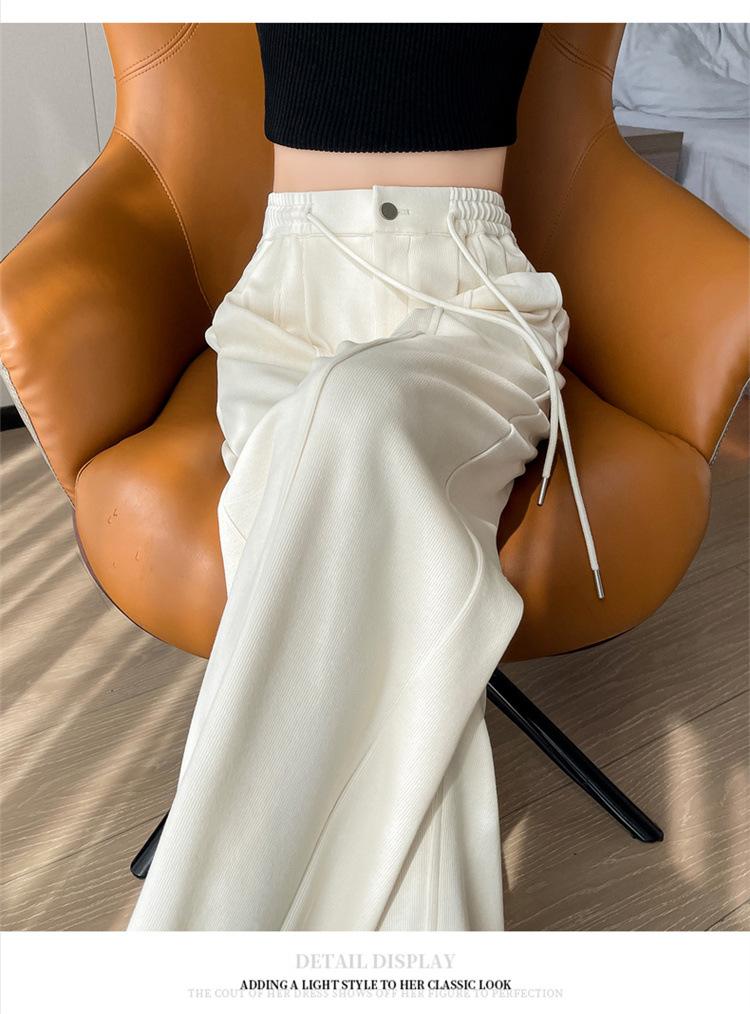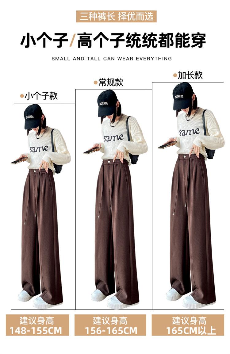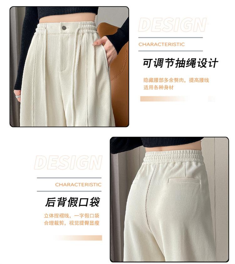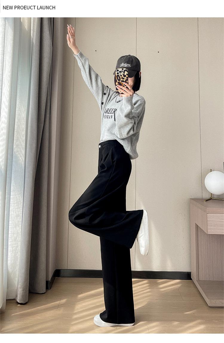 2024 Nuevo Estilo de Invierno Terciopelo Cálido Cintura Alta Ajustado Pierna Ancha Recto Pantalones Deportivos Versátiles Cubre Caderas Pantalones Casuales para Mujer a la Moda