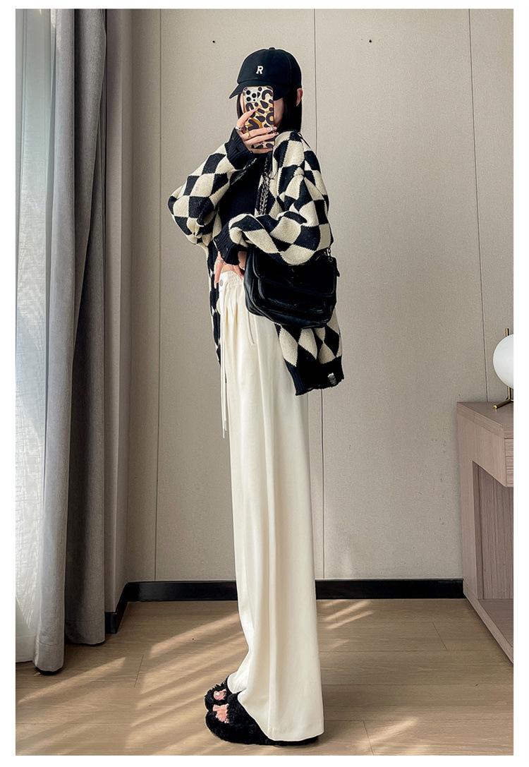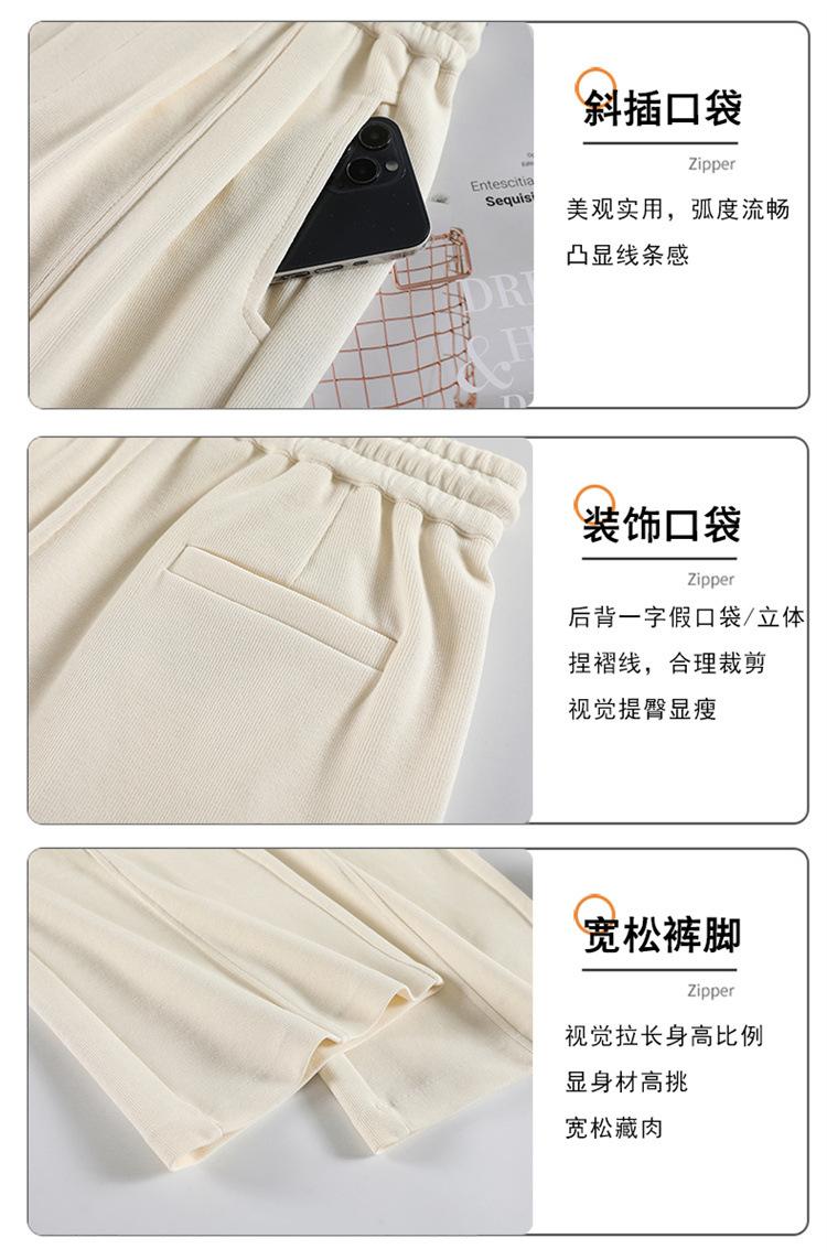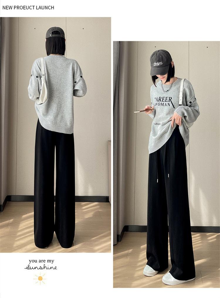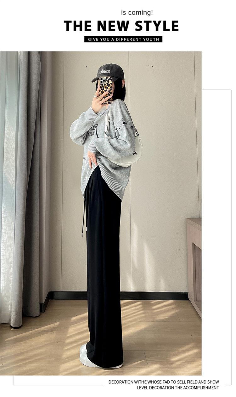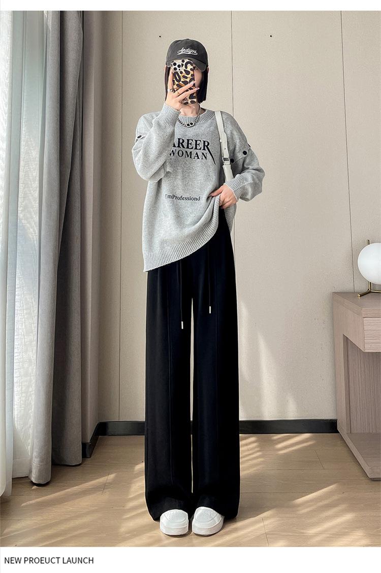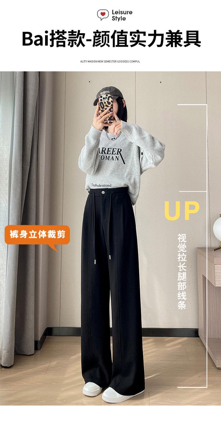 2024 Nuevo Estilo de Invierno Terciopelo Cálido Cintura Alta Ajustado Pierna Ancha Recto Pantalones Deportivos Versátiles Cubre Caderas Pantalones Casuales para Mujer a la Moda