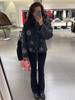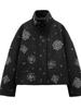 Chaqueta de Mujer Floral de Cuello Mao Transfronteriza 2024 Otoño e Invierno, Chaqueta de Lentejuelas Holgada de Estilo Retro Único con Botonadura Sencilla