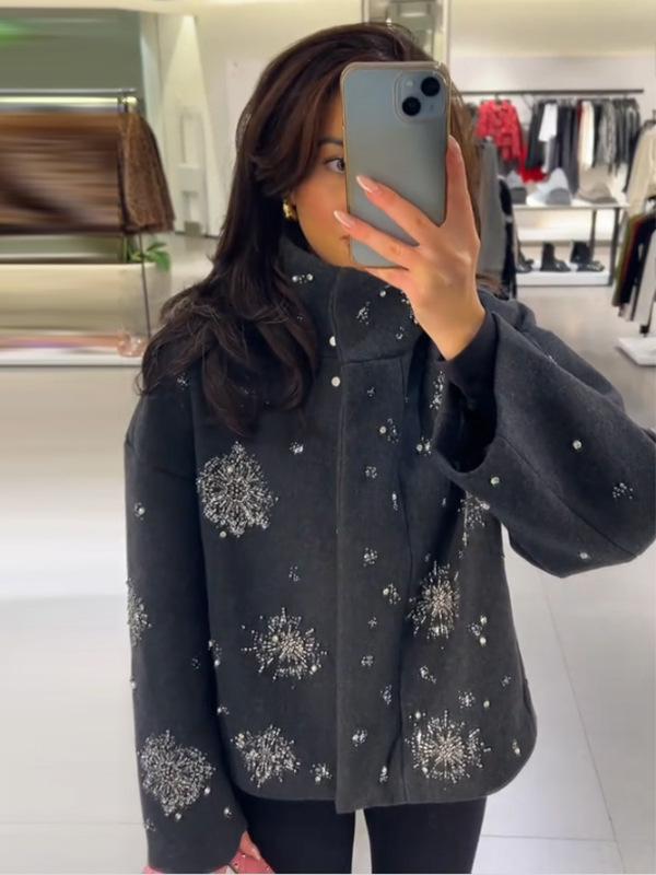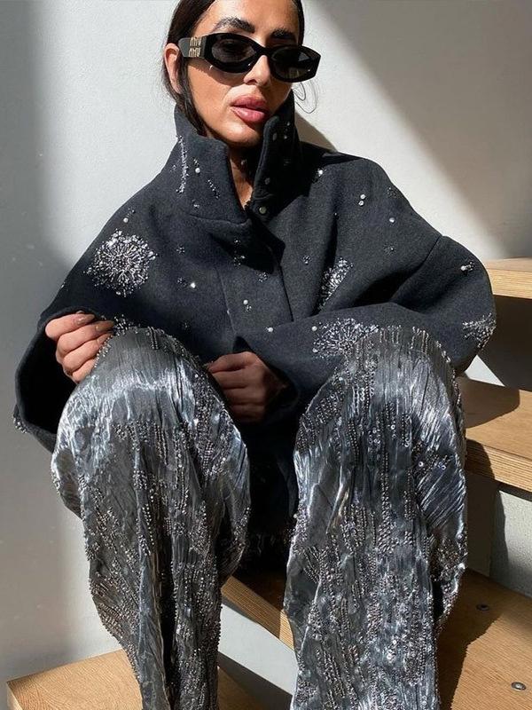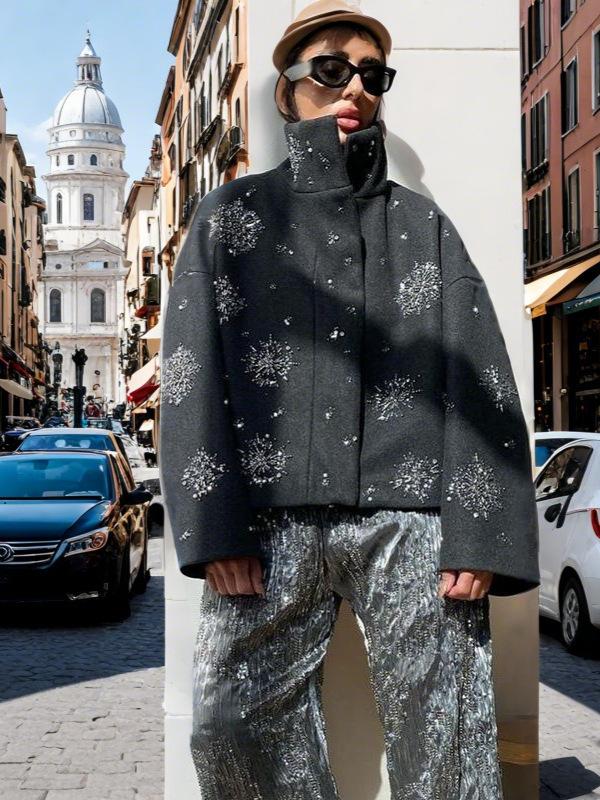 Gray sequined woolen coat