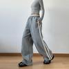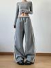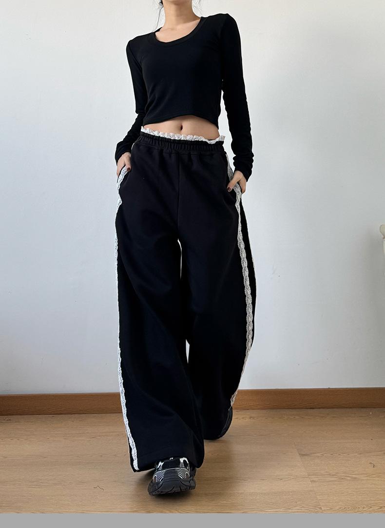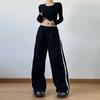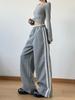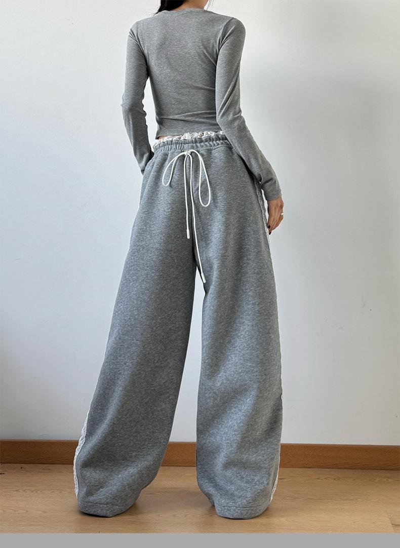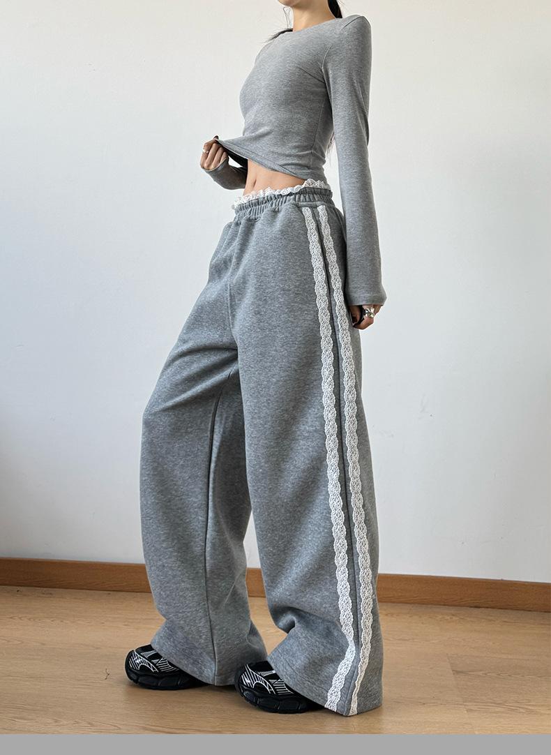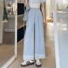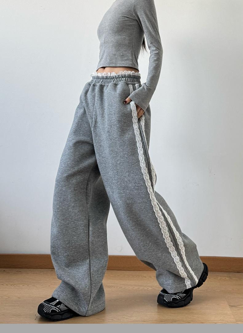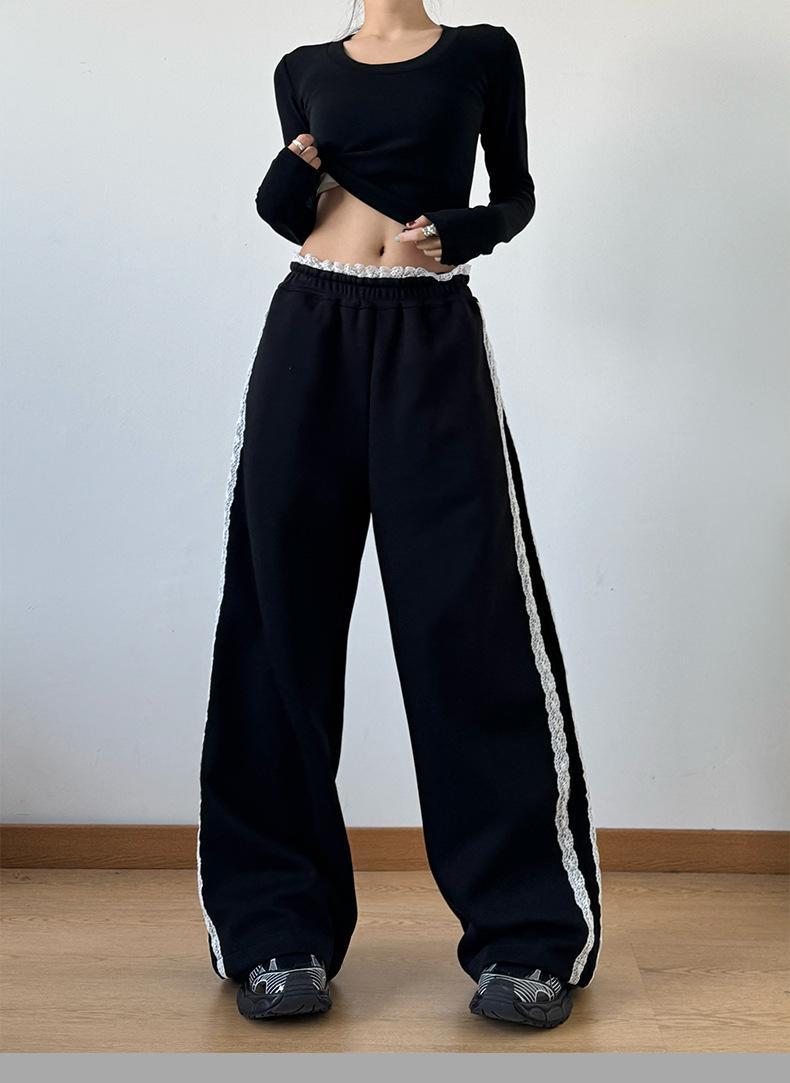 Pantalones casuales frescos y elegantes para mujer, novedad de otoño 2024, con cintura ajustada y costuras de encaje, pantalones altos y elegantes de pierna ancha.