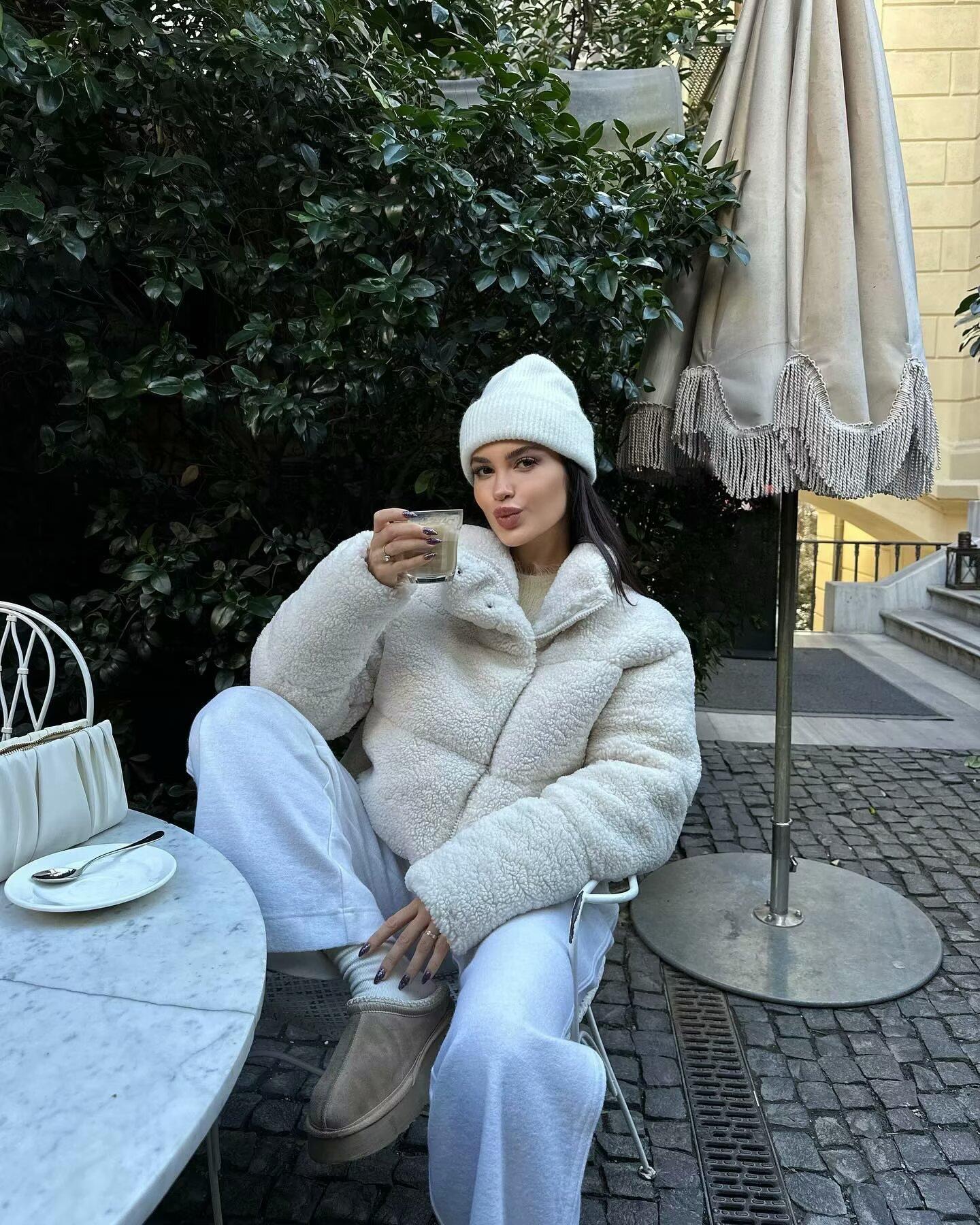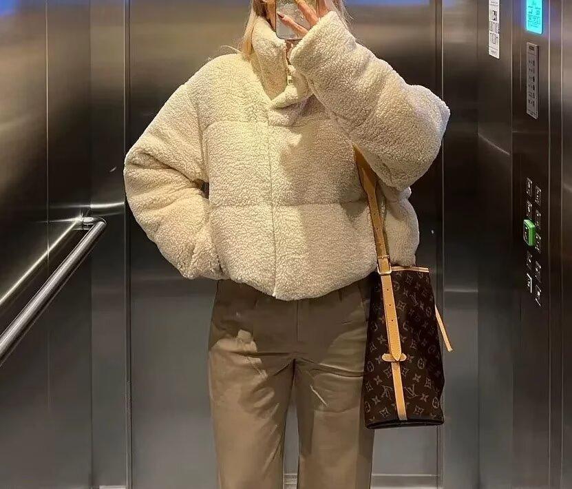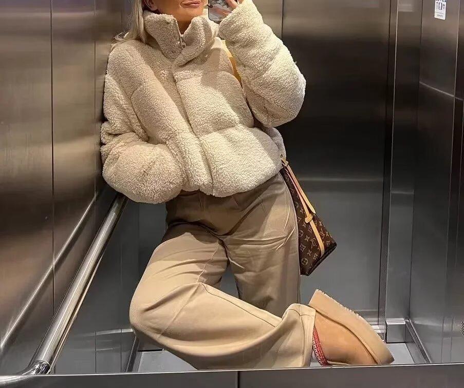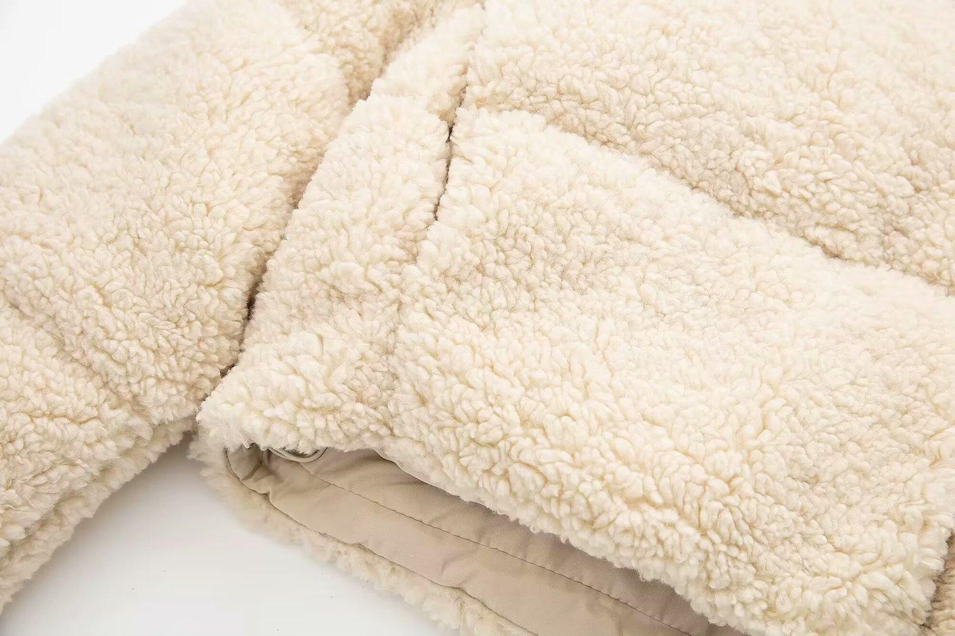Amazon Invierno Nuevo Europeo y Americano Transfronterizo para Mujer Chaqueta Corta de Algodón Acolchado con Cuello Vertical Chaqueta Vintage de Piel de Cordero