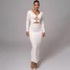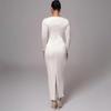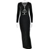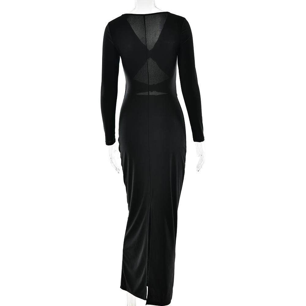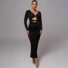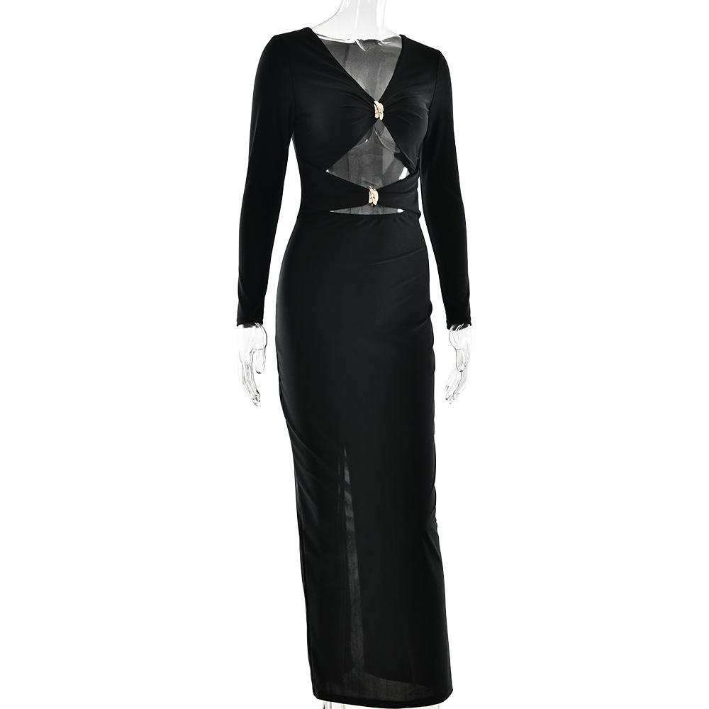 Amazon 2025 Falda Larga de Moda y Sexy con Abertura y Corte Cut-Out que Cubre las Caderas, Nuevo Vestido Ajustado de Manga Larga de Venta Caliente Transfronterizo