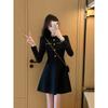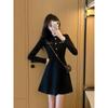 Vestido de punto Otoño e Invierno 2024 Nuevo Estilo Fragante Cintura Francesa Adelgazante Celebridad Elegante Vestido Negro Pequeño de Alta Calidad