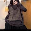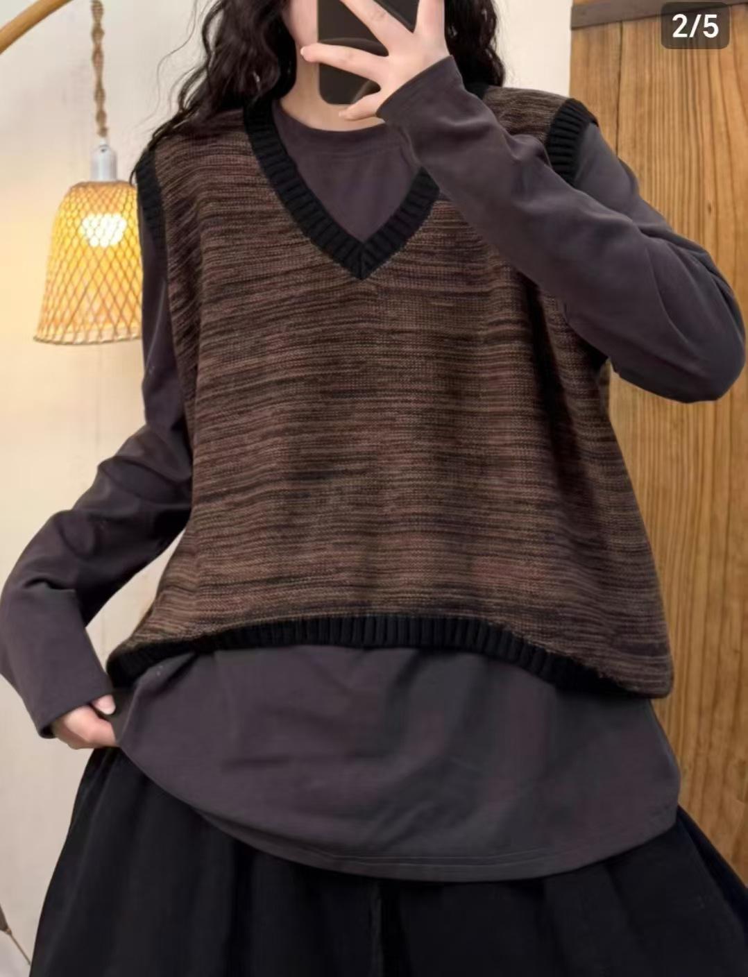 Chaleco de Punto Vintage Color Frito Cuello en V para Mujer Corto Holgado Combinable 2025 Primavera Nuevo Prendas Exteriores Apiladas Moderno