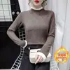 Camiseta de polar de manga larga con cuello redondo y botones de uñas, sencilla y a juego, para mujer, invierno 24, con base gruesa de cachemira.