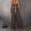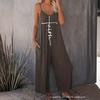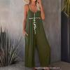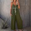 Ins Europeo y Americano 2024 Verano Nuevo Pantalón Largo para Mujer Estampado Bolsillo Casual Mono con Tirantes Estilo Urbano Único