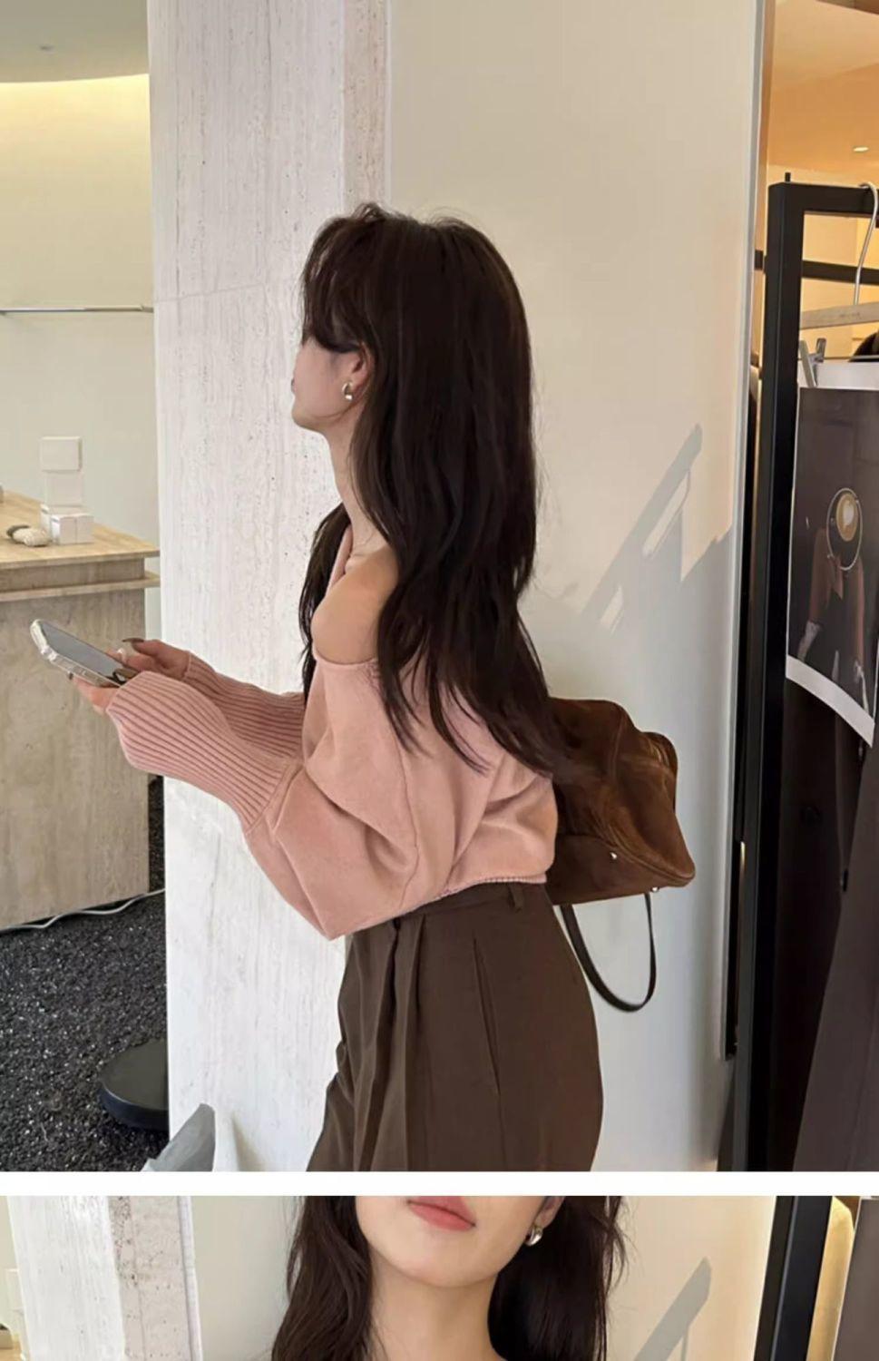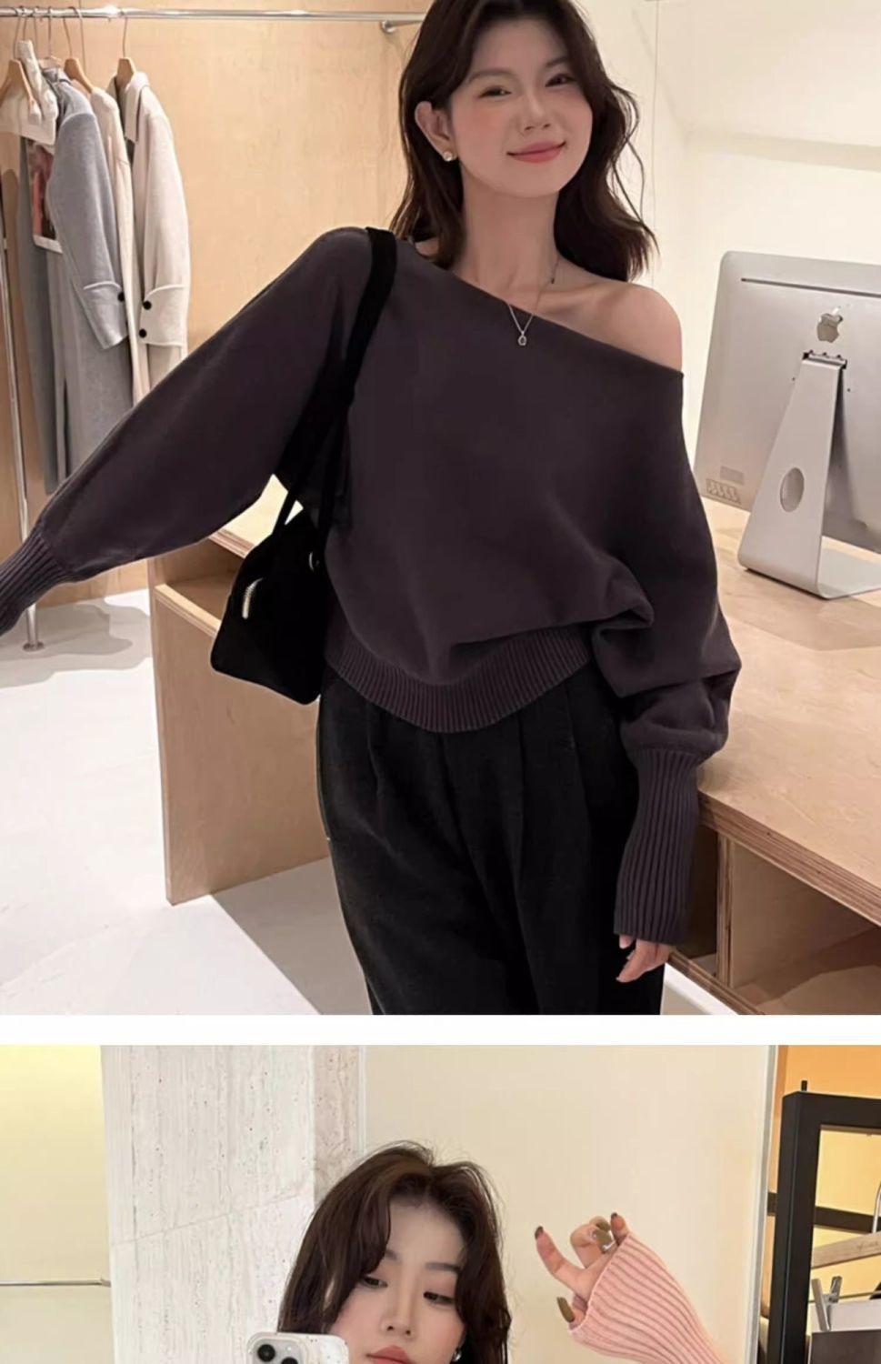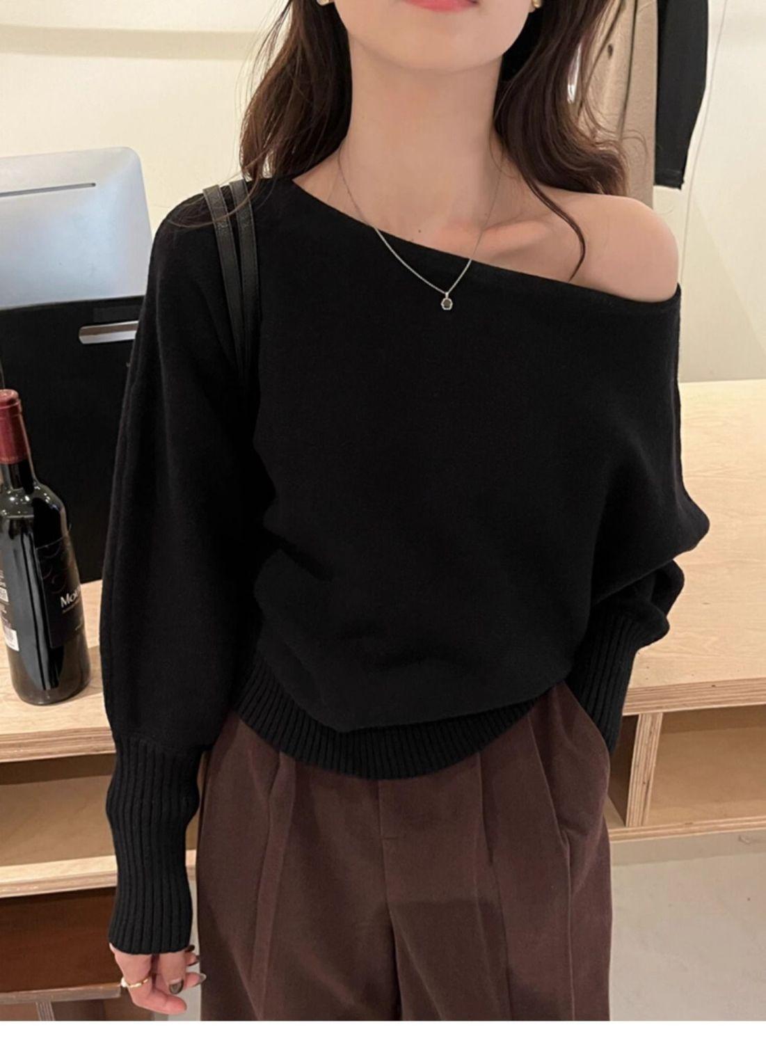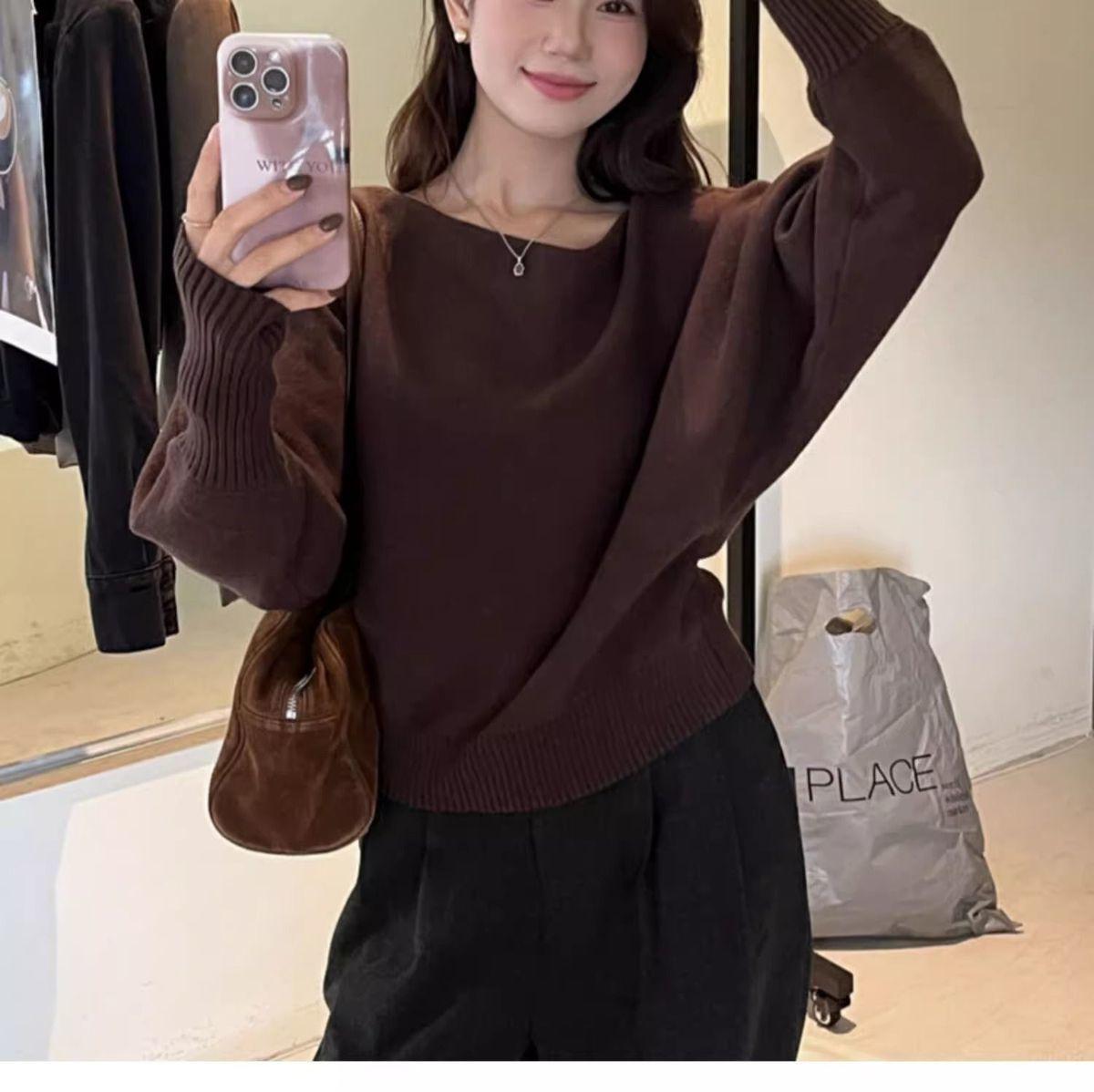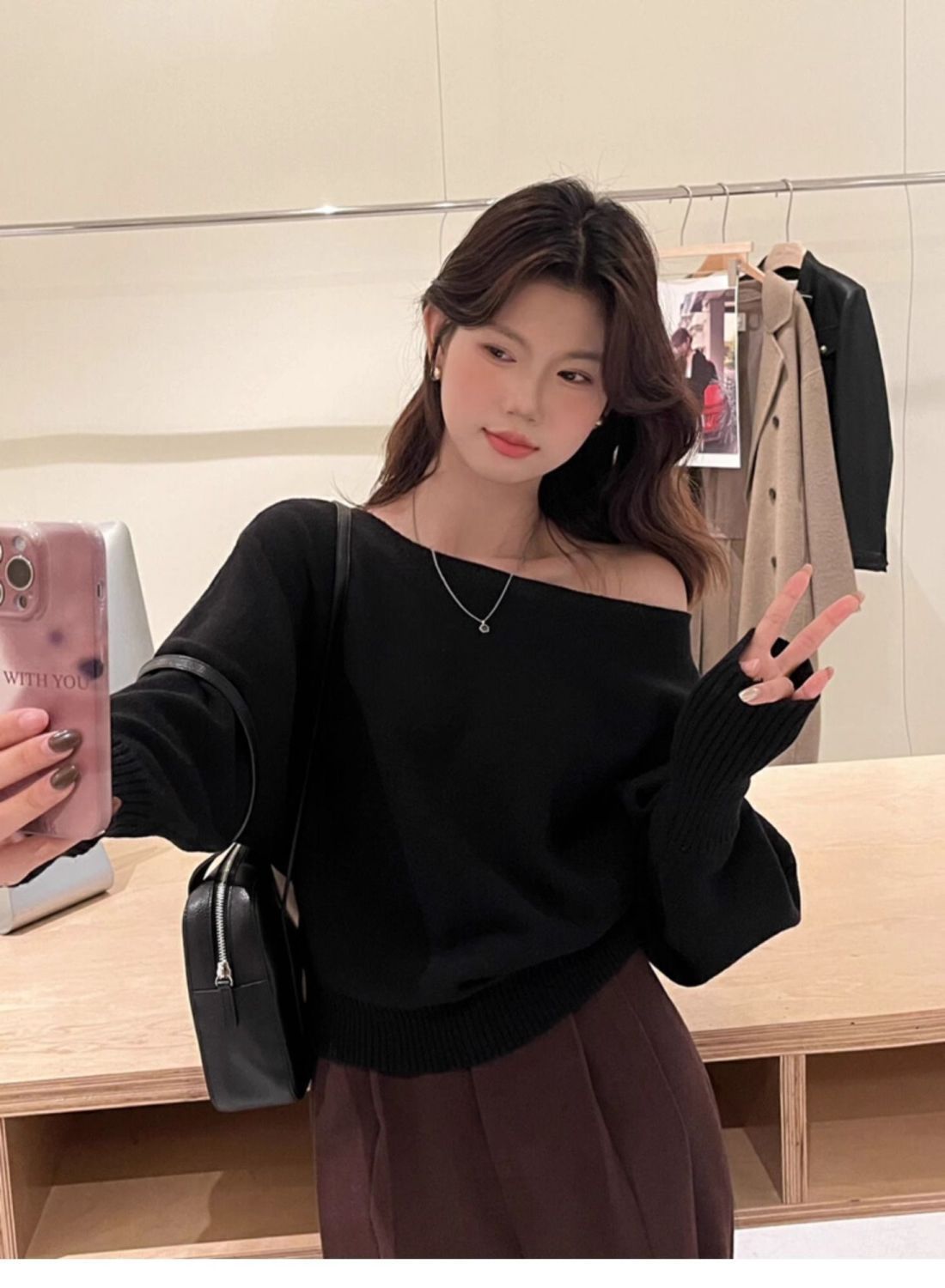 Suéter de punto con hombros descubiertos Chic Pure Desire de color caqui para mujer, suéter holgado de alta gama de otoño, parte superior interior