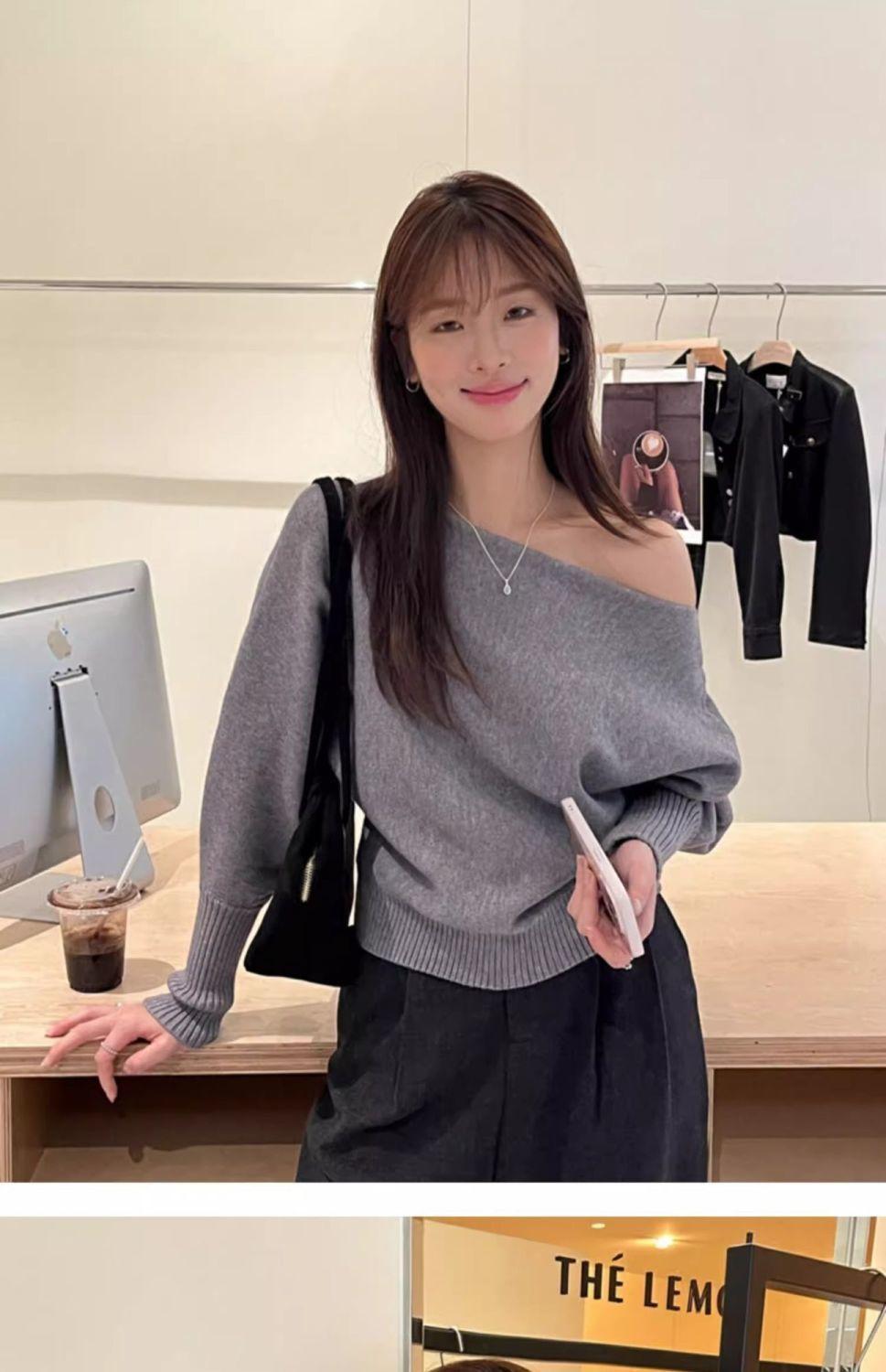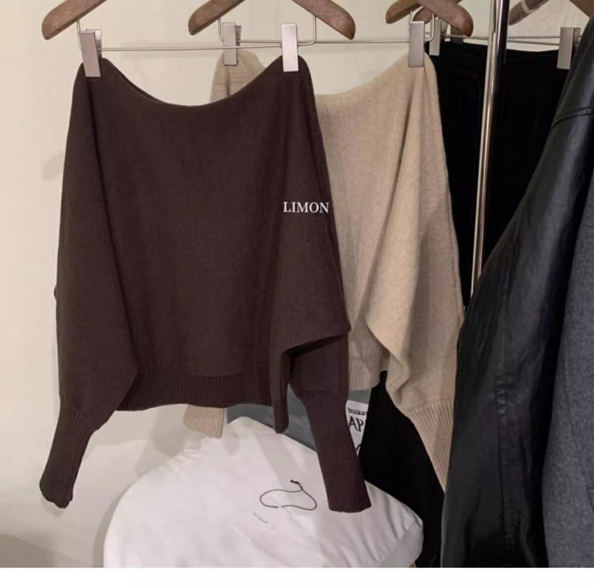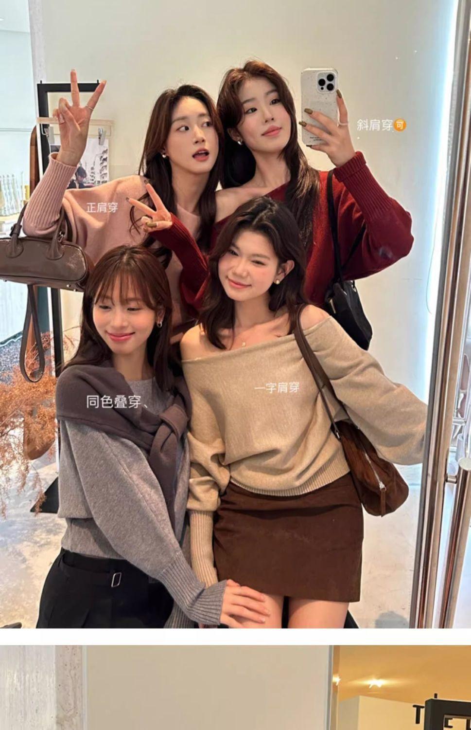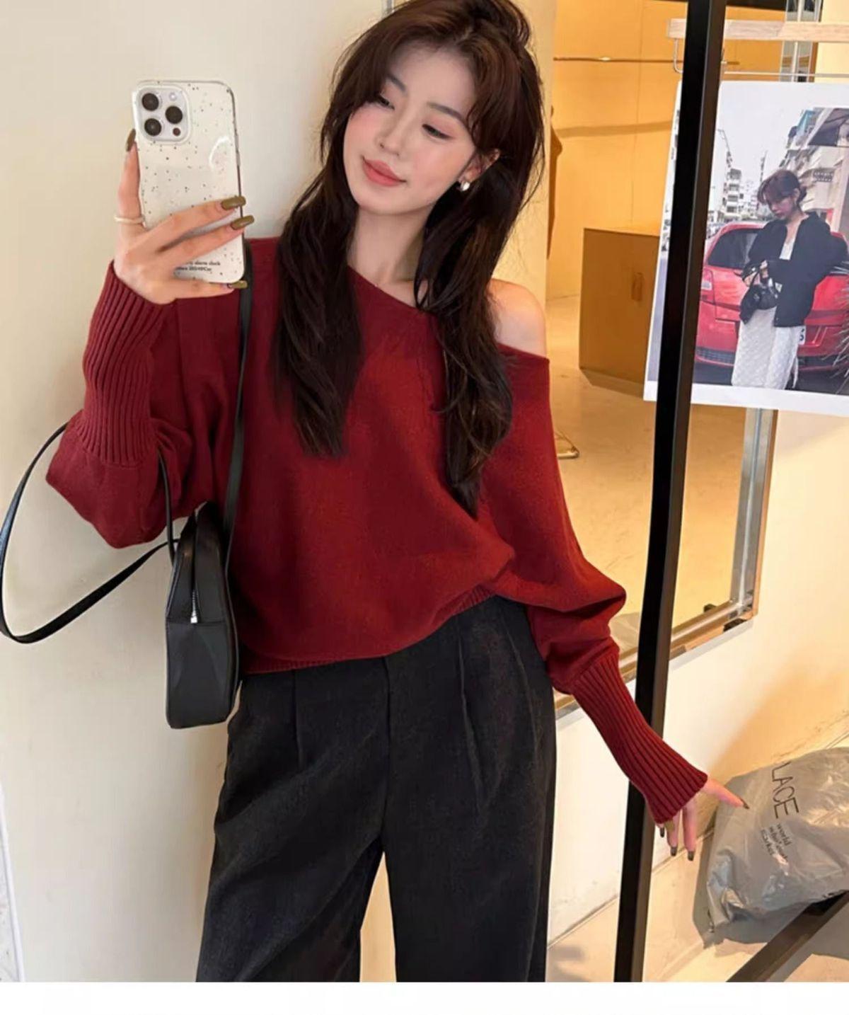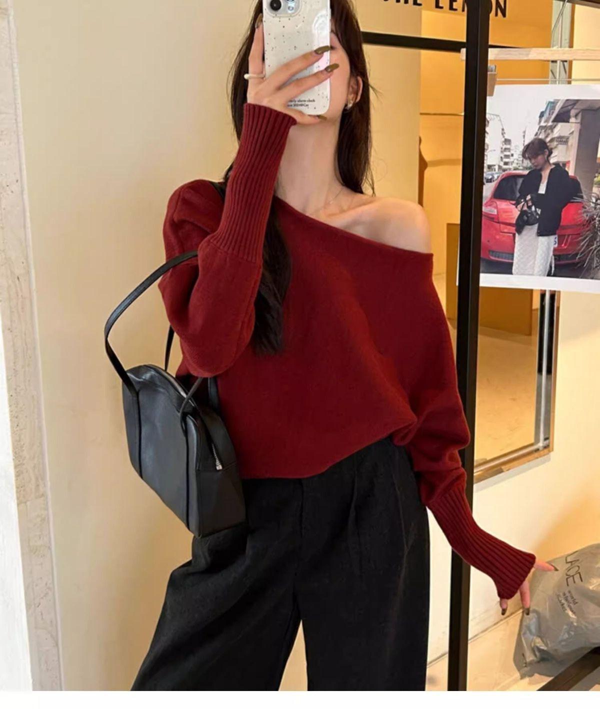 Suéter de punto con hombros descubiertos Chic Pure Desire de color caqui para mujer, suéter holgado de alta gama de otoño, parte superior interior