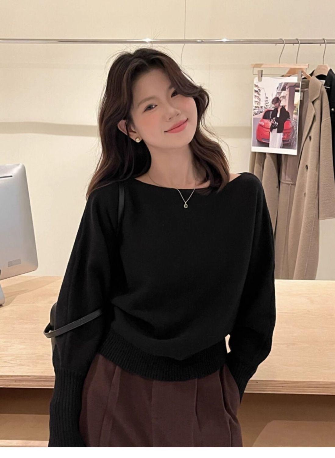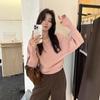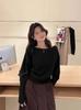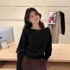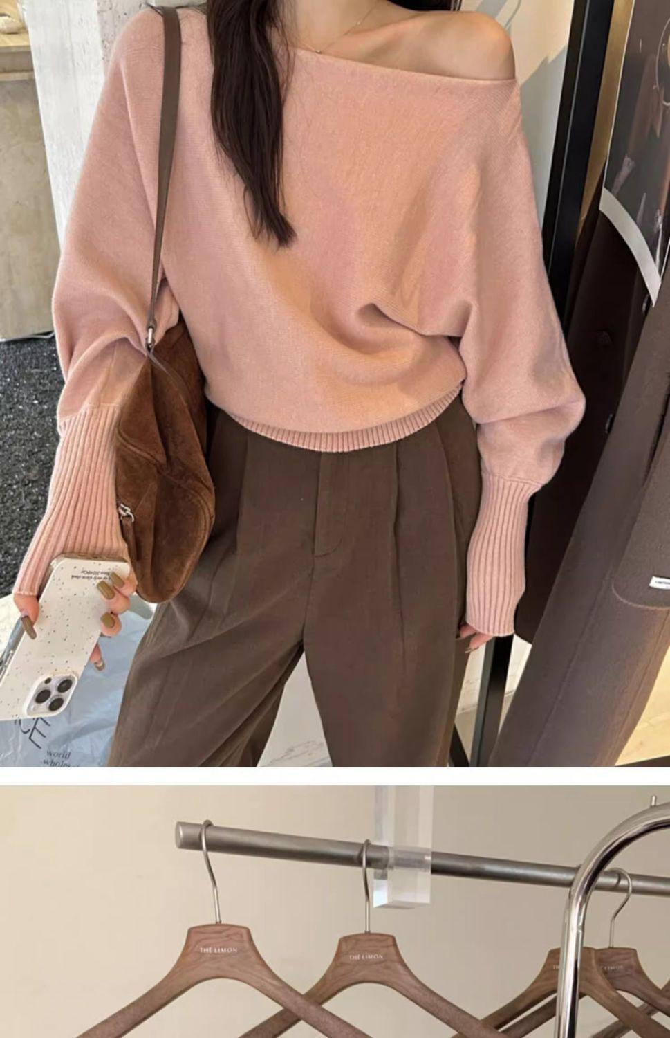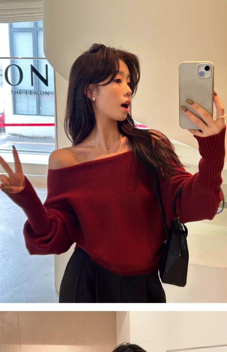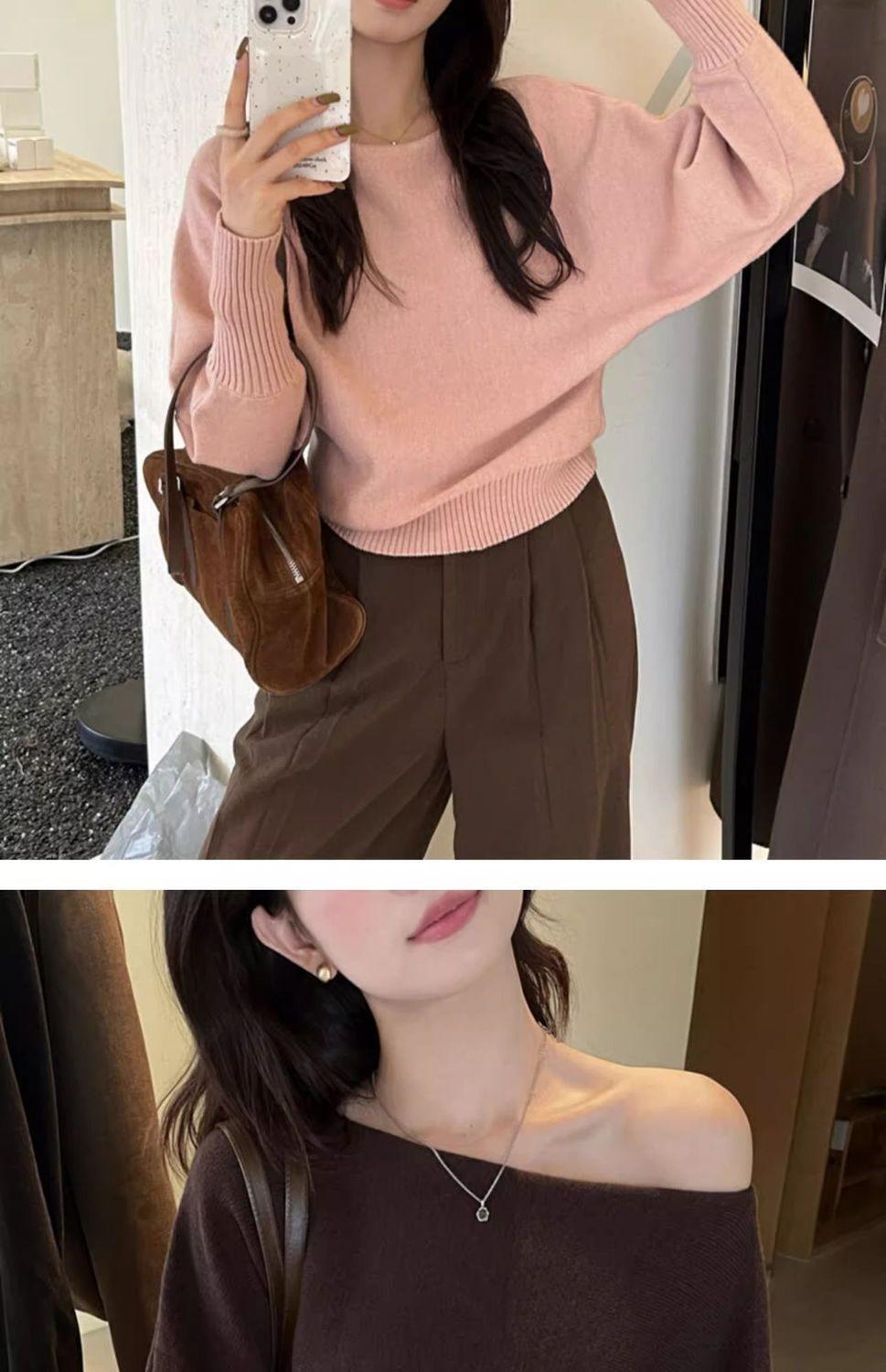 Suéter de punto con hombros descubiertos Chic Pure Desire de color caqui para mujer, suéter holgado de alta gama de otoño, parte superior interior