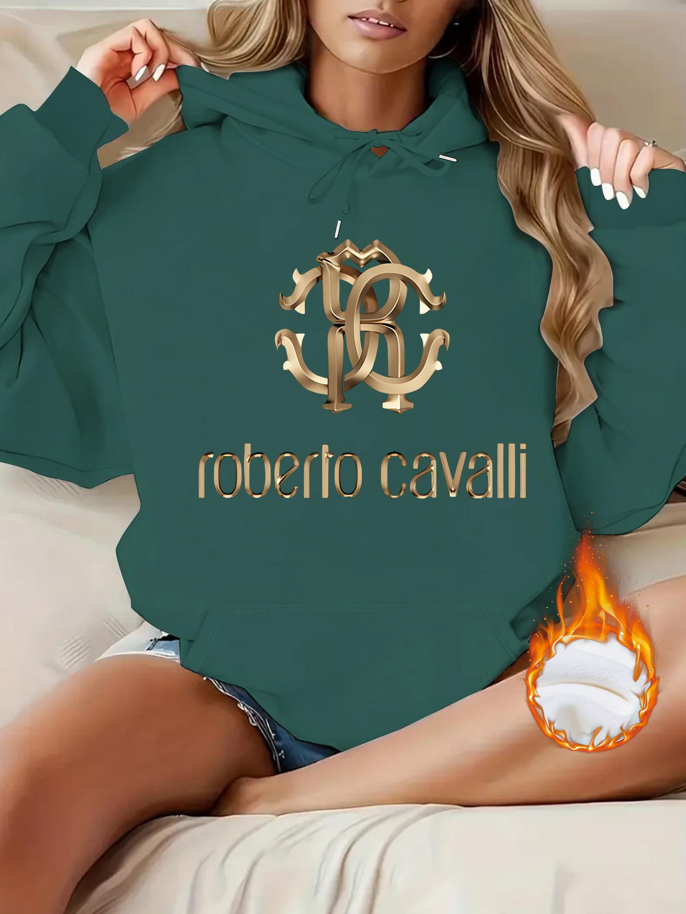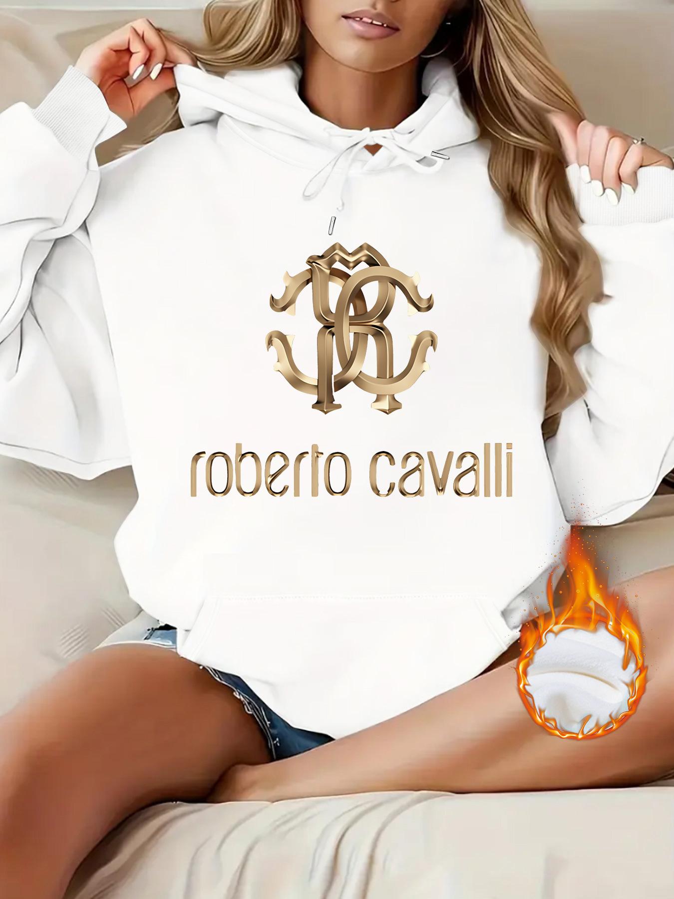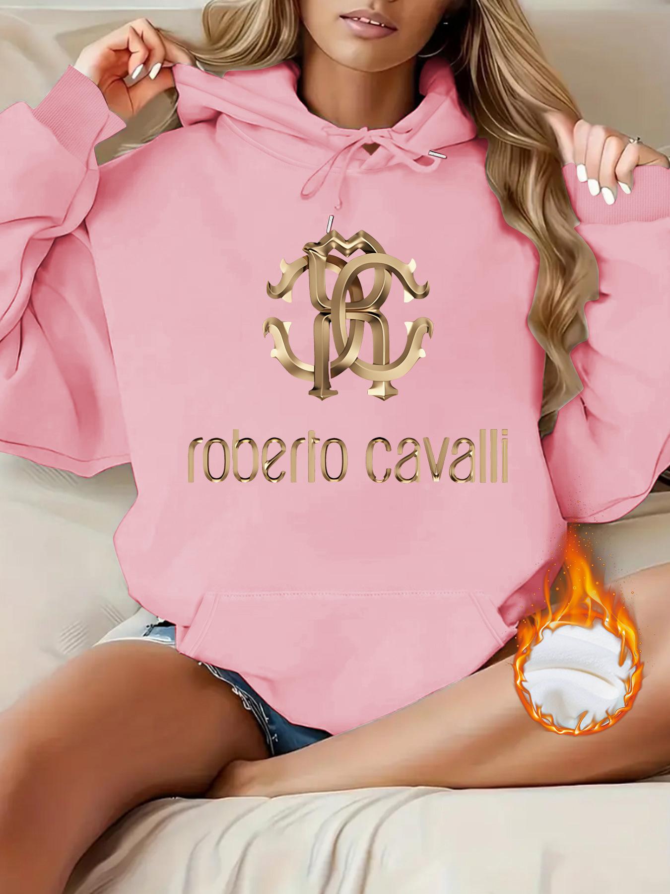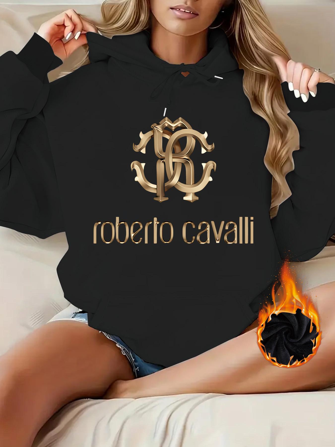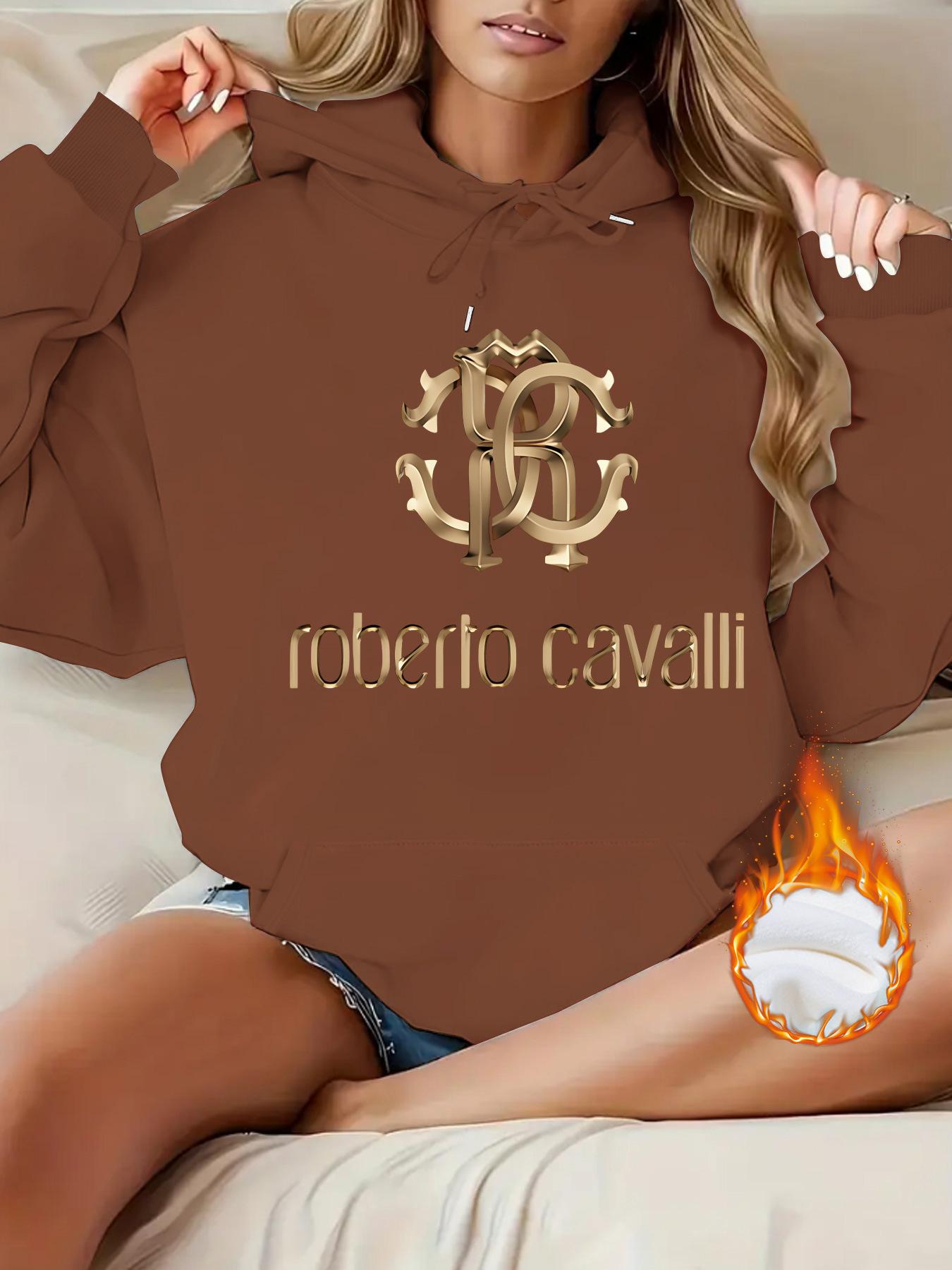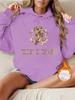 Suéter con capucha y forro polar de manga larga con bolsillo tipo canguro para mujer, talla europea transfronteriza, otoño e invierno, estampado de moda